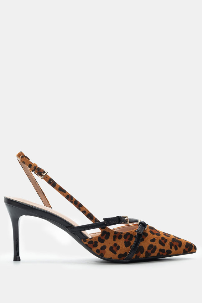 Pointed Toe Slingback Heels with Decorative Buckle & Elastic