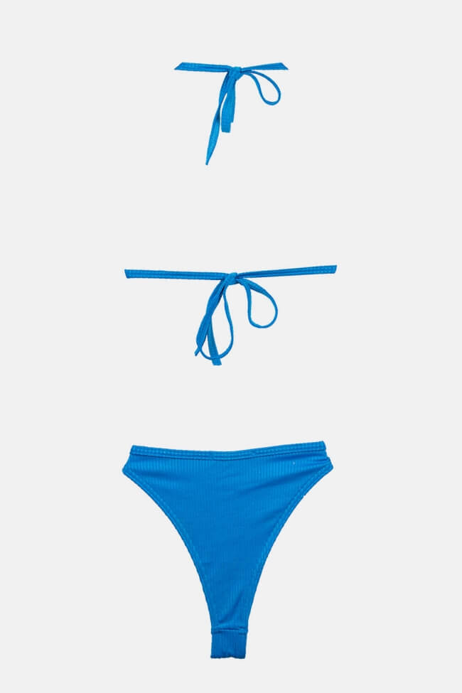 Set bikini din material rib, talie înaltă