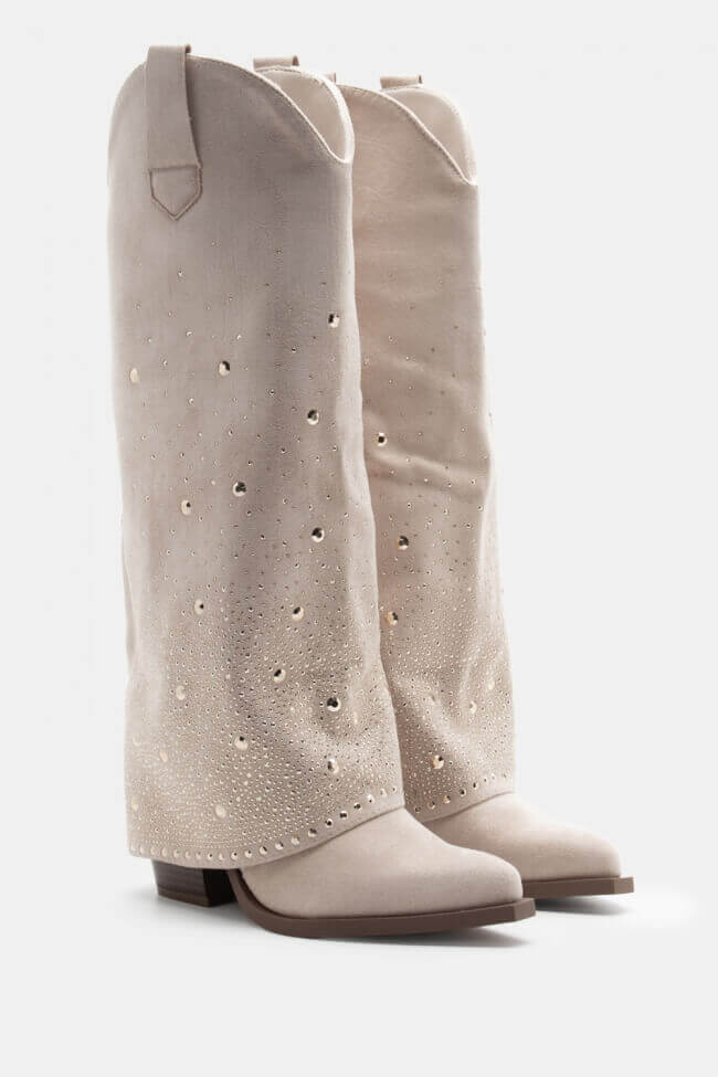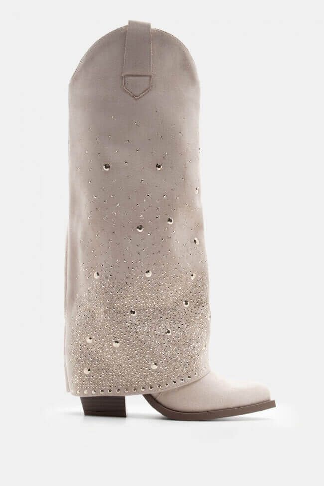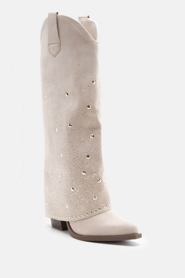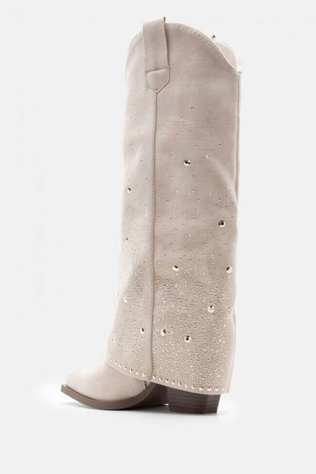Μπότες Cowboy με Εφέ Αναδιπλούμενης Φάσας & Strass