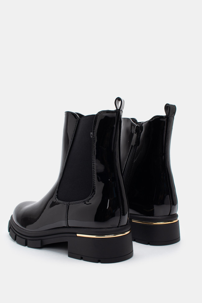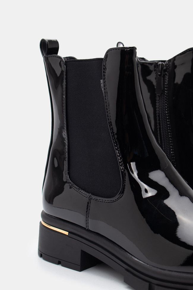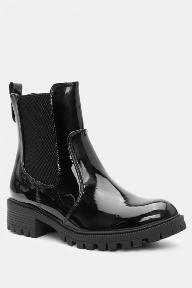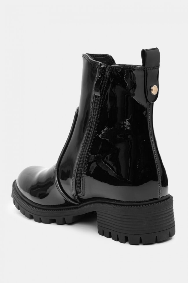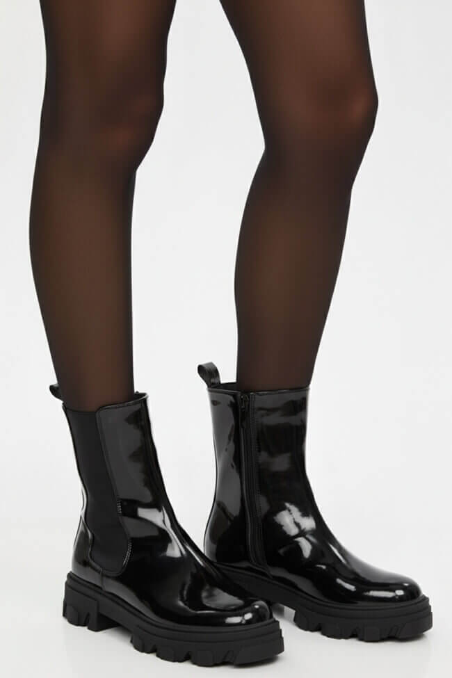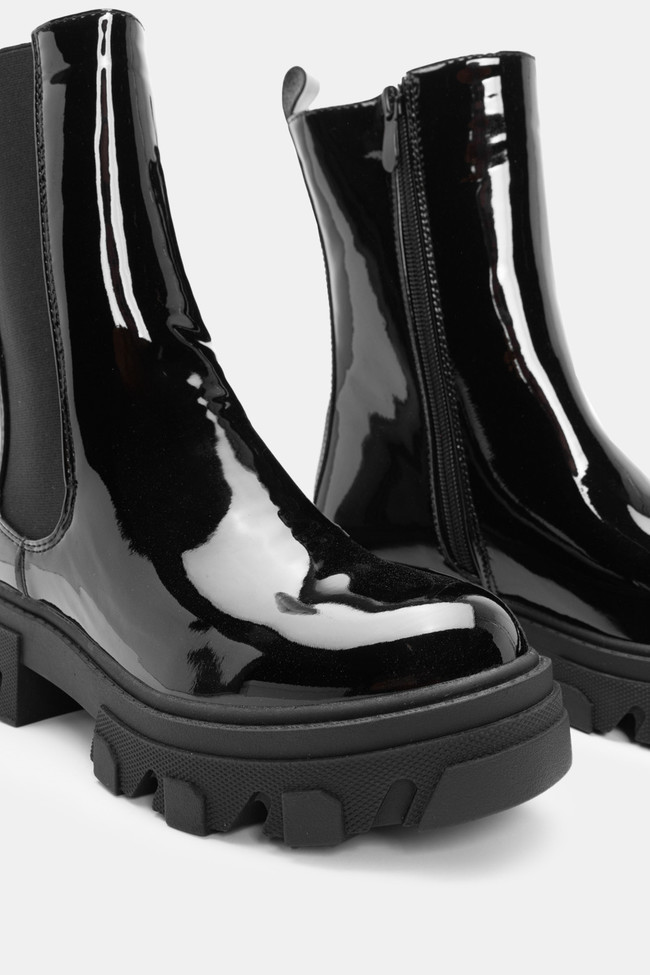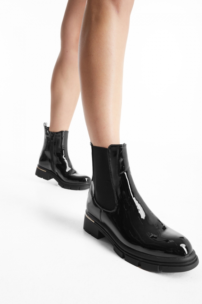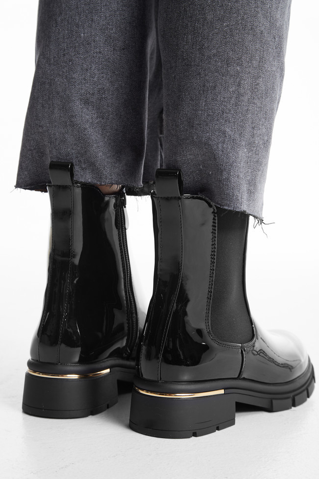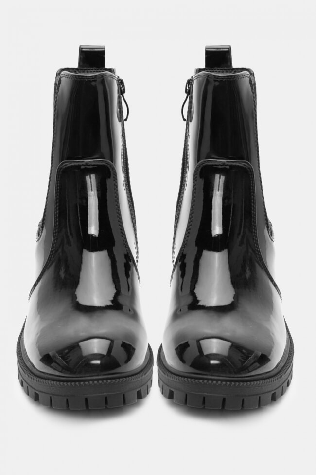 Τα φλατ μποτάκια από λουστρίνι δίνουν αυτό το glossy twist σε κάθε σύνολο. Ιδανικά για να κάνεις μια πιο chic και εντυπωσιακή εμφάνιση, προσθέτουν την τέλεια πινελιά σε ένα casual outfit.