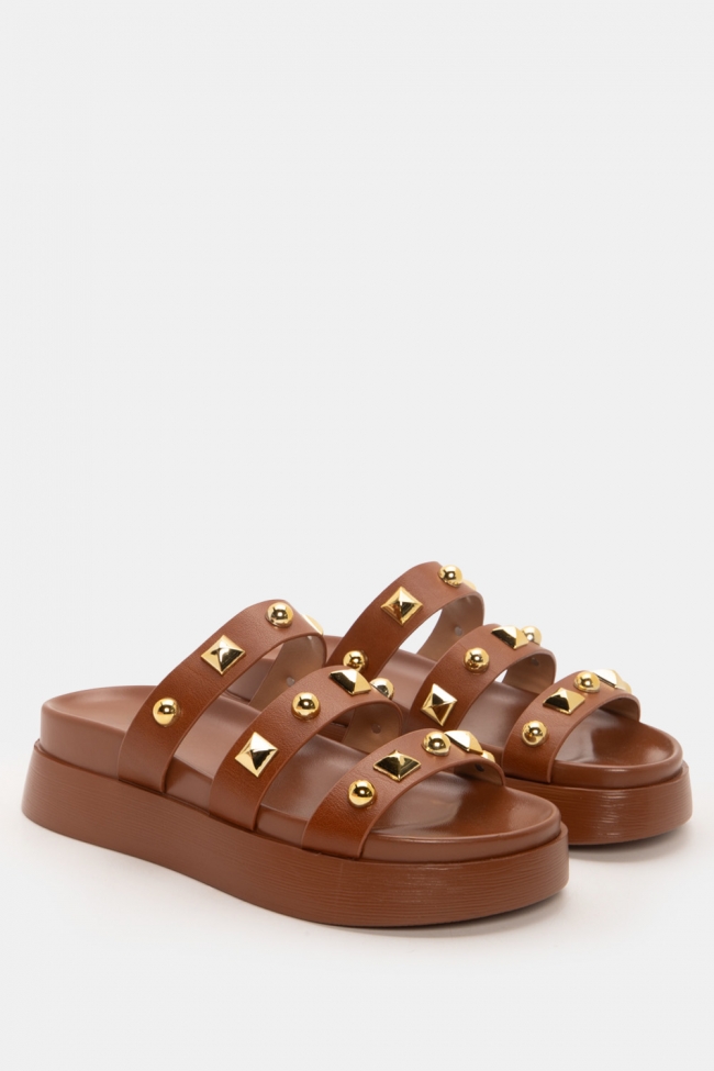 Sandali Flatform con Cinturini Incrociati & Borchie