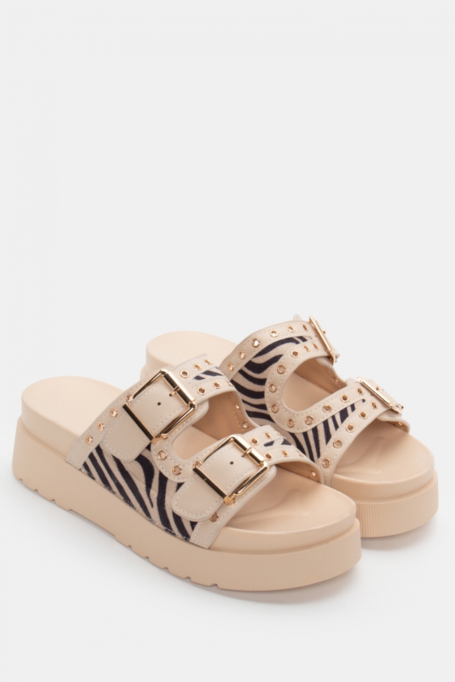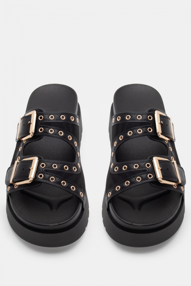Sandali Flatform con Dettaglio Decorativo Metallico