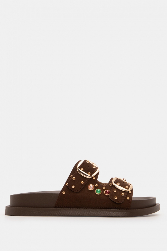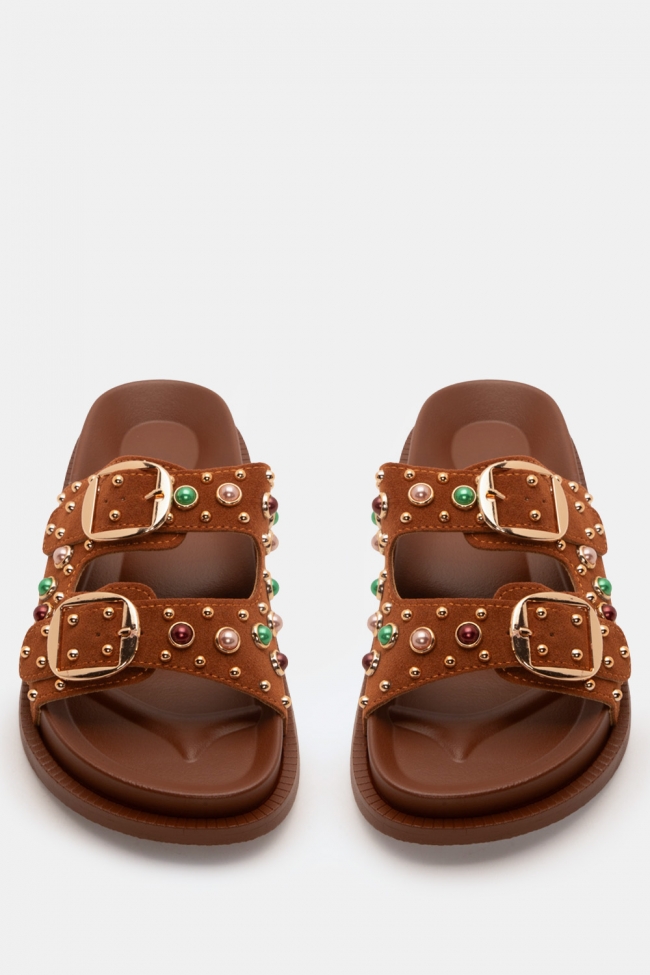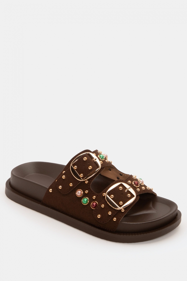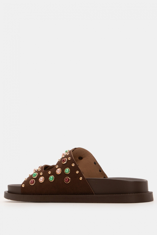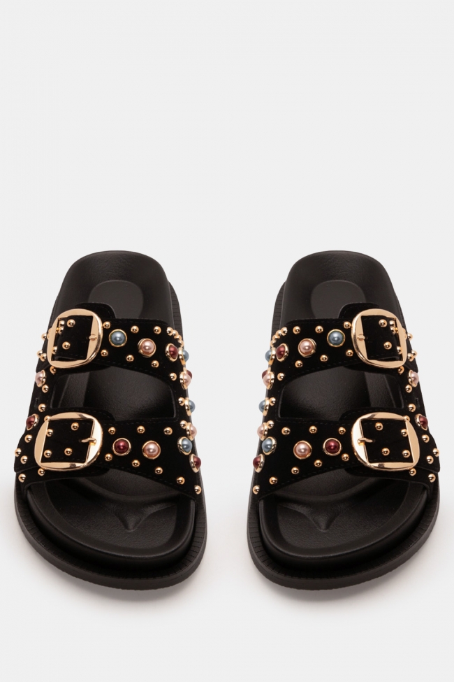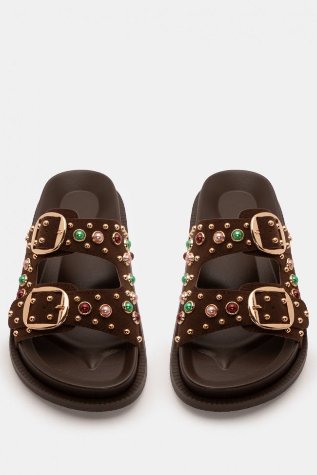 Flatform Sandals with Decorative Stones
