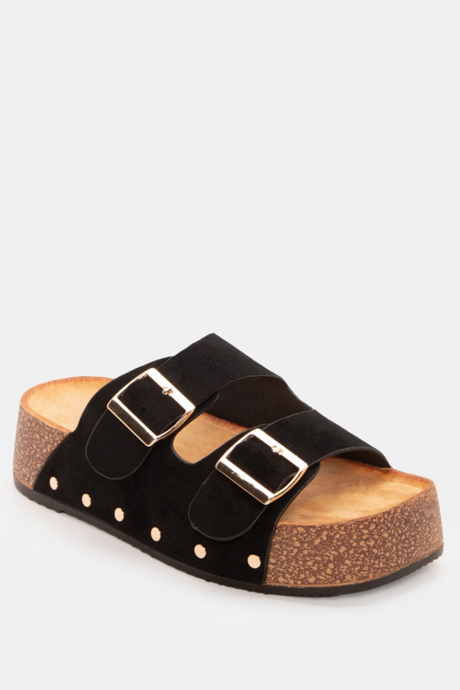 Flatform Sandals with Double Buckles
