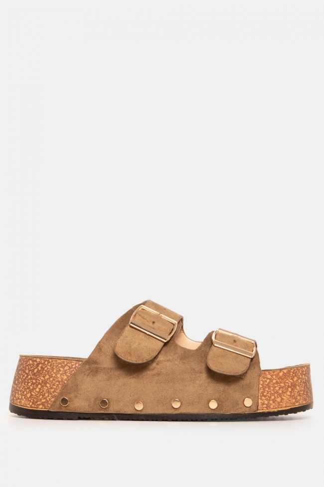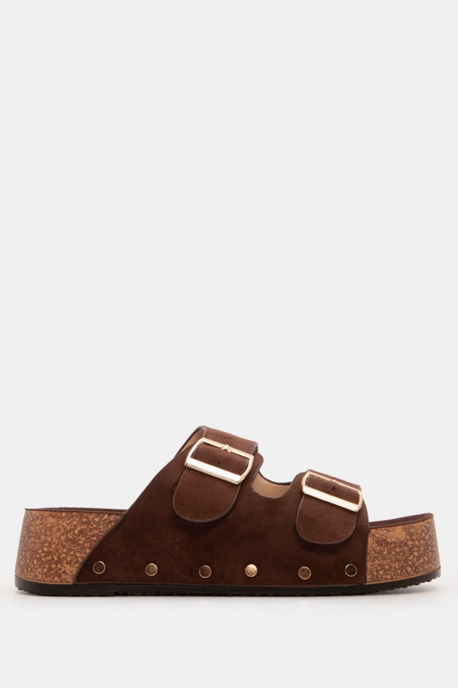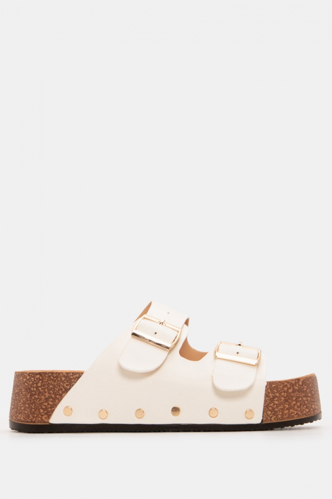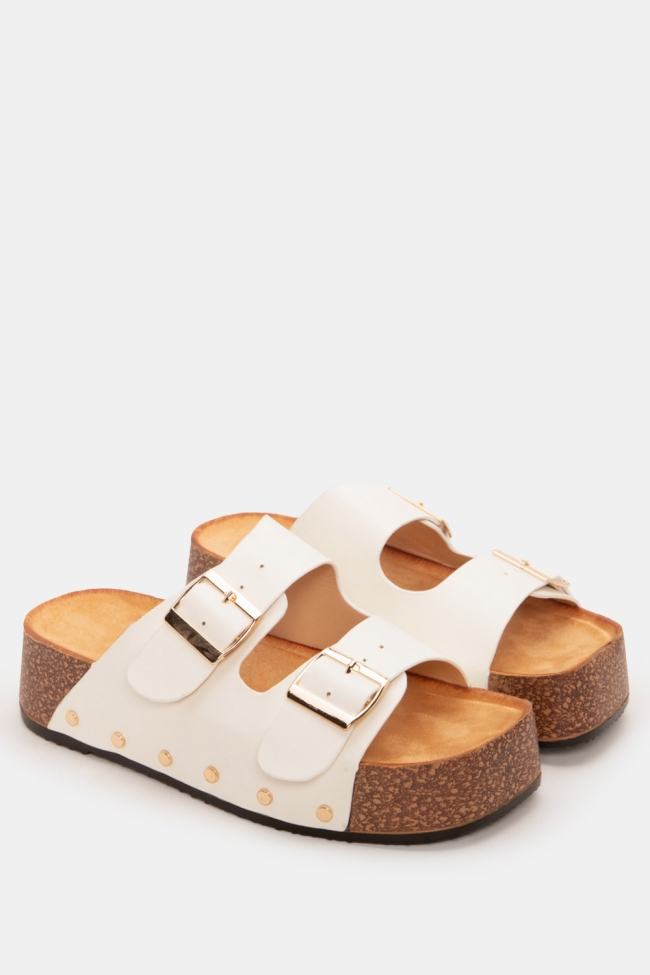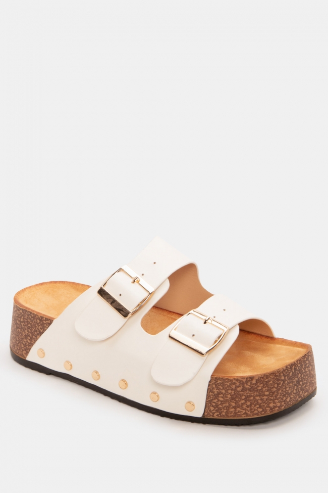 Flatform Sandals with Double Buckles & Studs