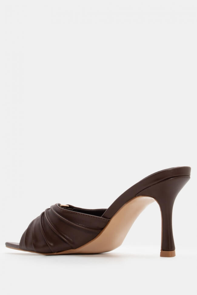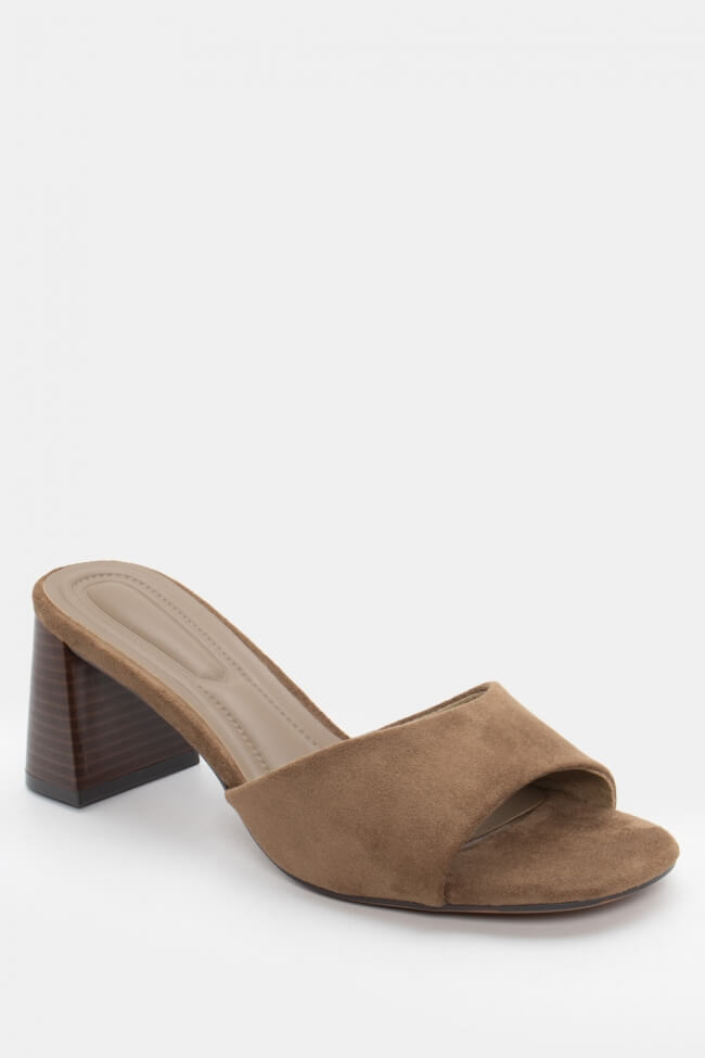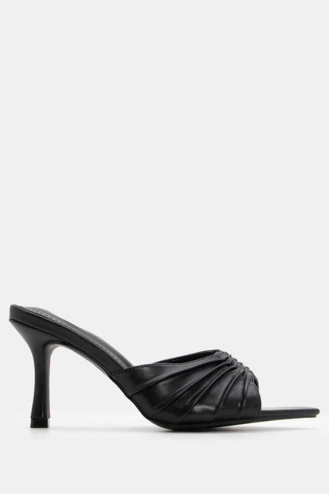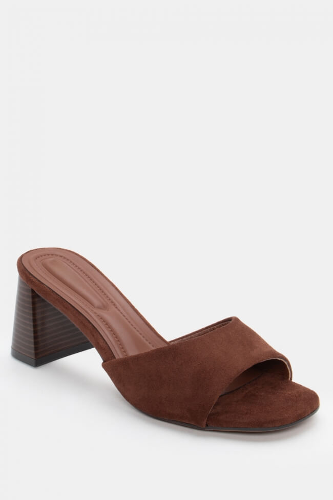 - Choose high mules satin or leather with strappy details for sleek & feminine results.