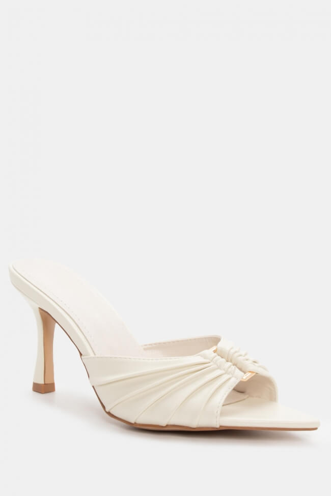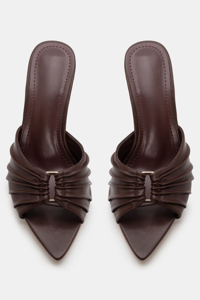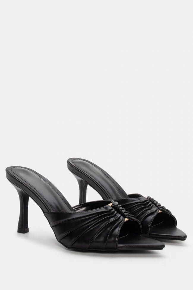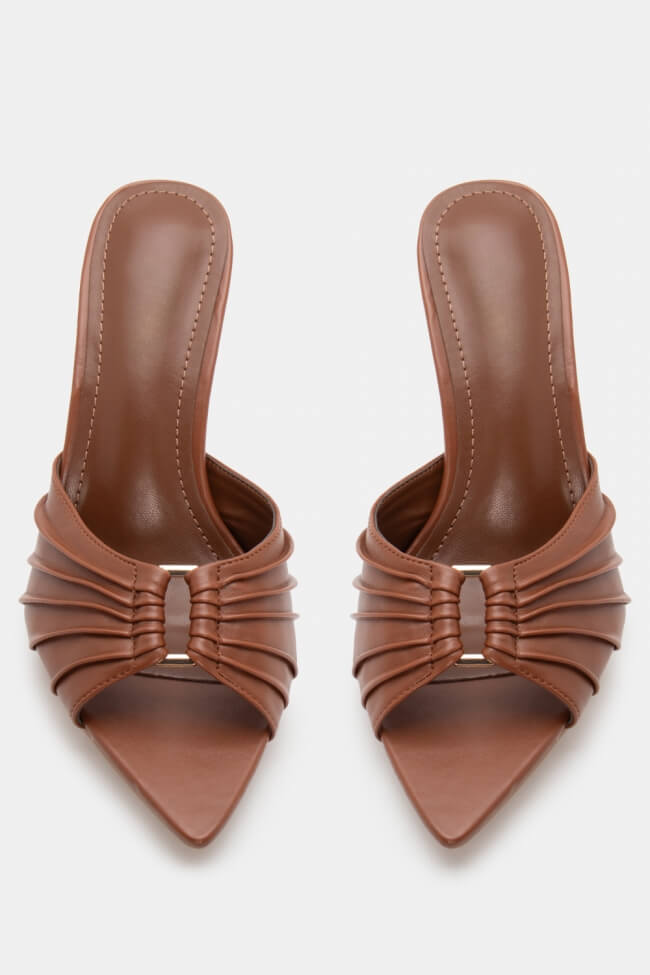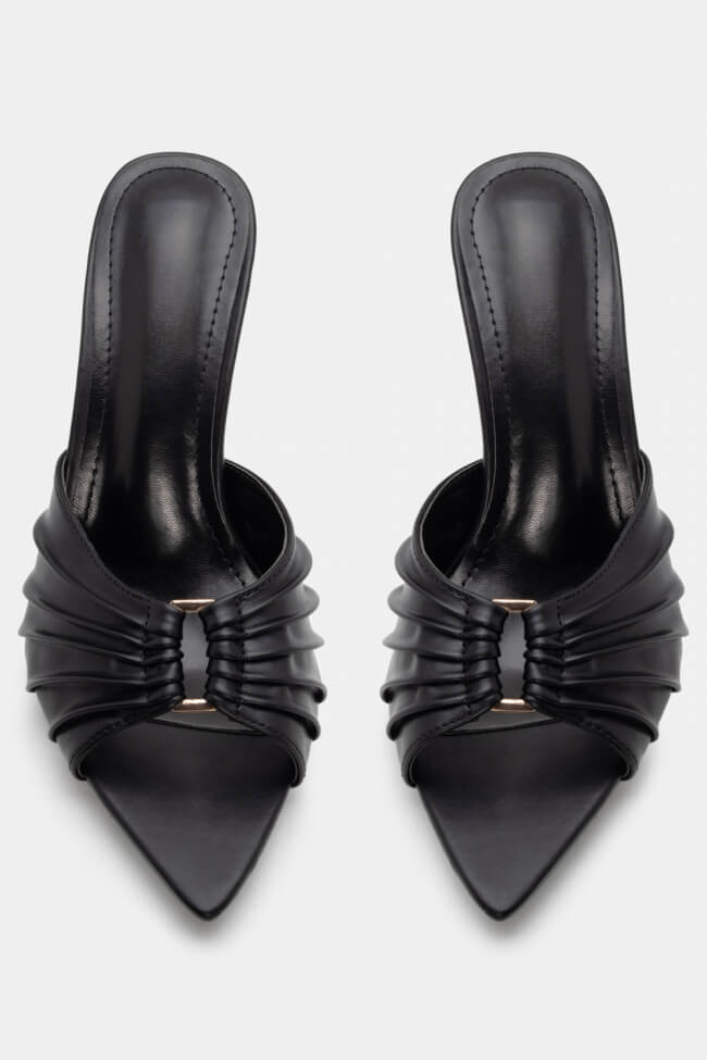 Pointed Mules with Decorative Buckle & Ruched Detailing
