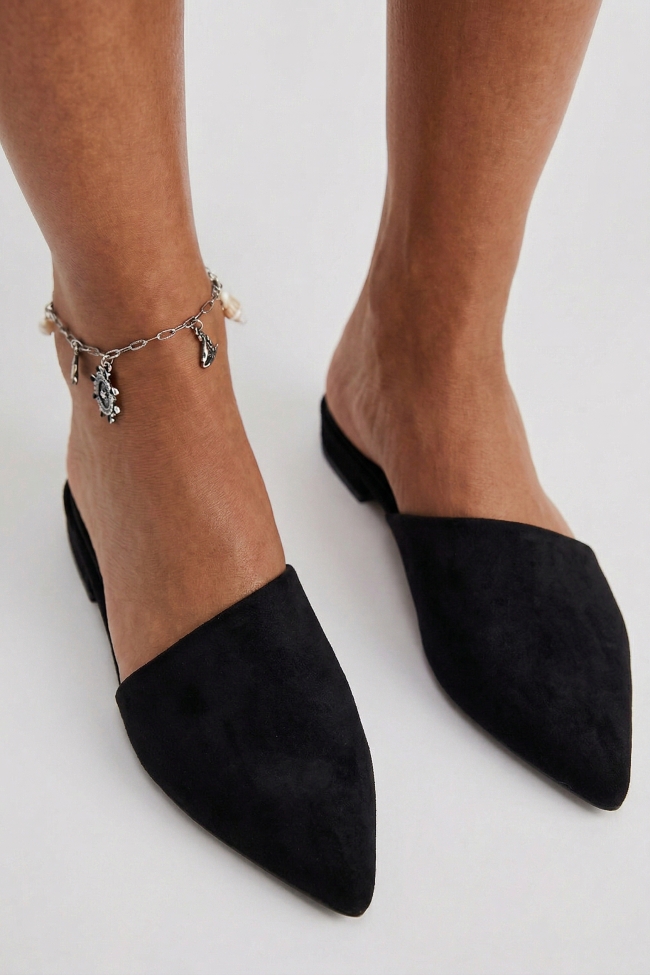 - Flat mules → Ιδανικά για all-day άνεση. Φόρεσέ τα με jeans, shorts ή αέρινα παντελόνια.
