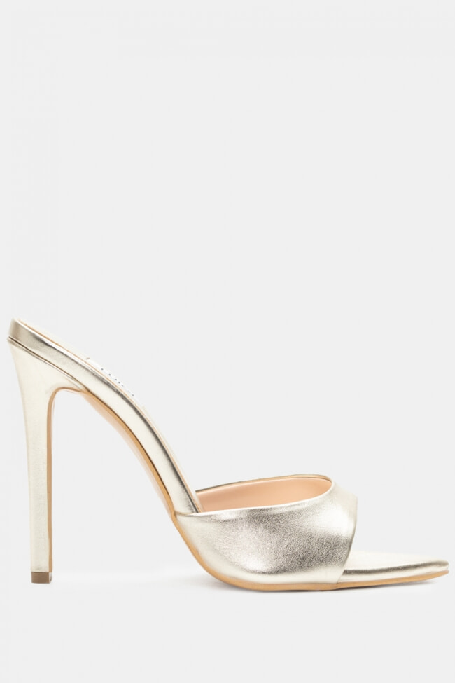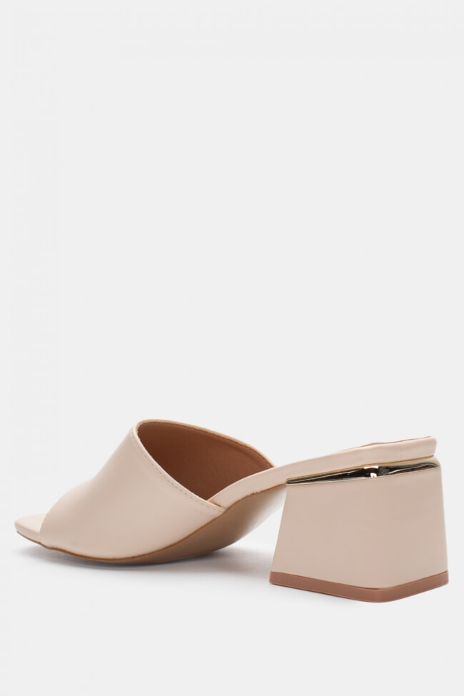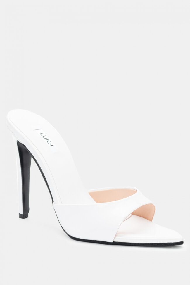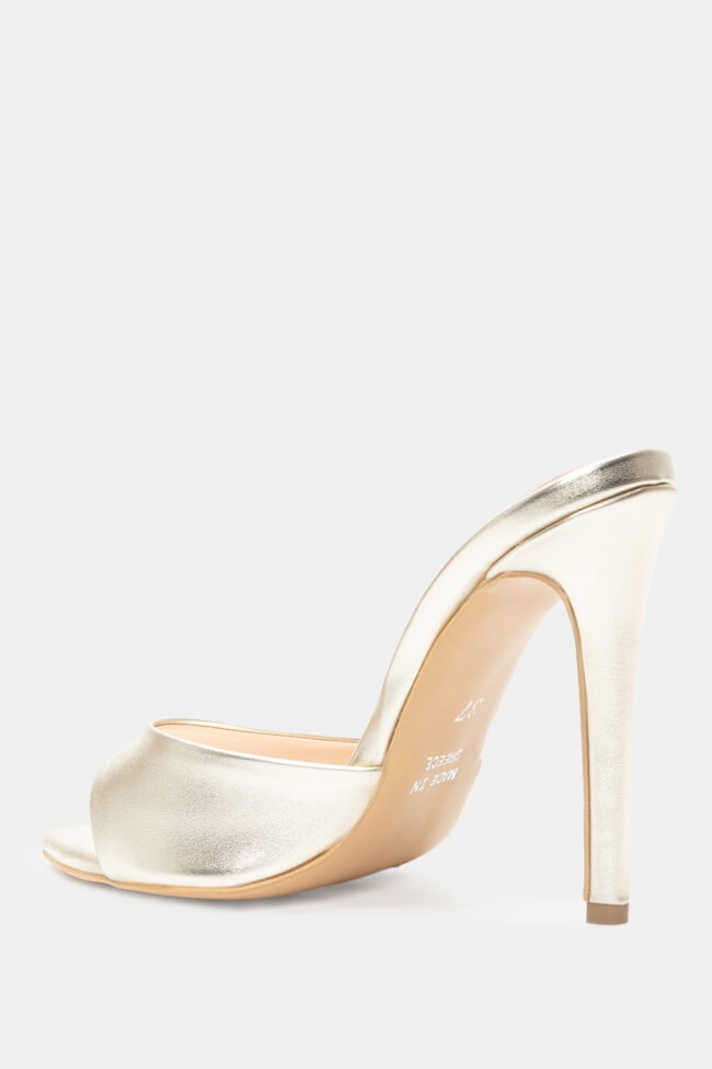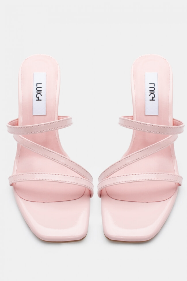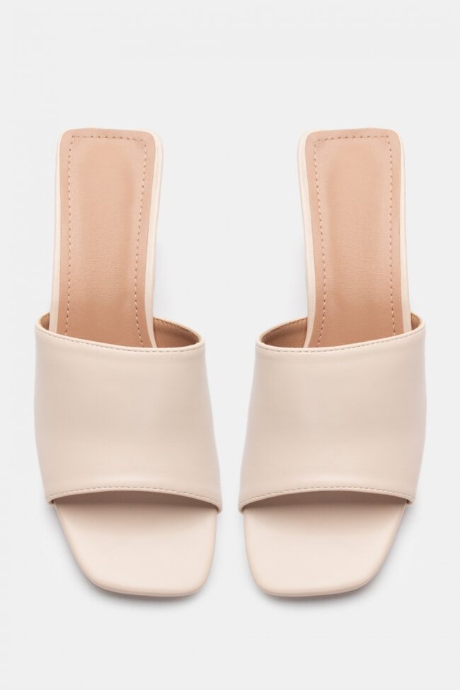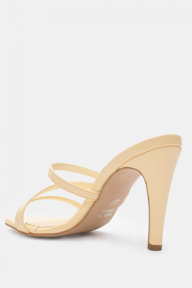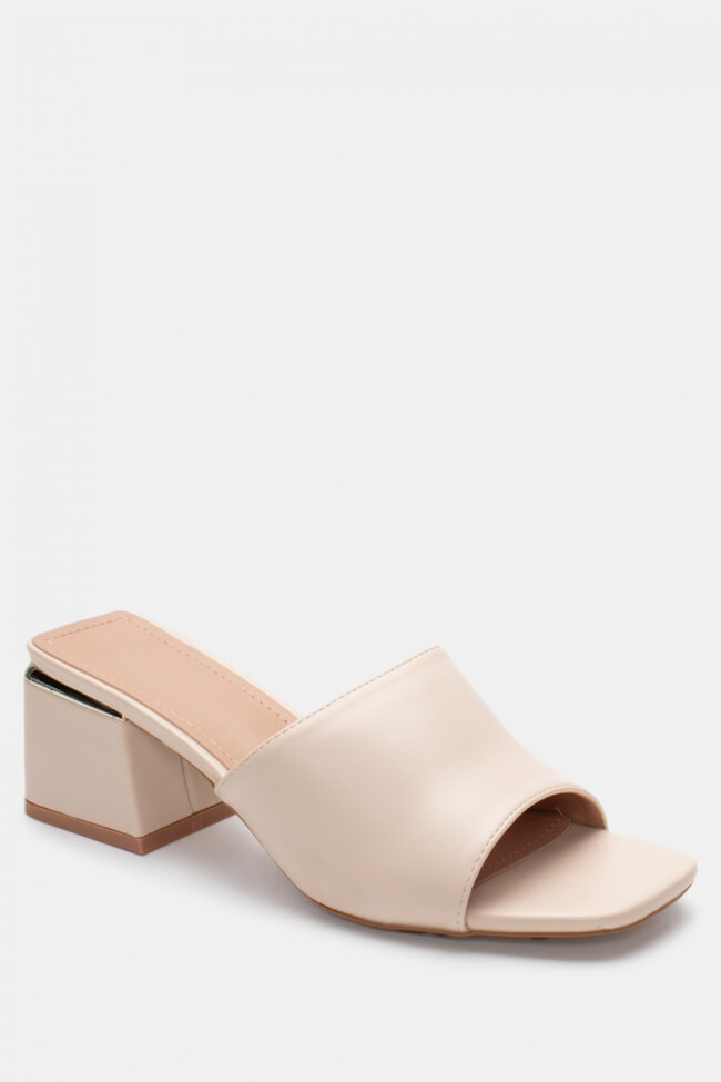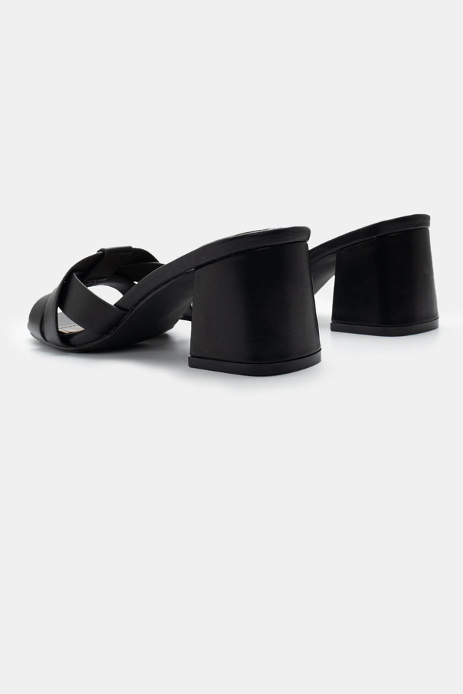 - Choose high mules satin or leather with strappy details for sleek & feminine results.