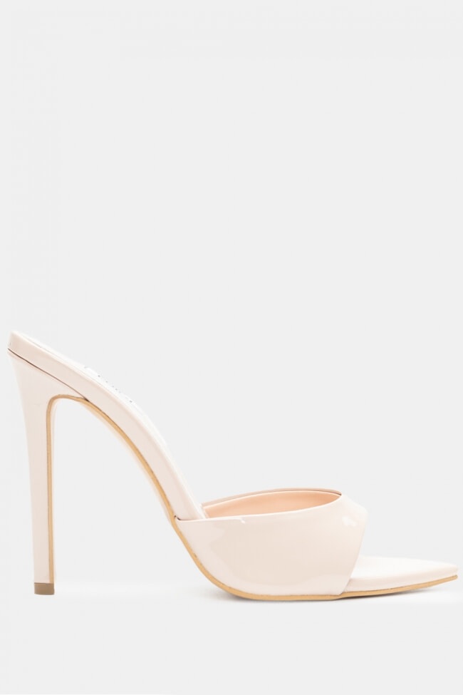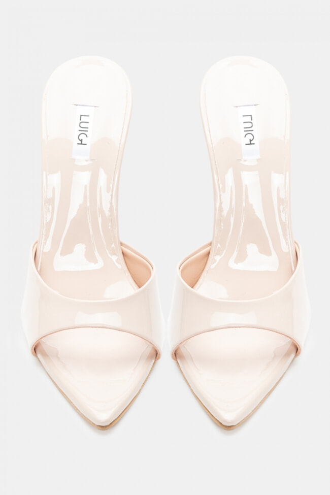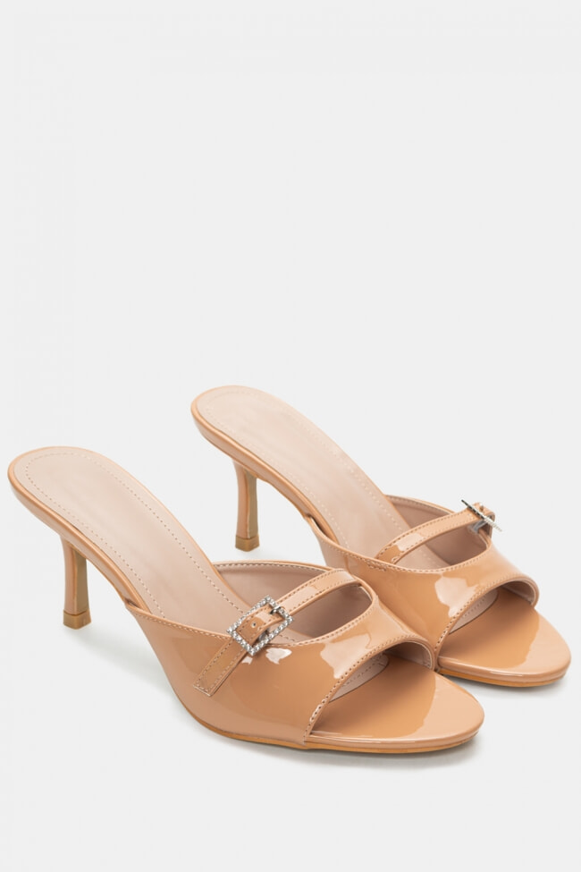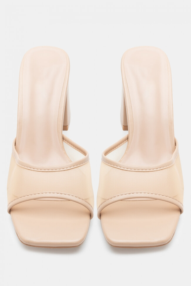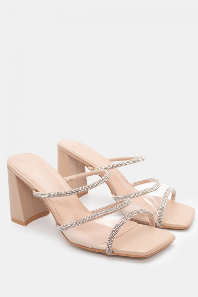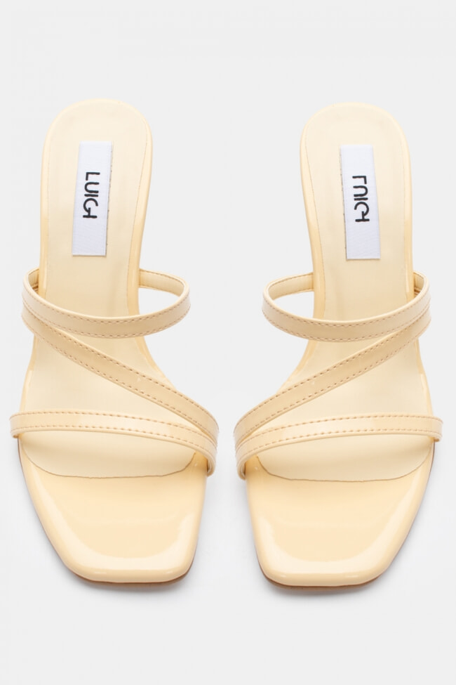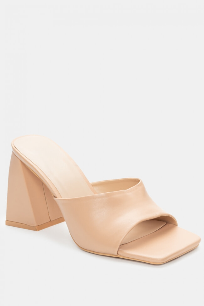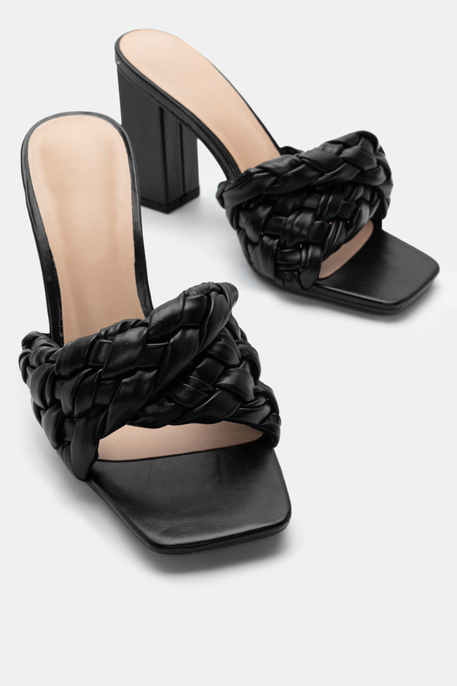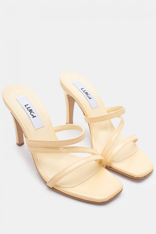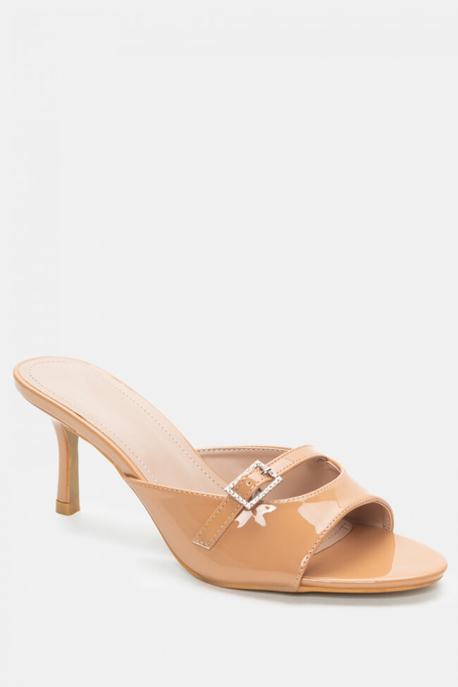 - Choose high mules satin or leather with strappy details for sleek & feminine results.