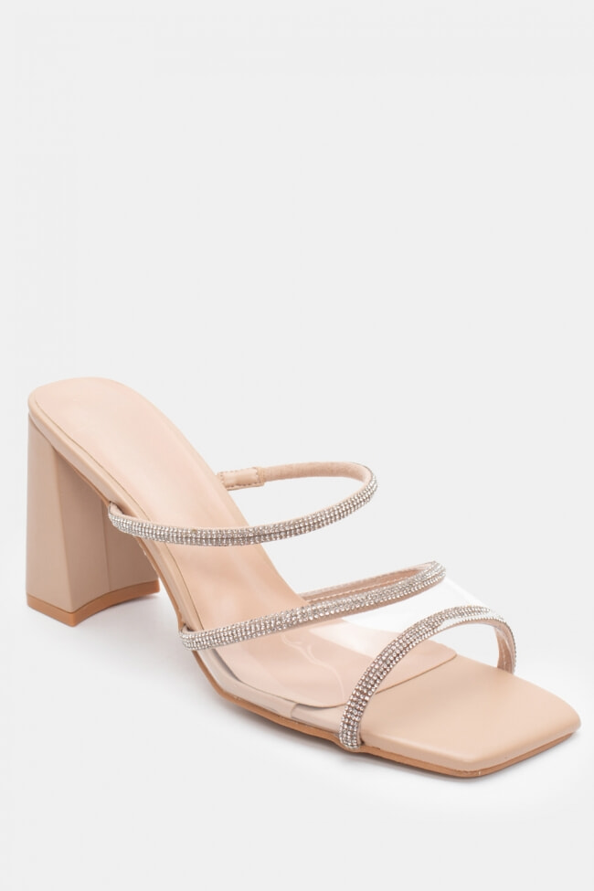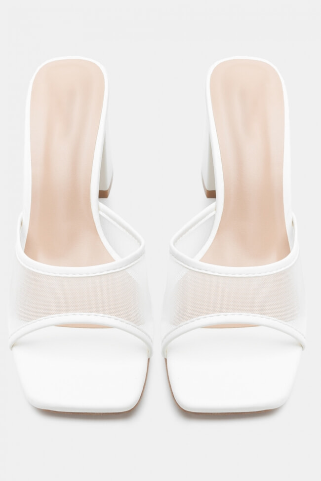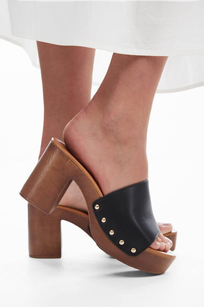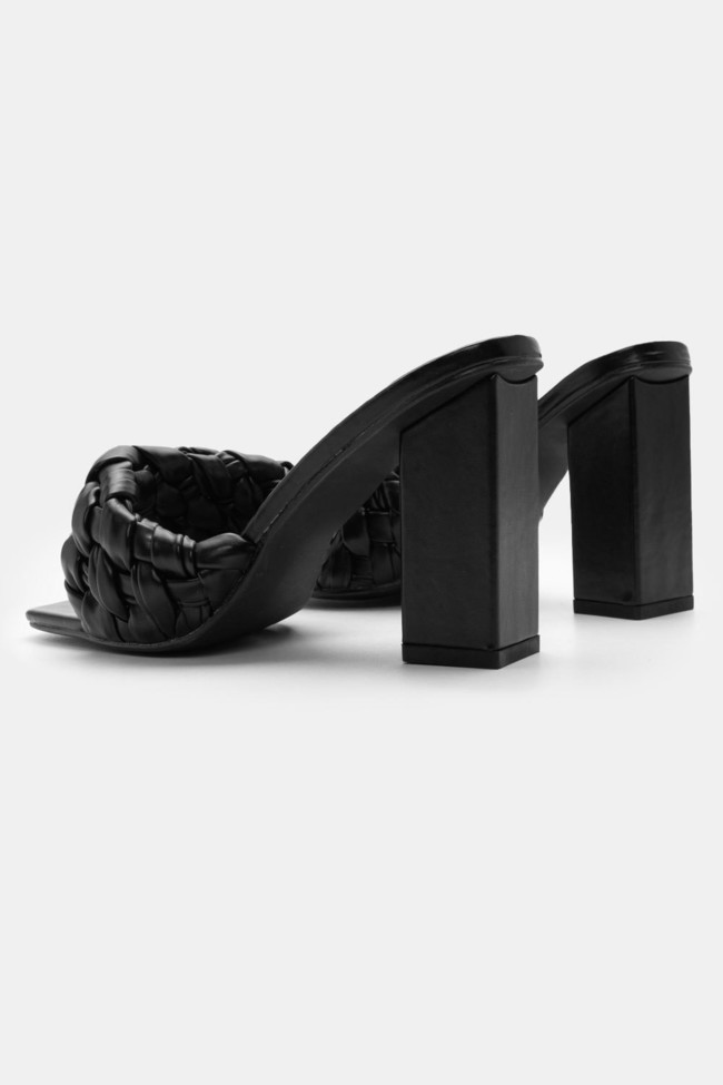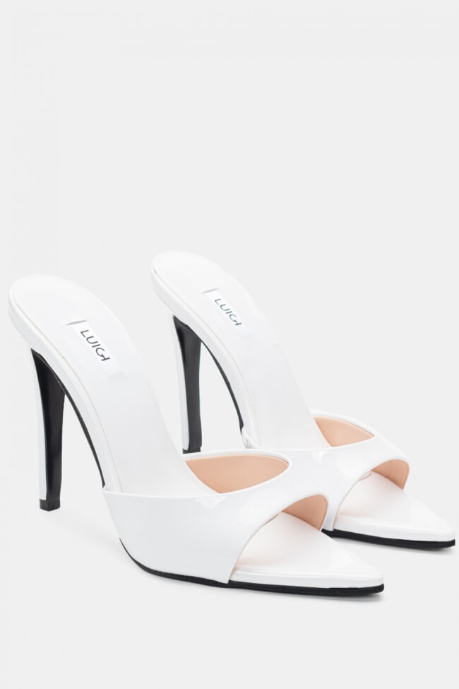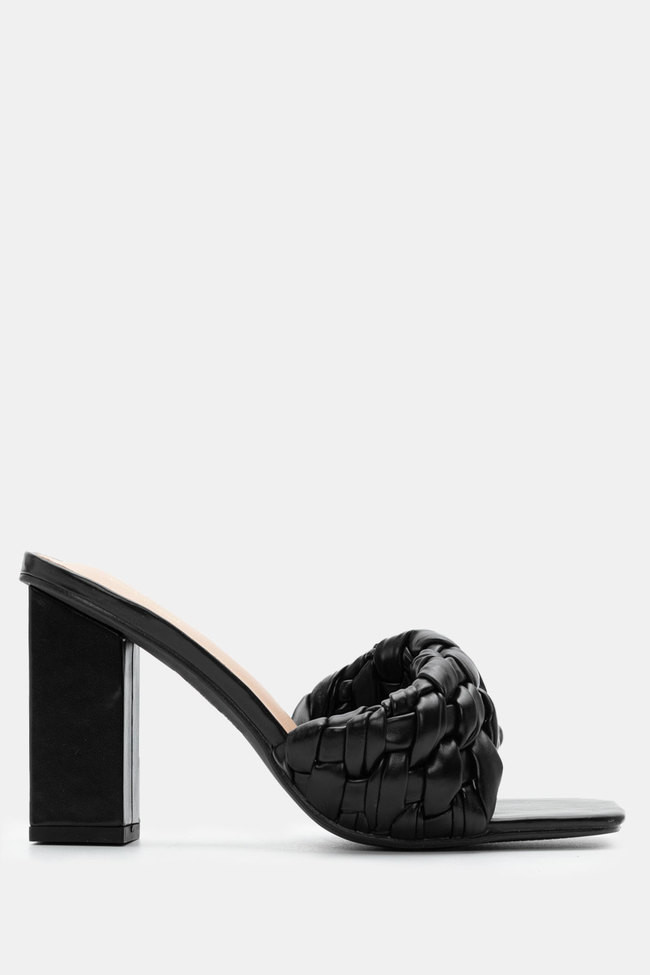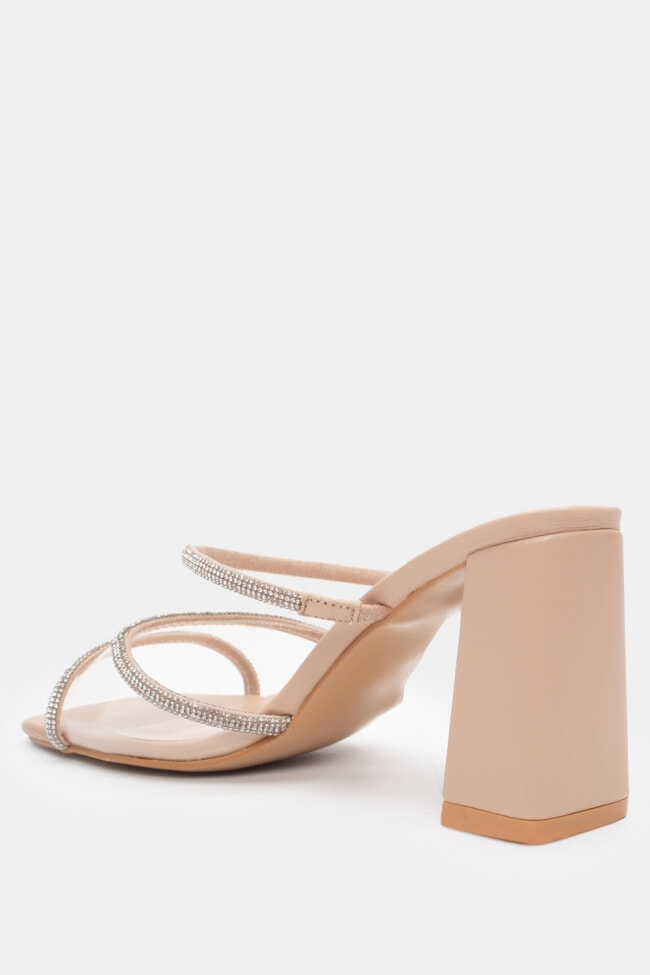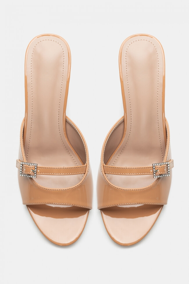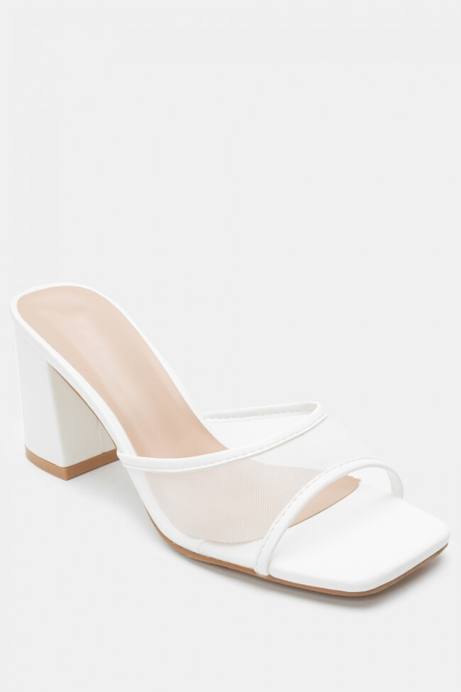 - Choose high mules satin or leather with strappy details for sleek & feminine results.