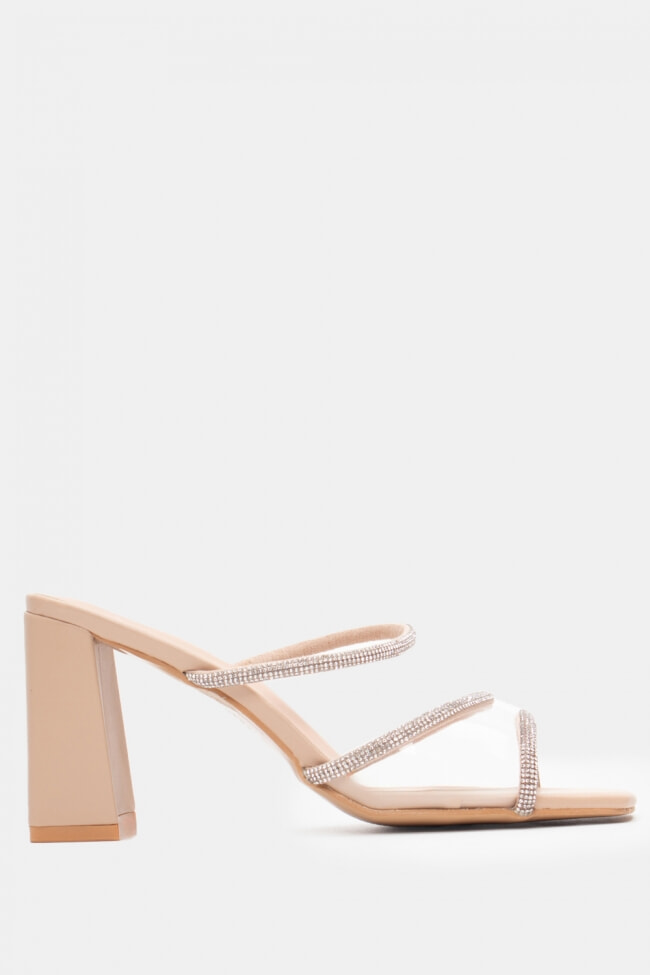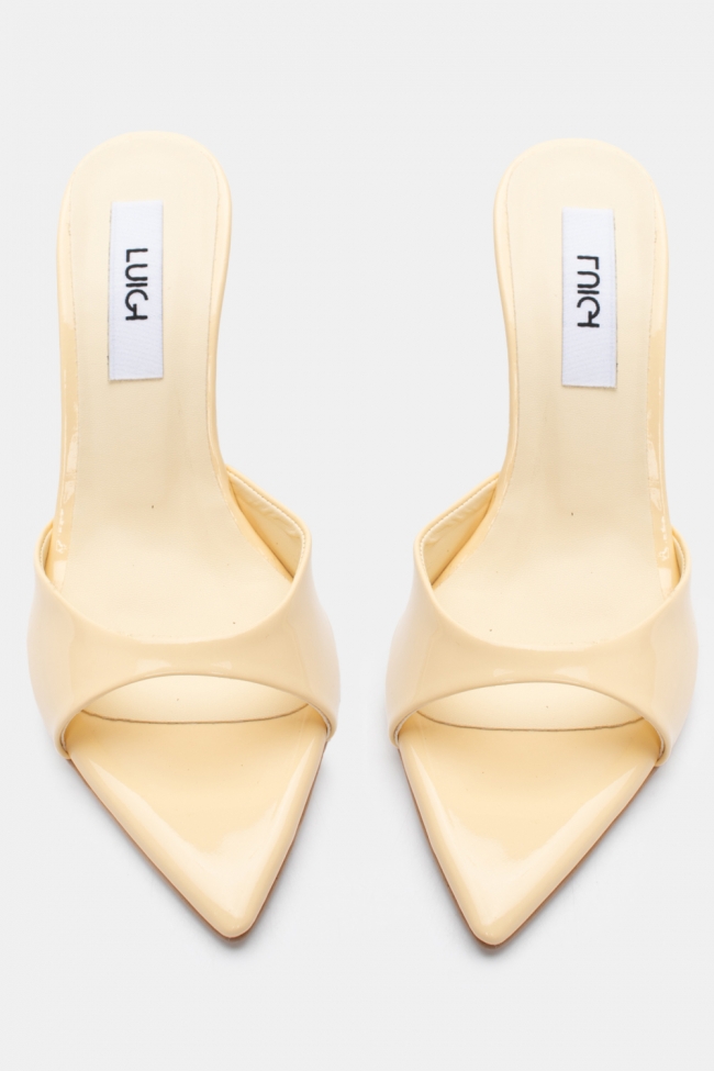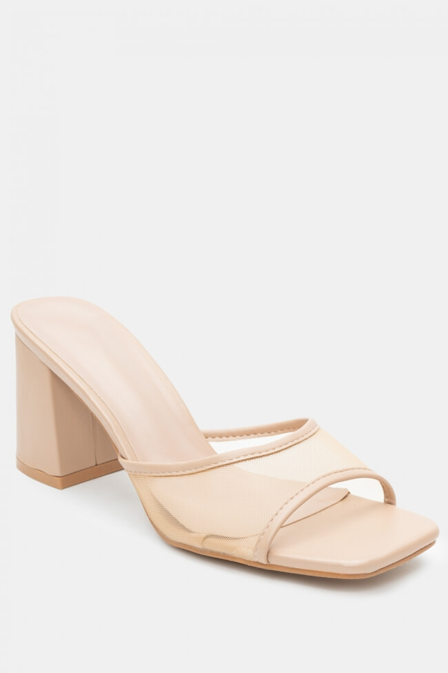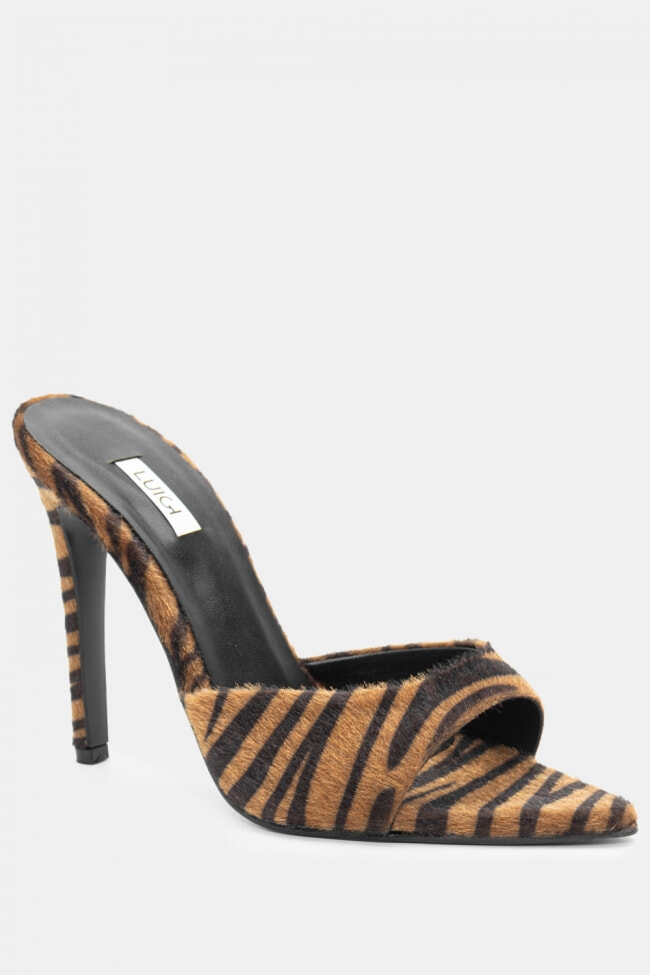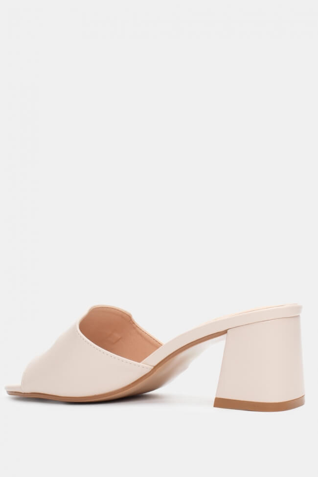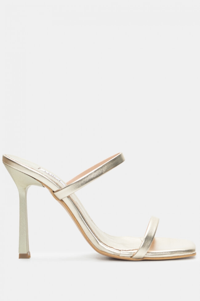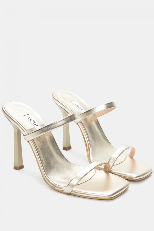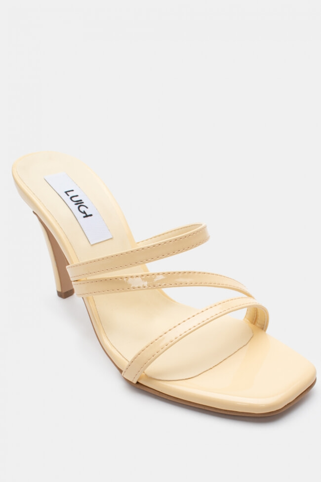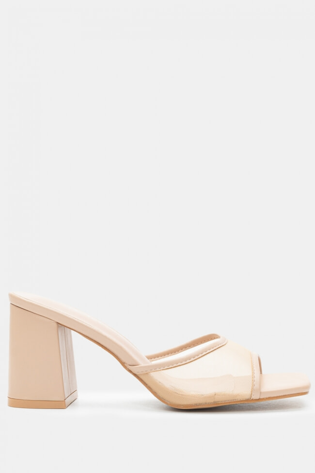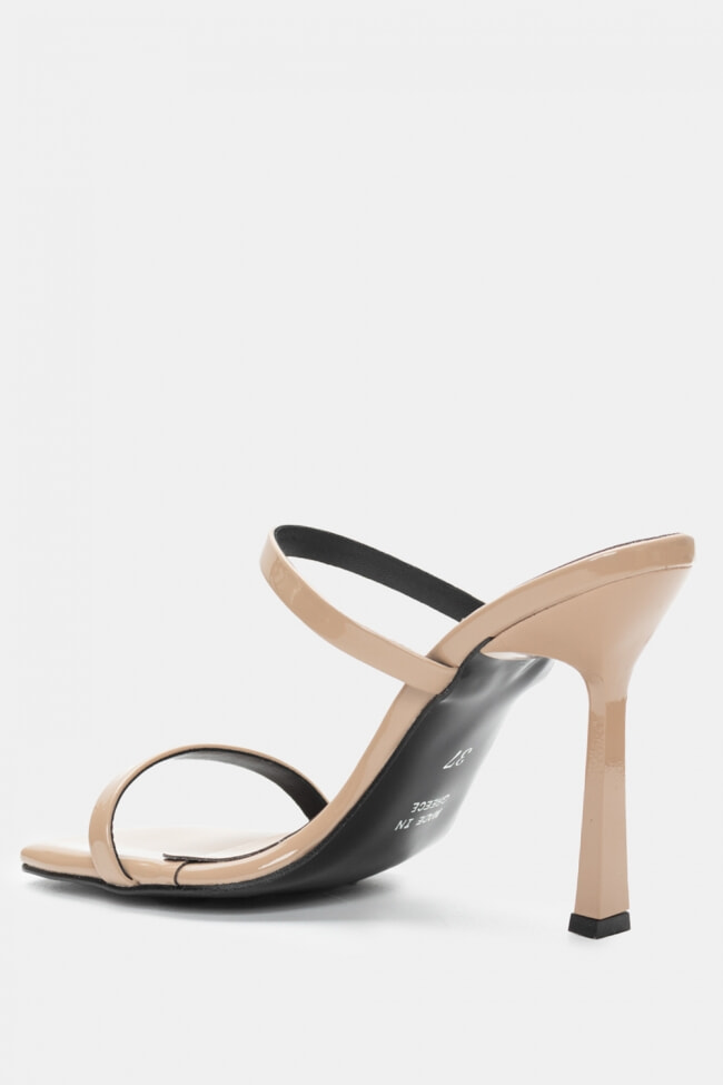 - Choose high mules satin or leather with strappy details for sleek & feminine results.