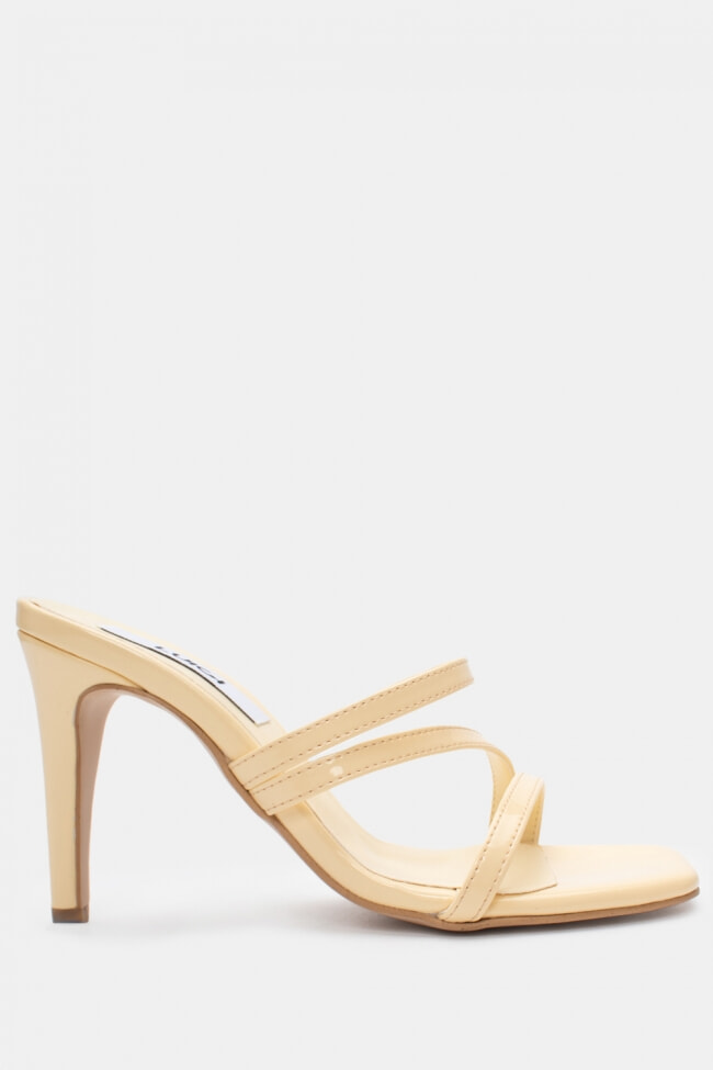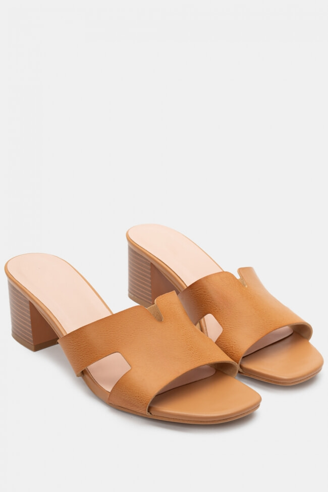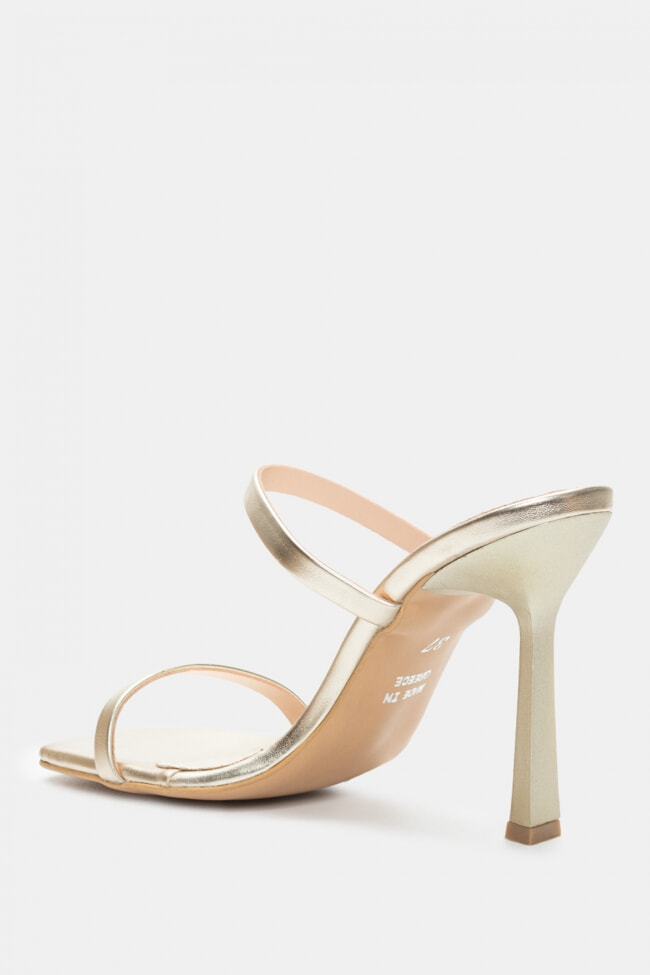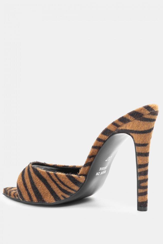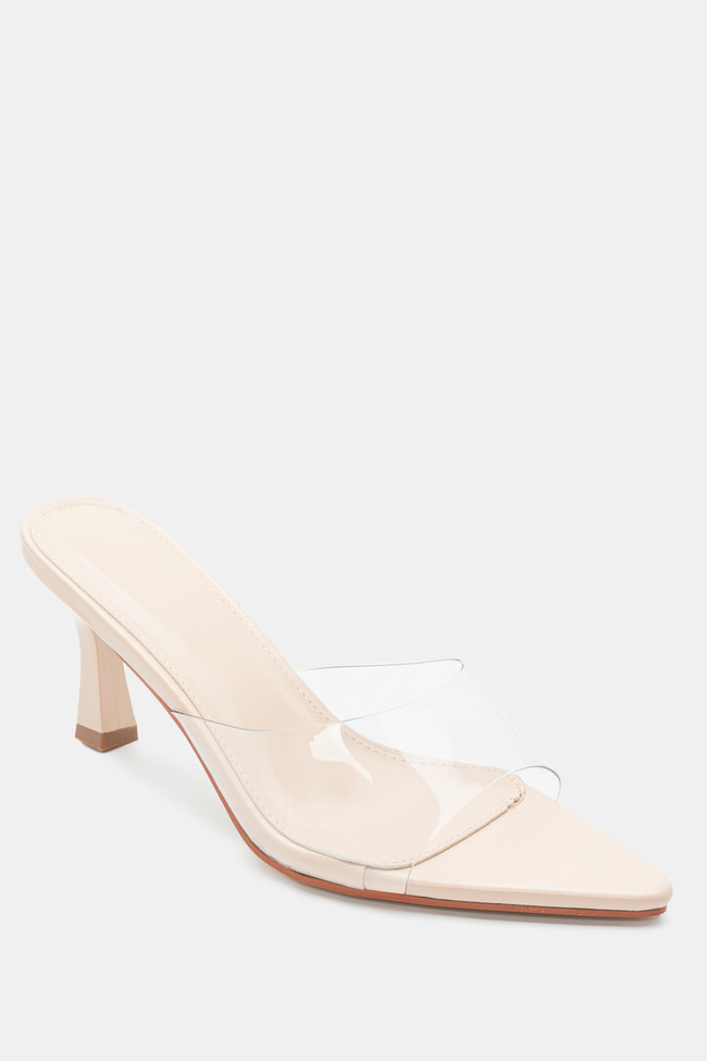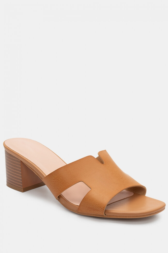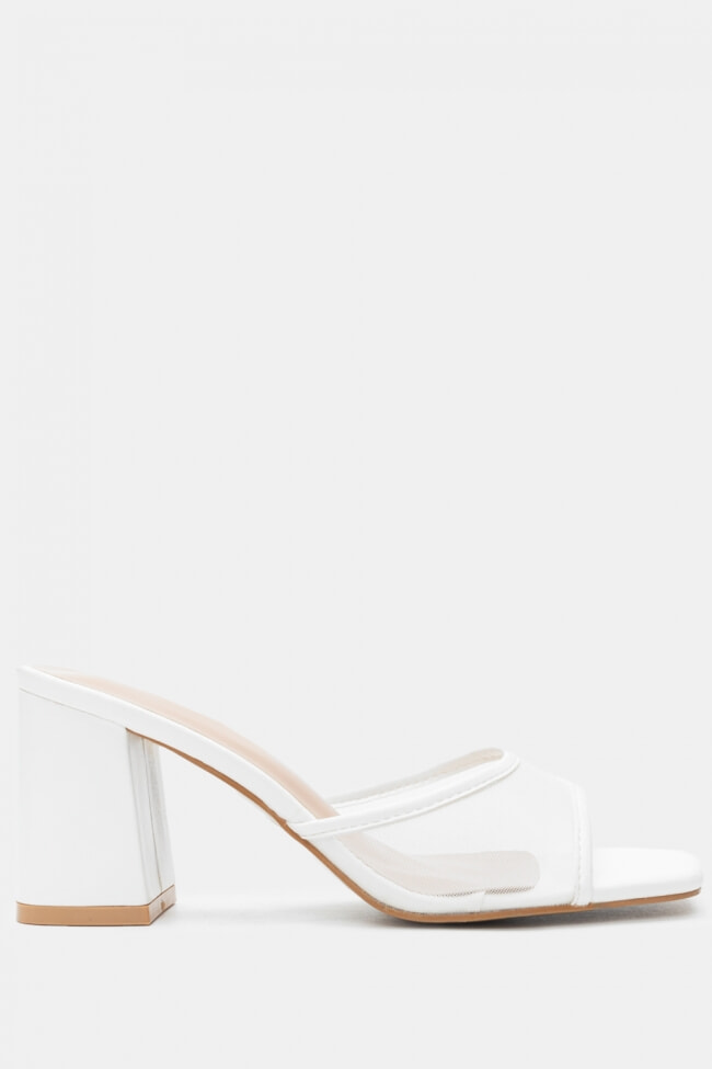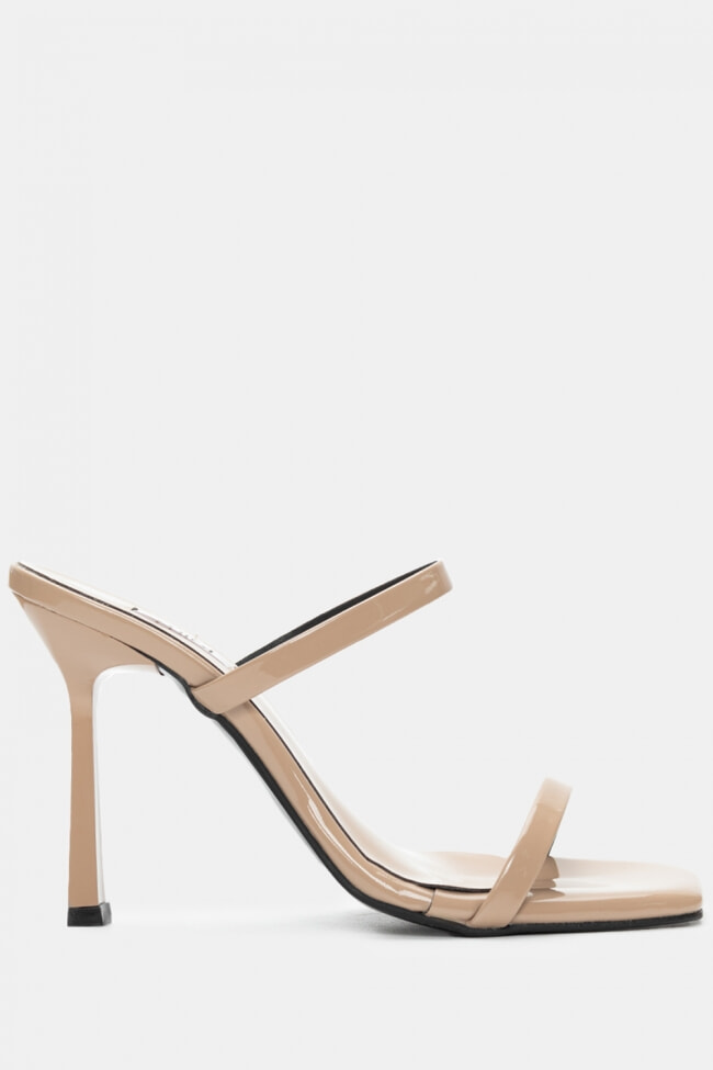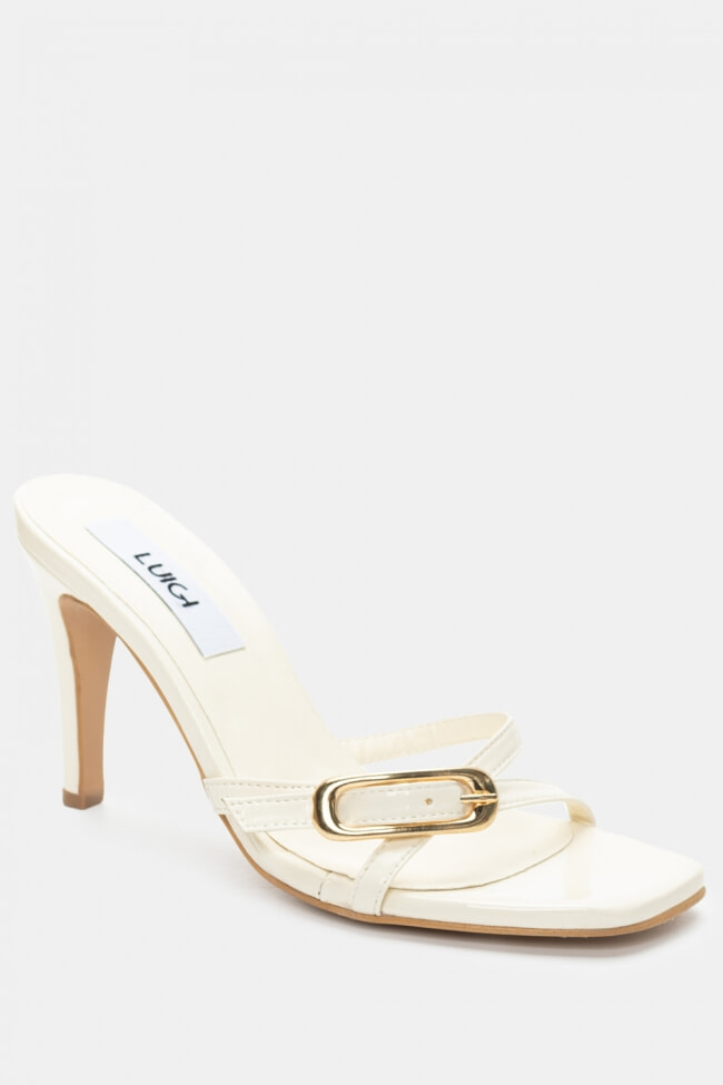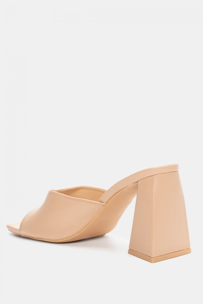 - Choose high mules satin or leather with strappy details for sleek & feminine results.