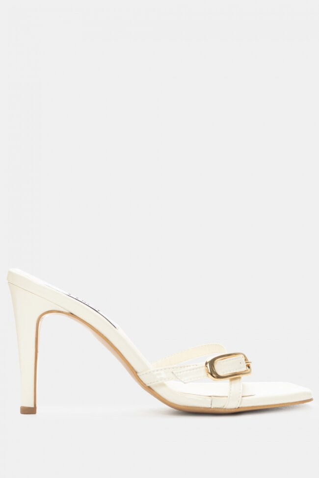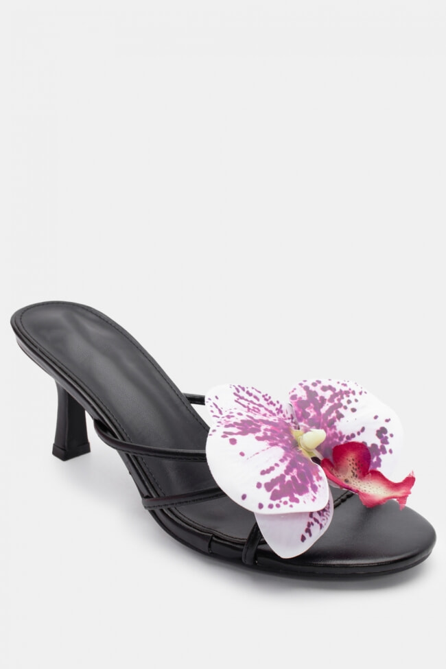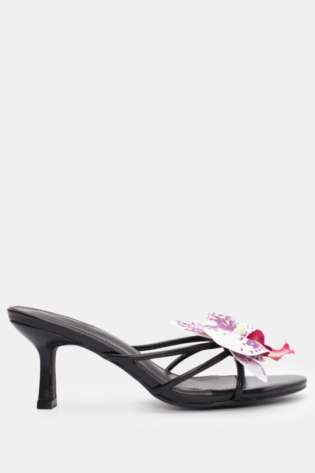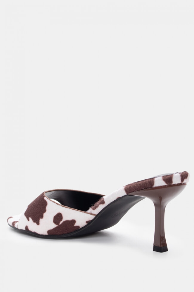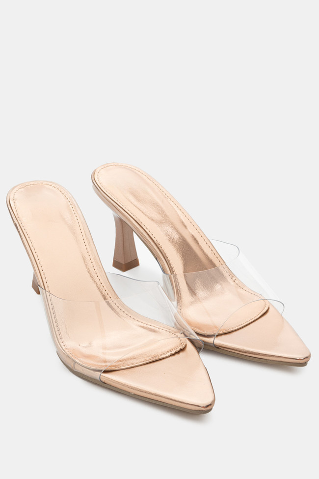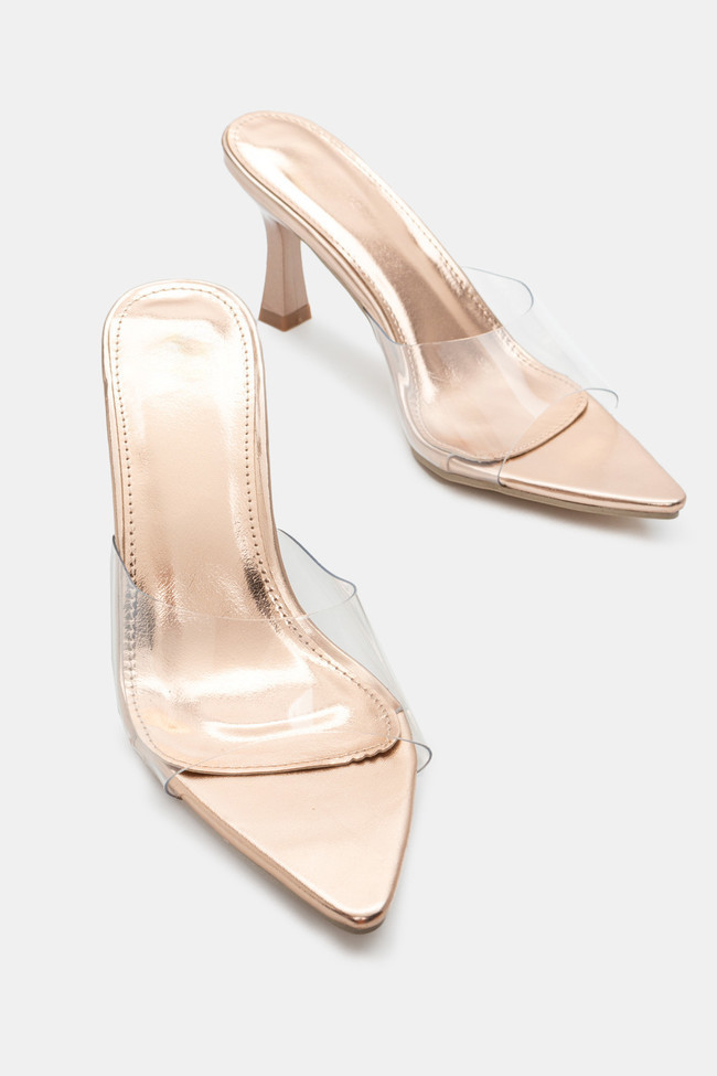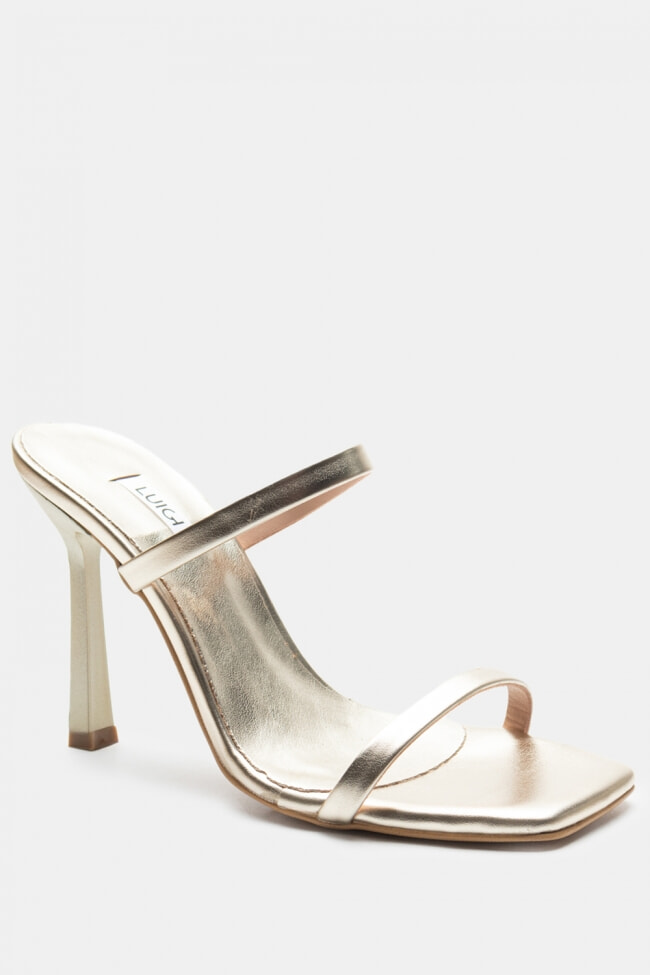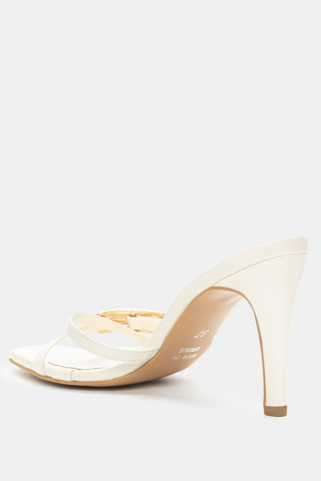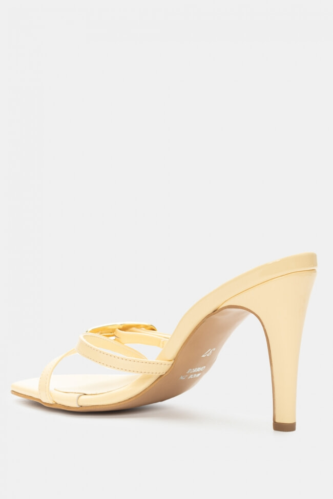 - Choose high mules satin or leather with strappy details for sleek & feminine results.