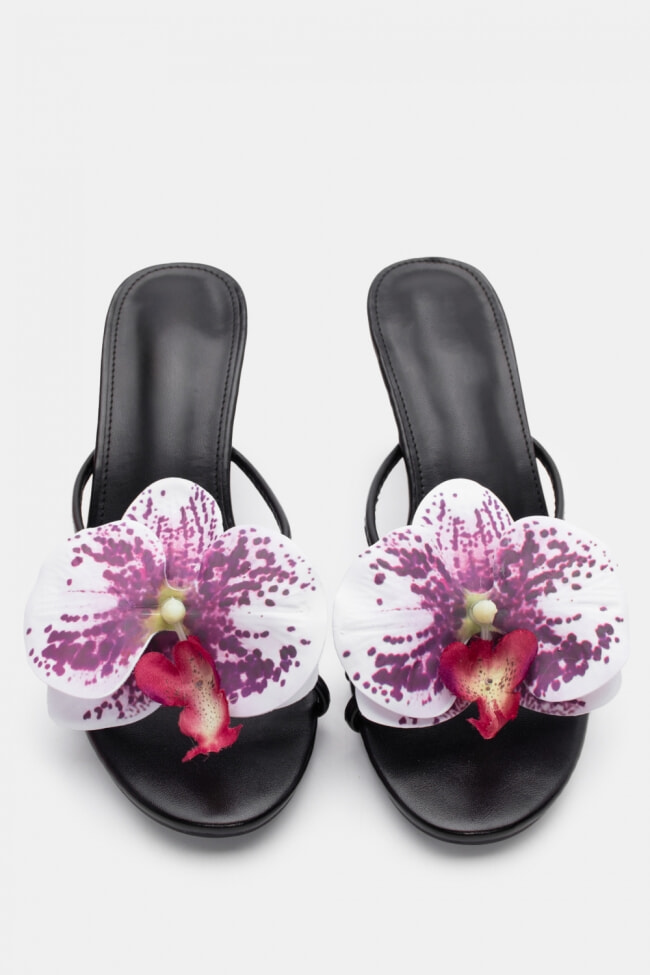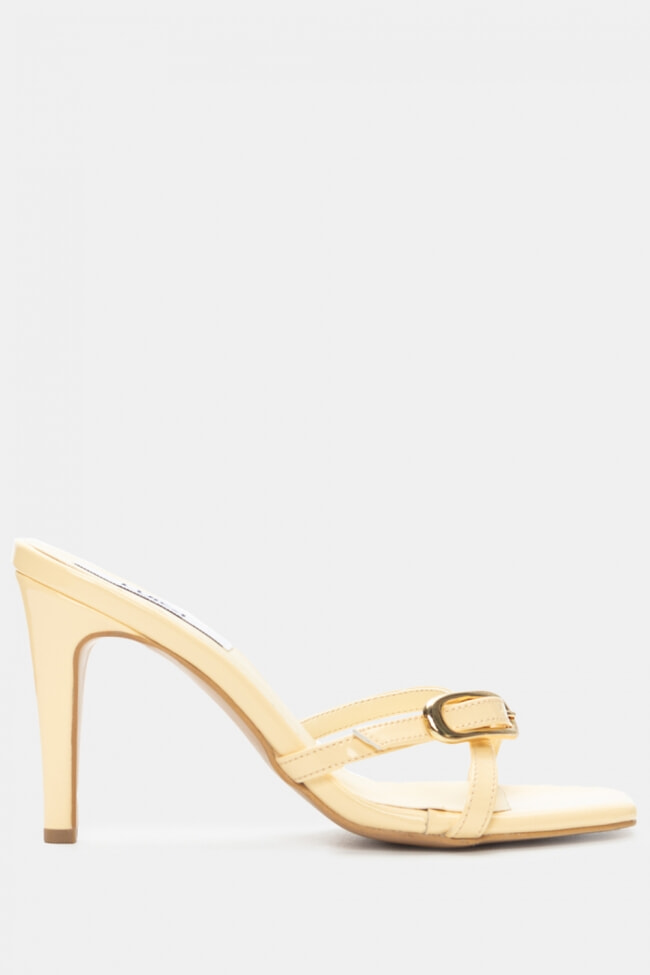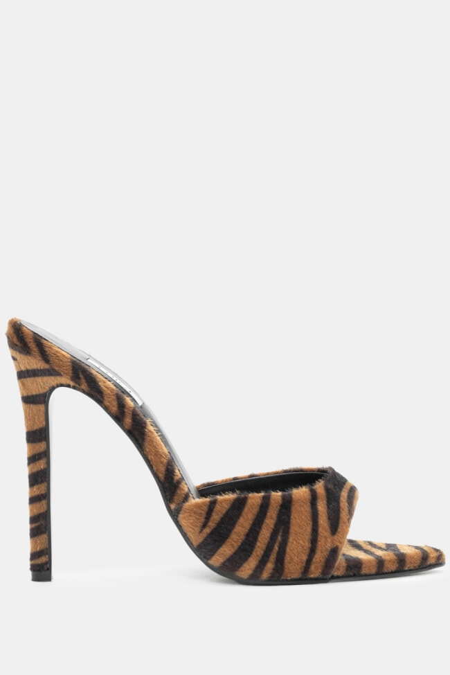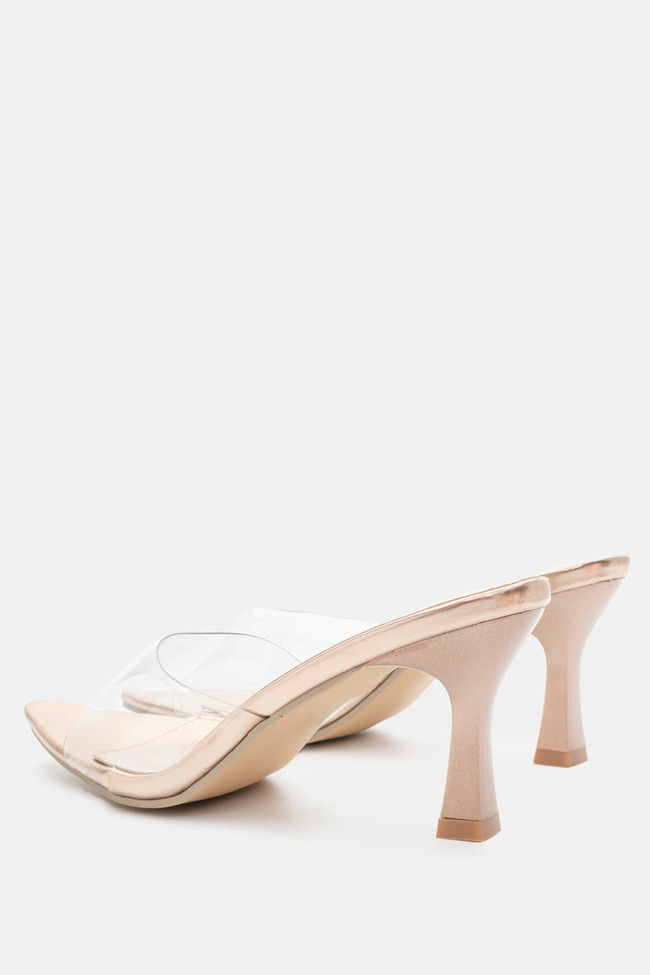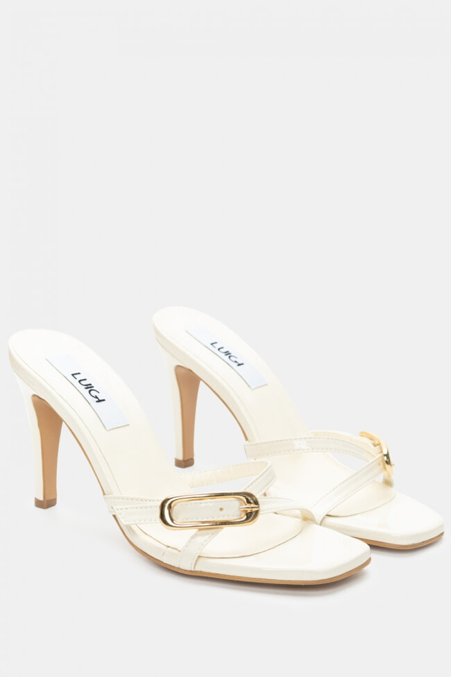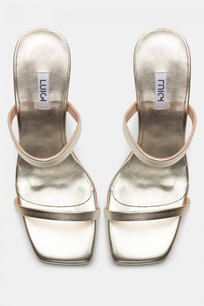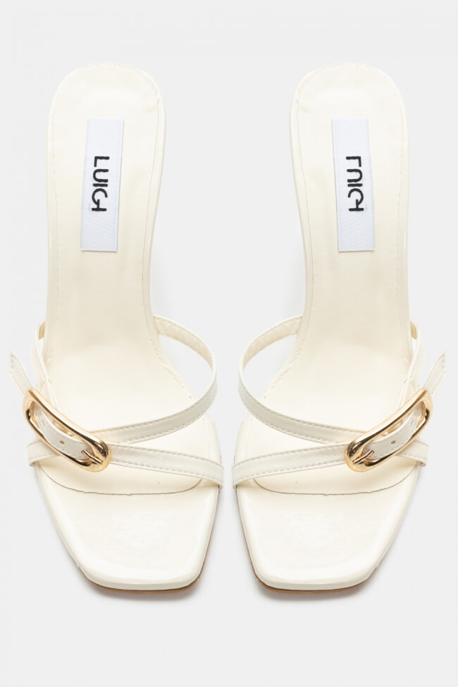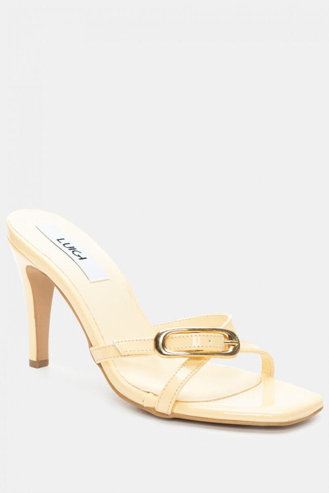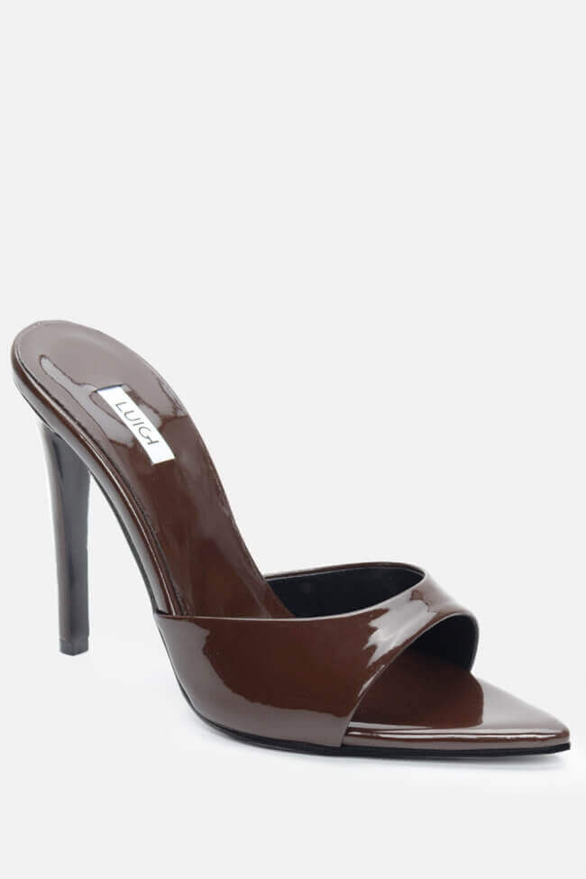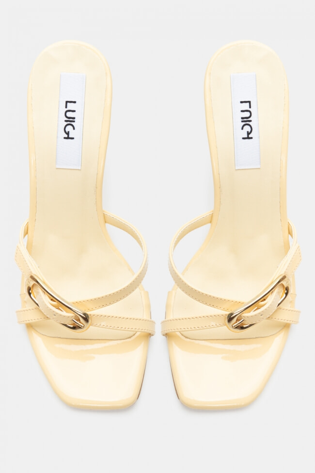 - Choose high mules satin or leather with strappy details for sleek & feminine results.
