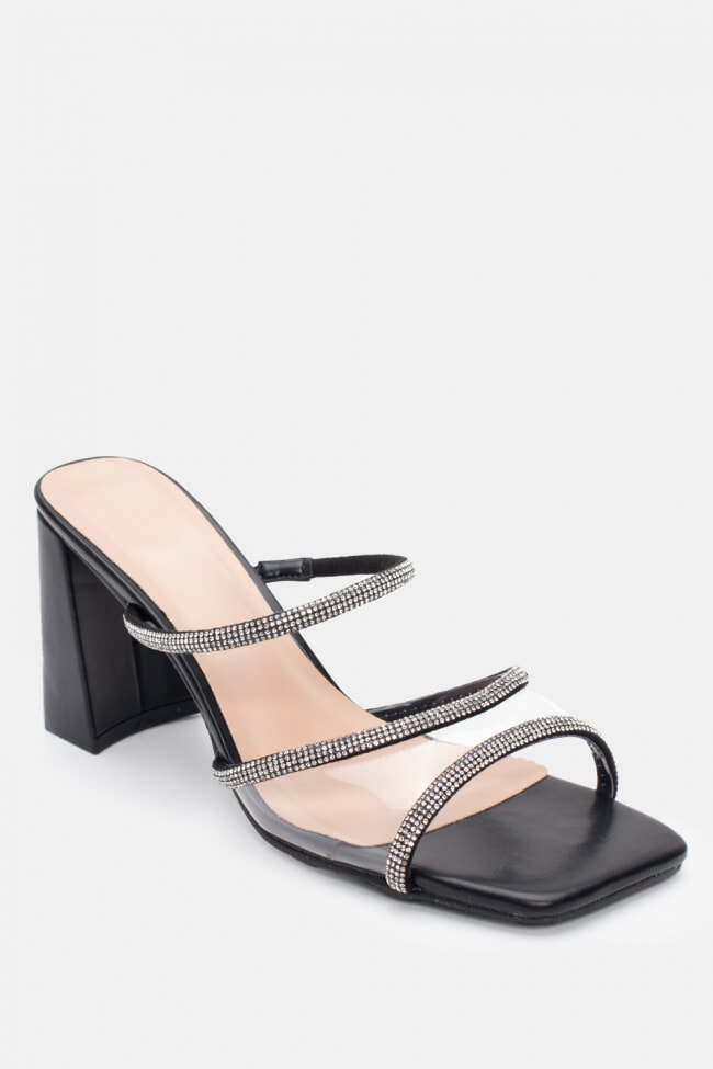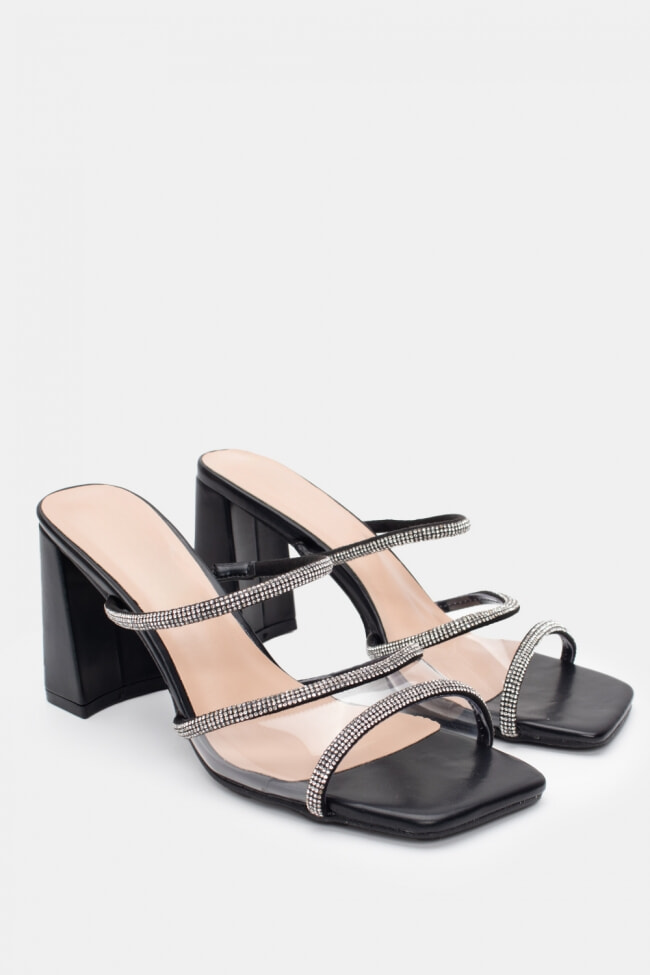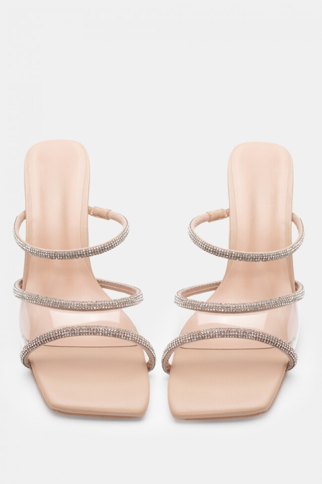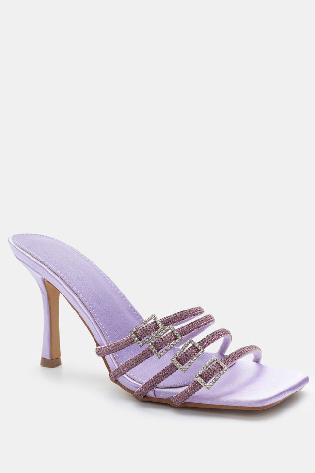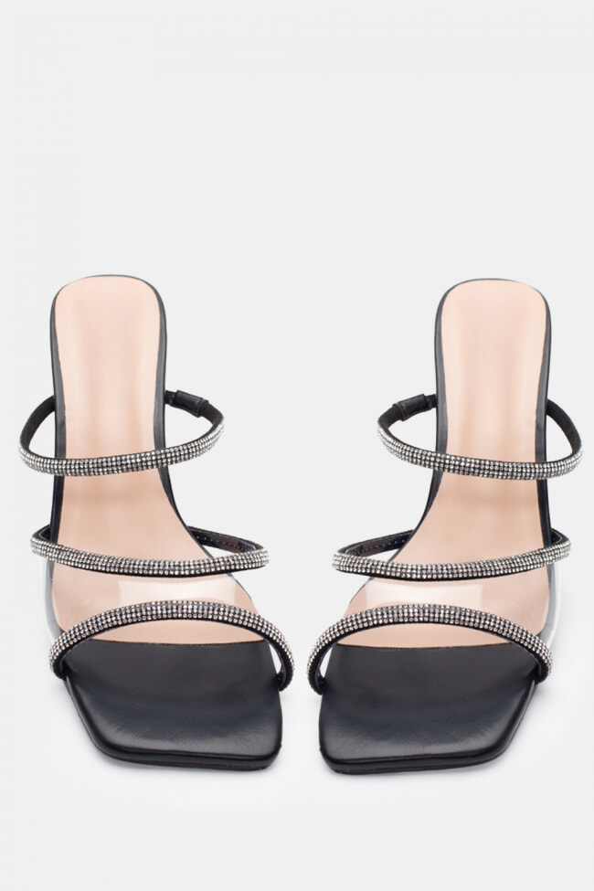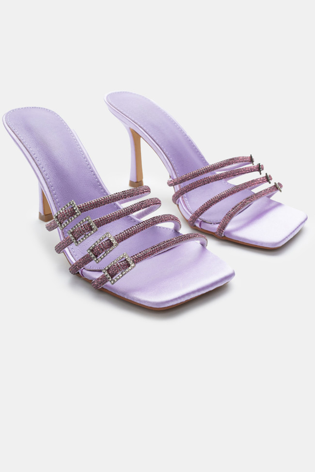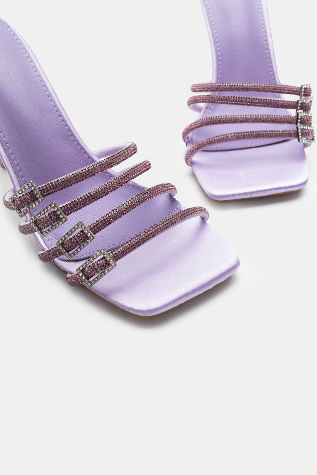 Satin Mules with Multiple Strass Straps