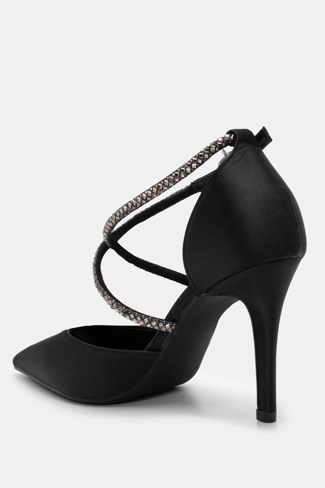 Pantofi cu toc ascuțit cu barete încrucișate din Strass