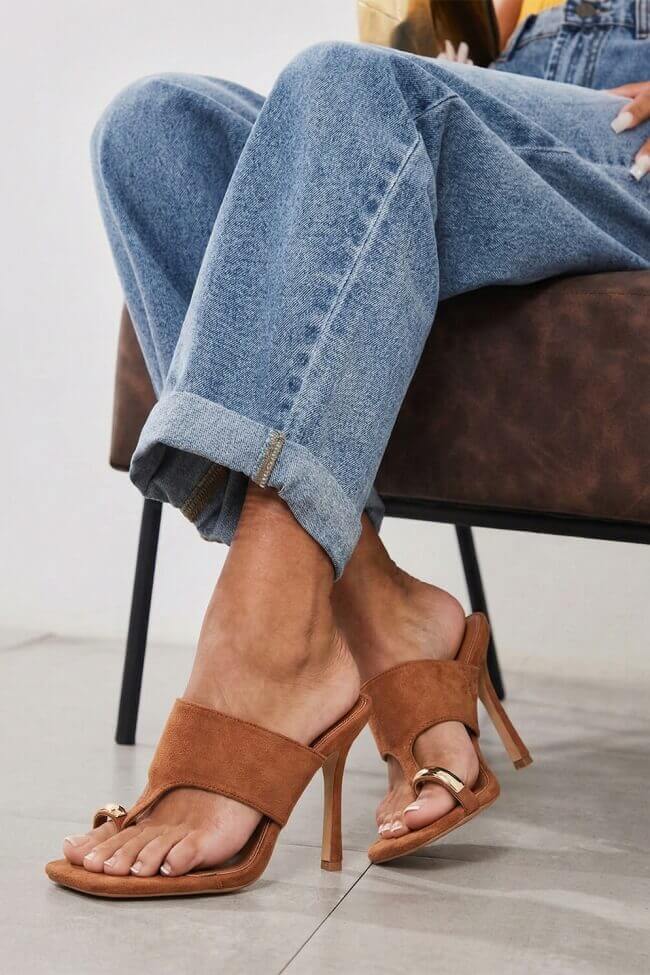 - Τζιν και μπλούζα: Συνδύασε τα ψηλοτάκουνα πέδιλα με χοντρό τακούνι με ένα απλό τζιν παντελόνι και ένα plain λευκό t-shirt για ένα stylish morning look. Μην ξεχάσεις τα αξεσουάρ!