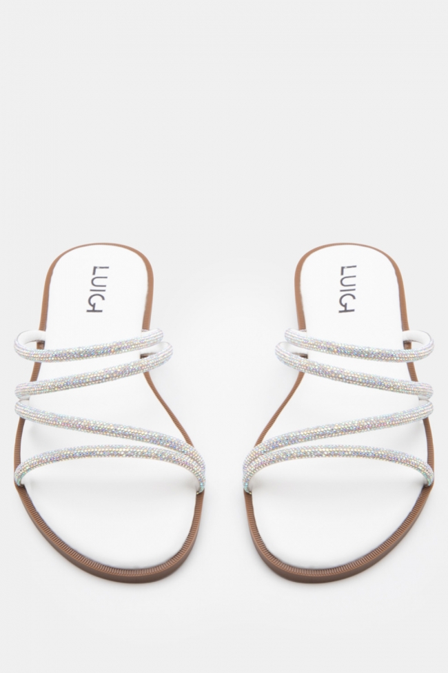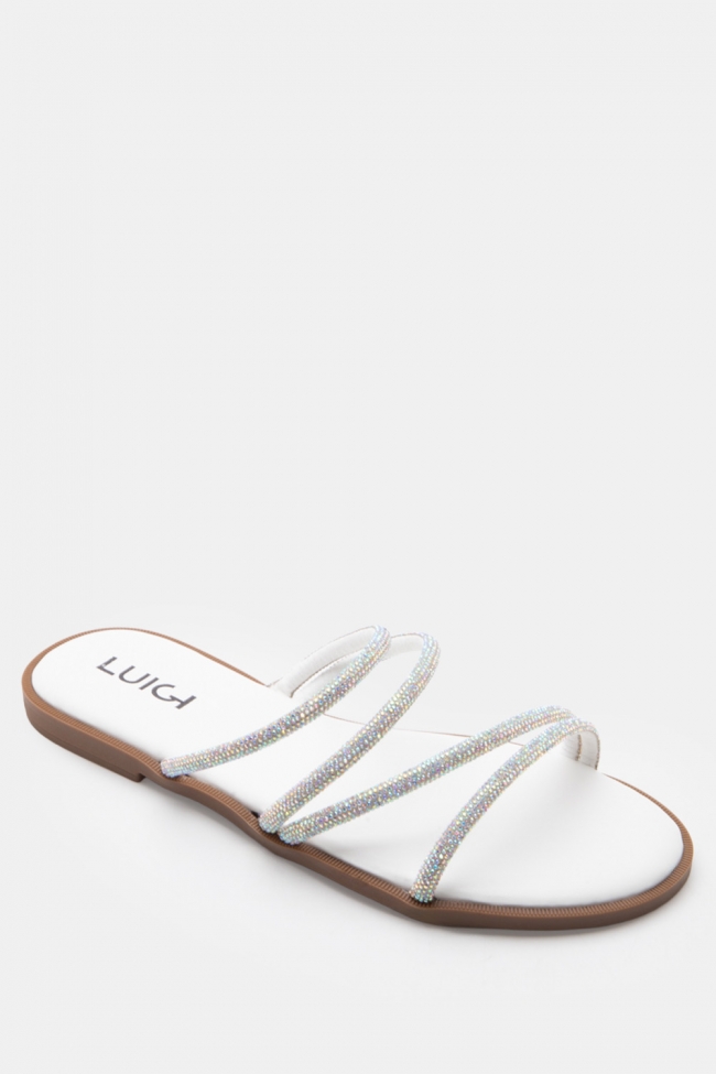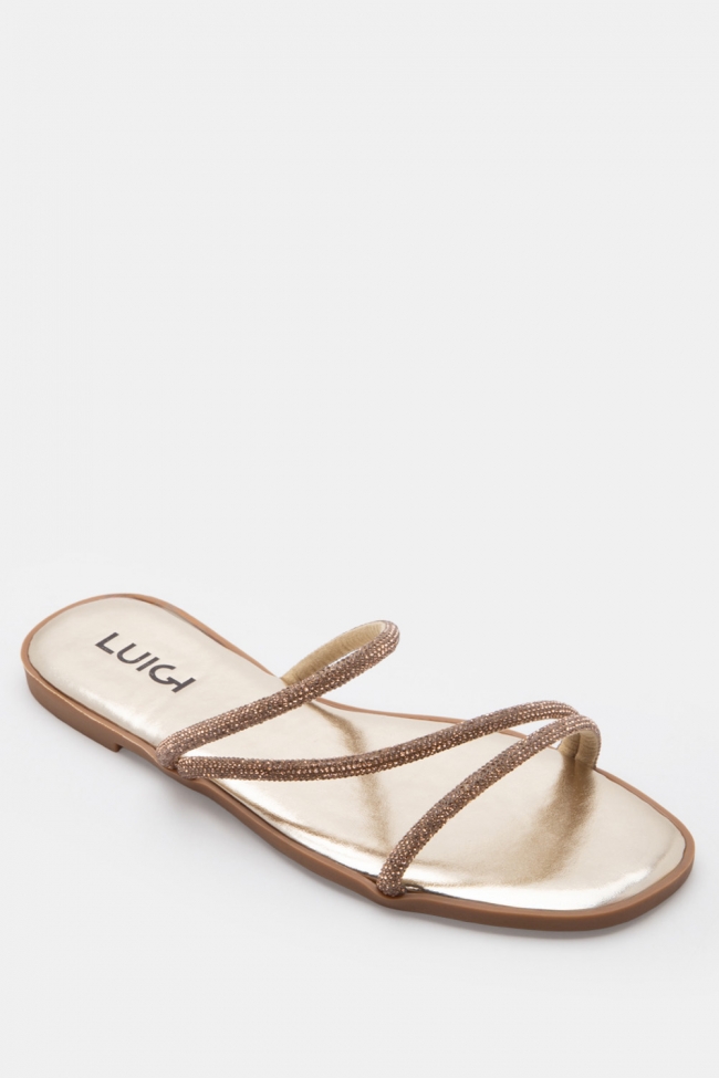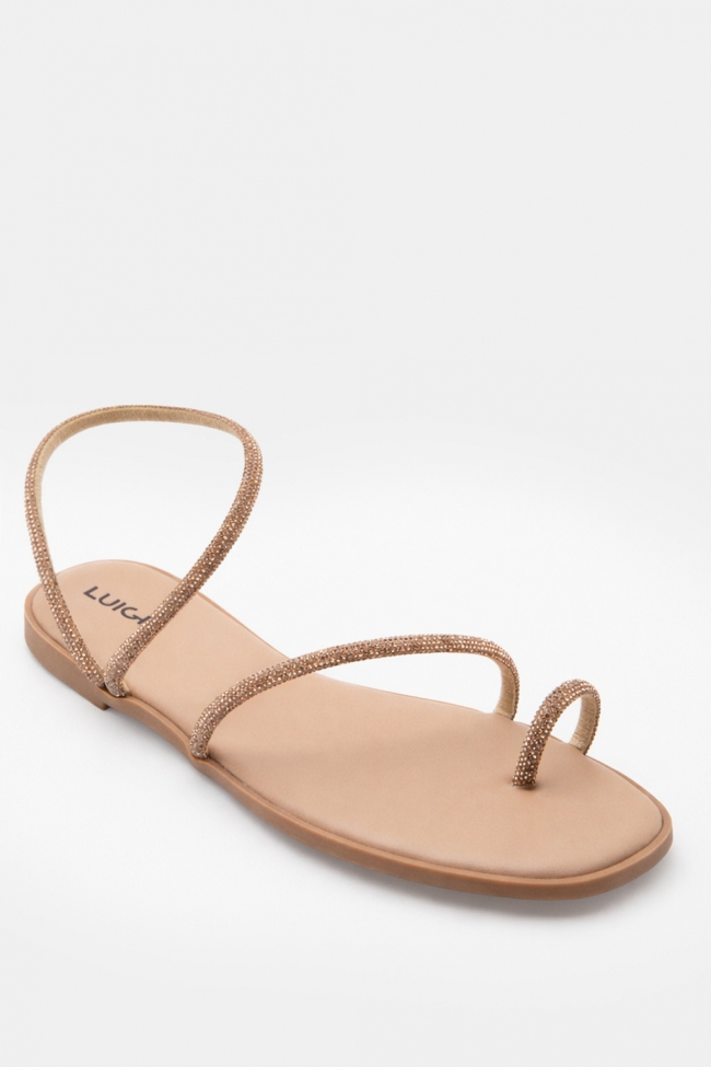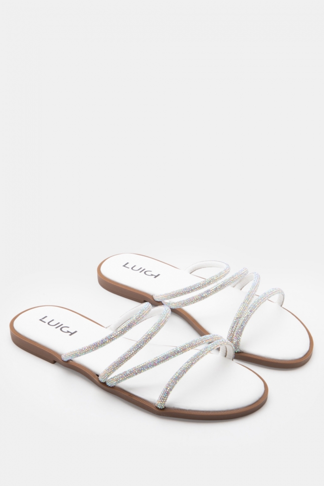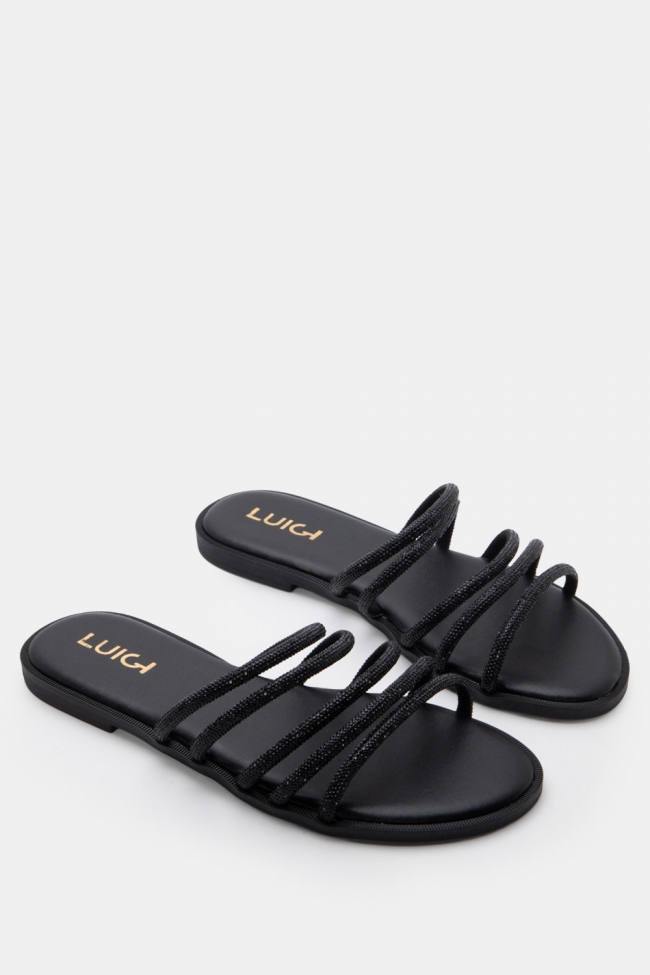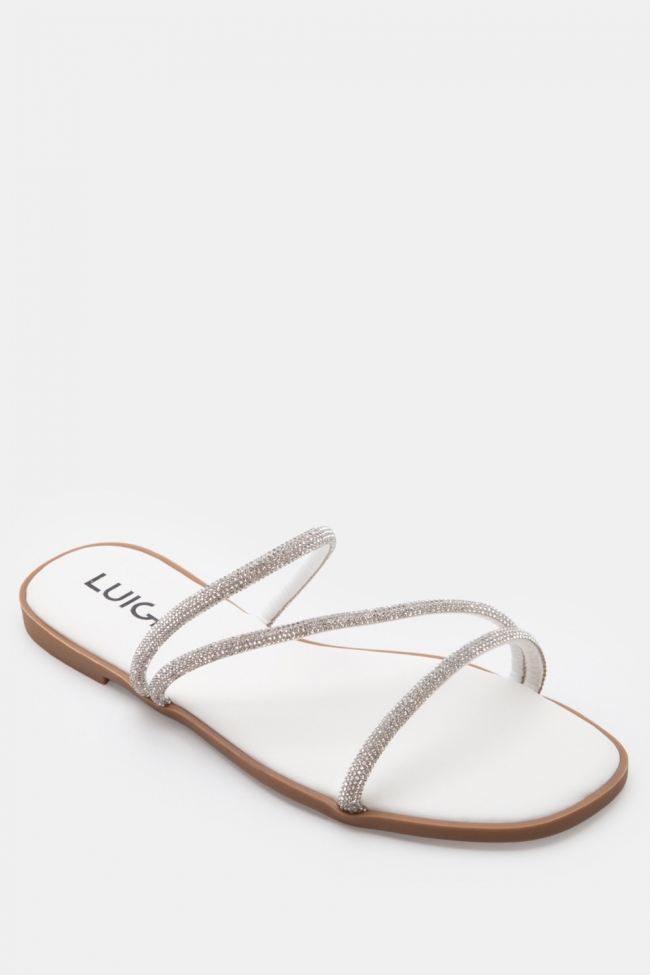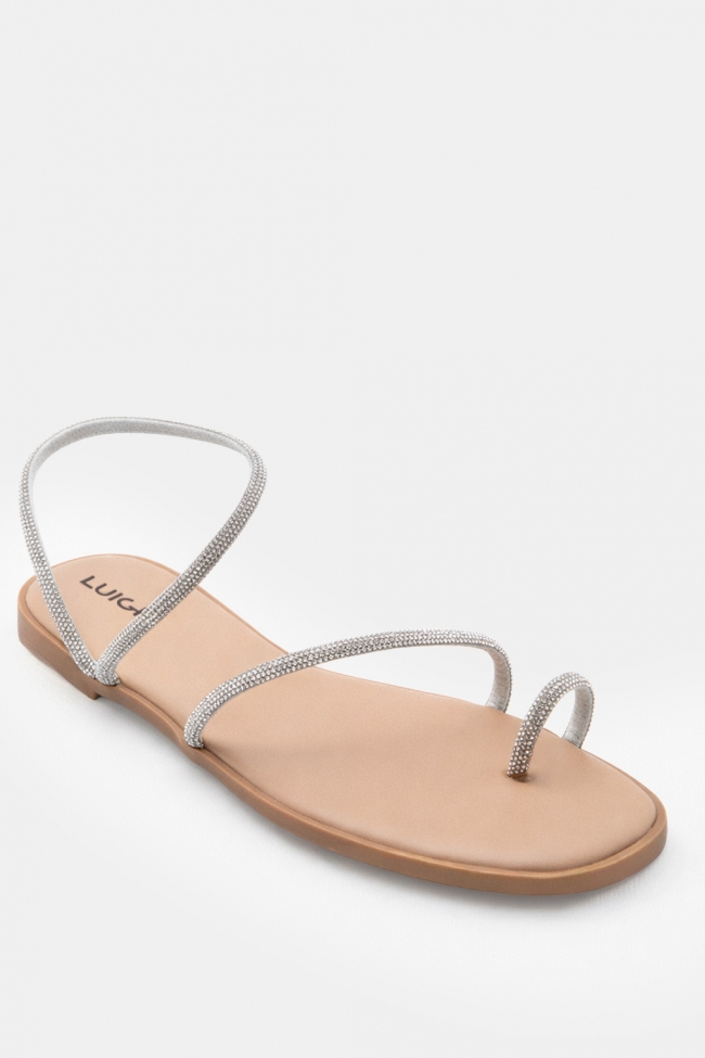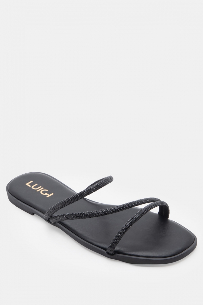 LUIGI DESIGN- Sandali Flat con Cinturino Obliquo e Strass