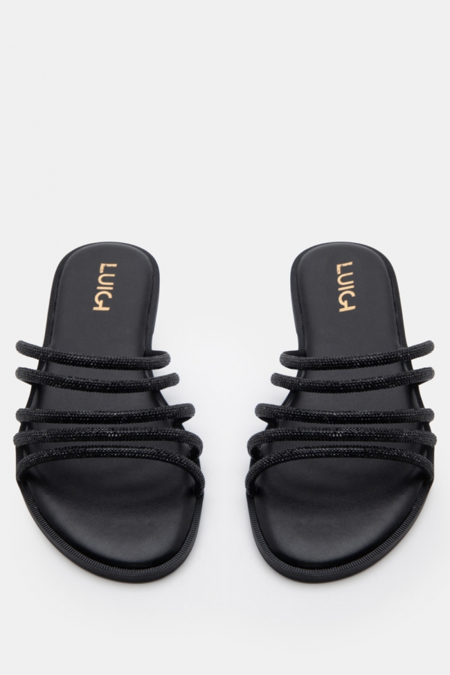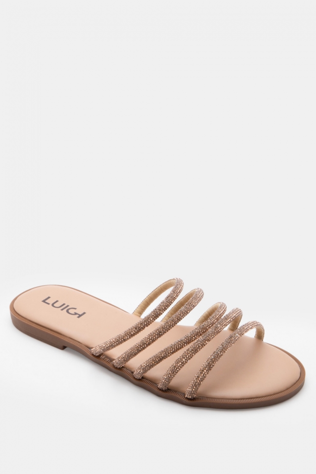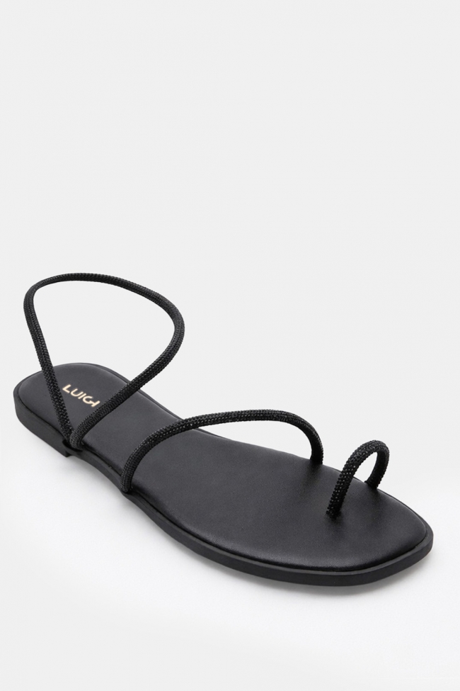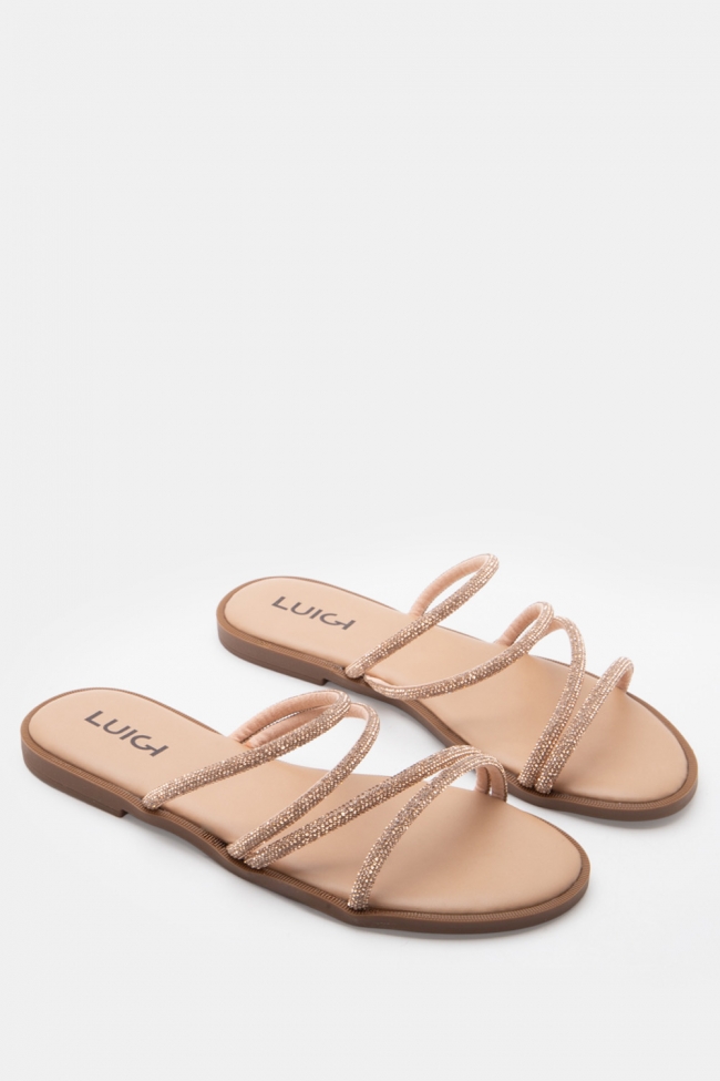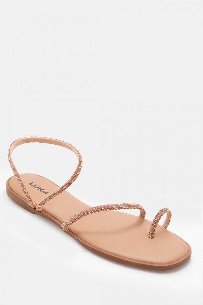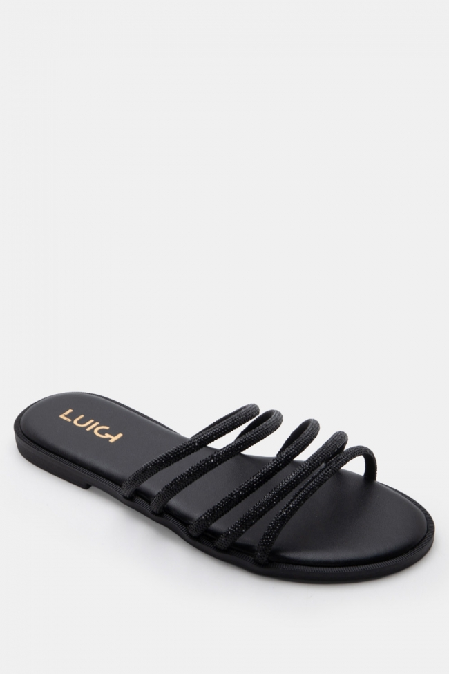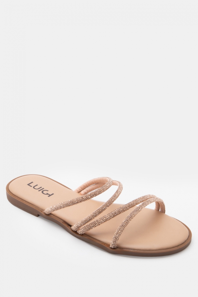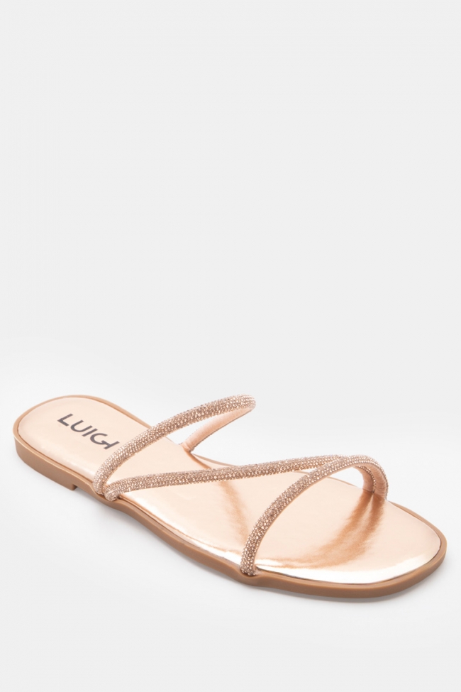 LUIGI DESIGN- Sandali Flat con Cinturino Obliquo e Strass
