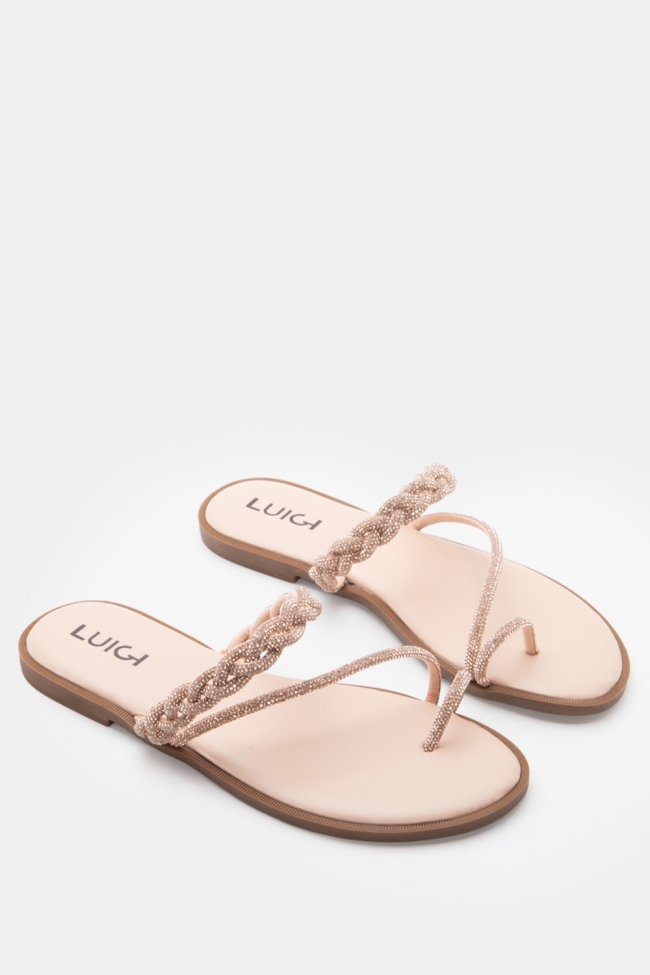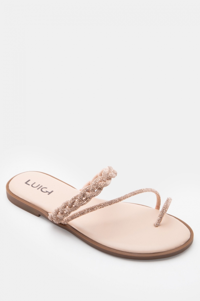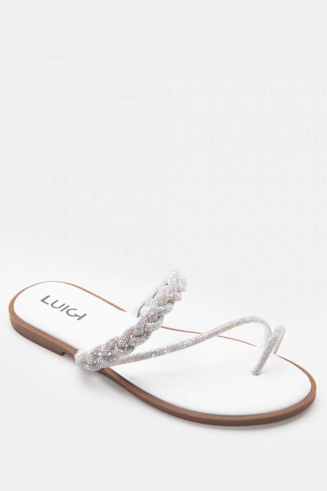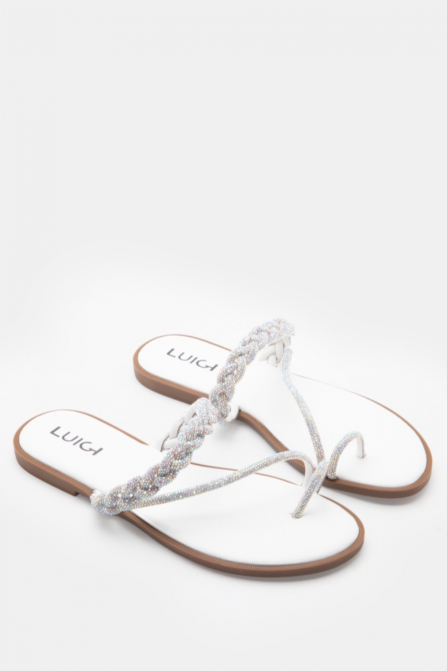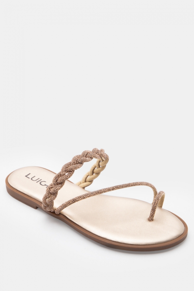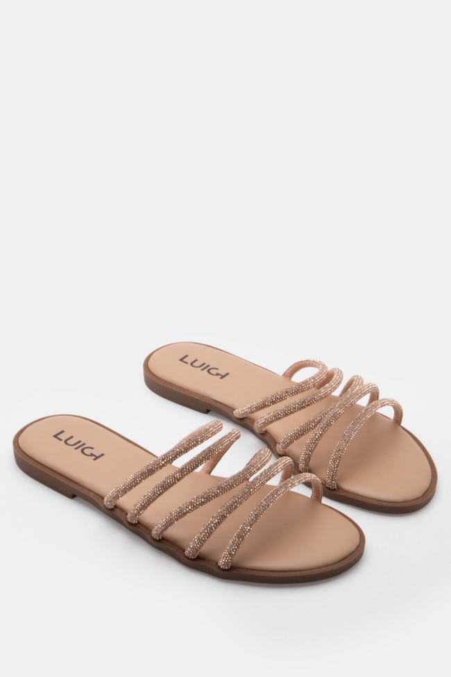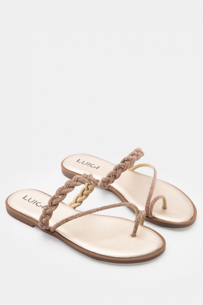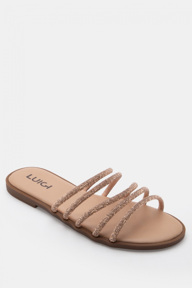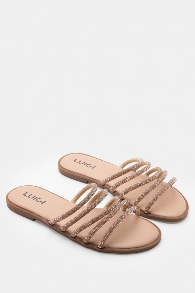 LUIGI DESIGN- Sandali Flat con Cinturino Obliquo e Strass