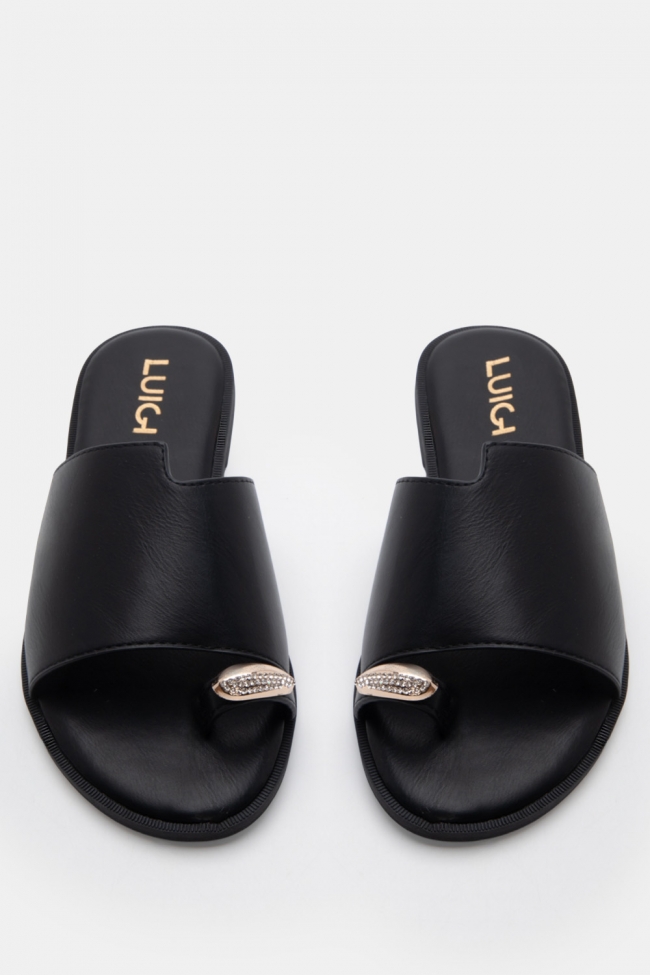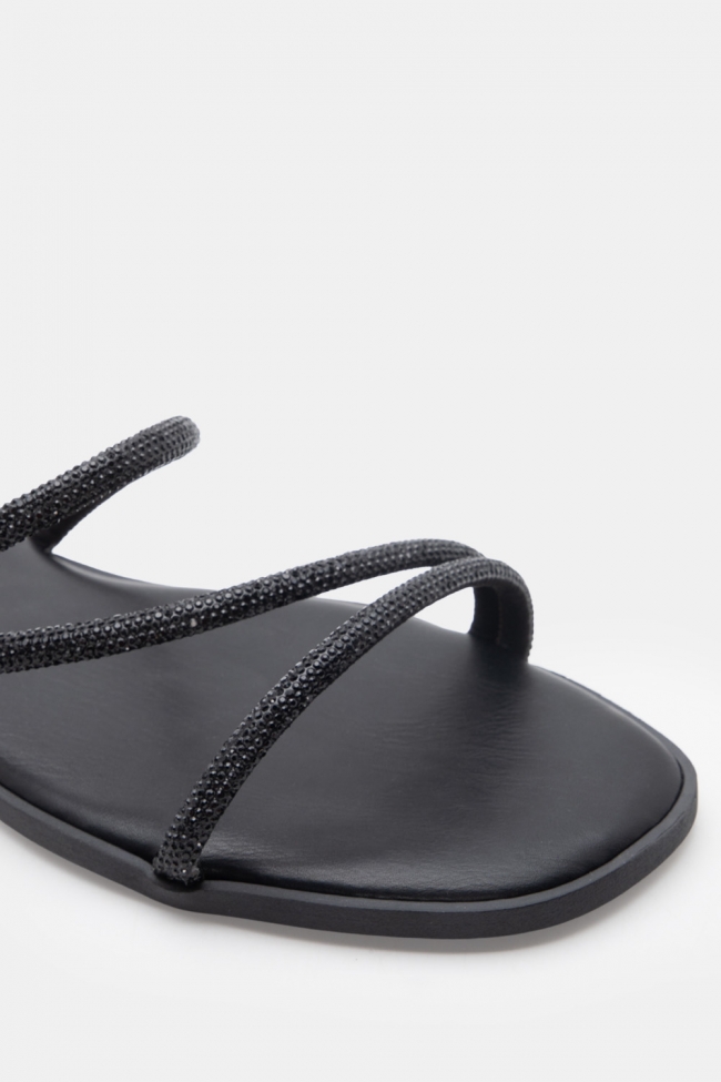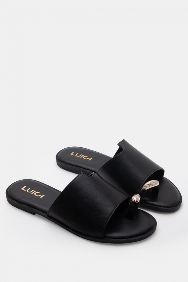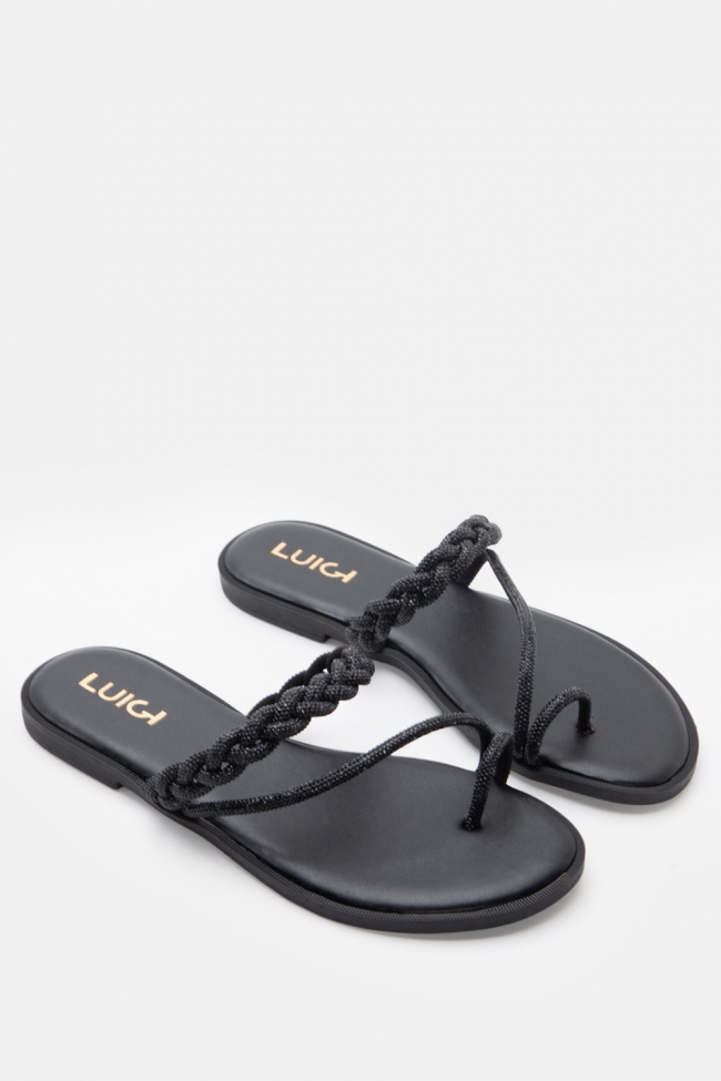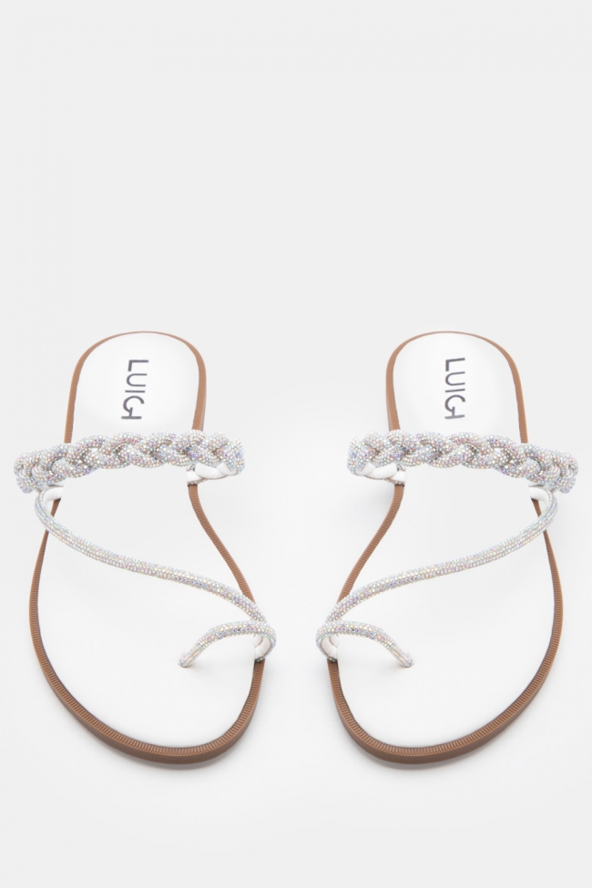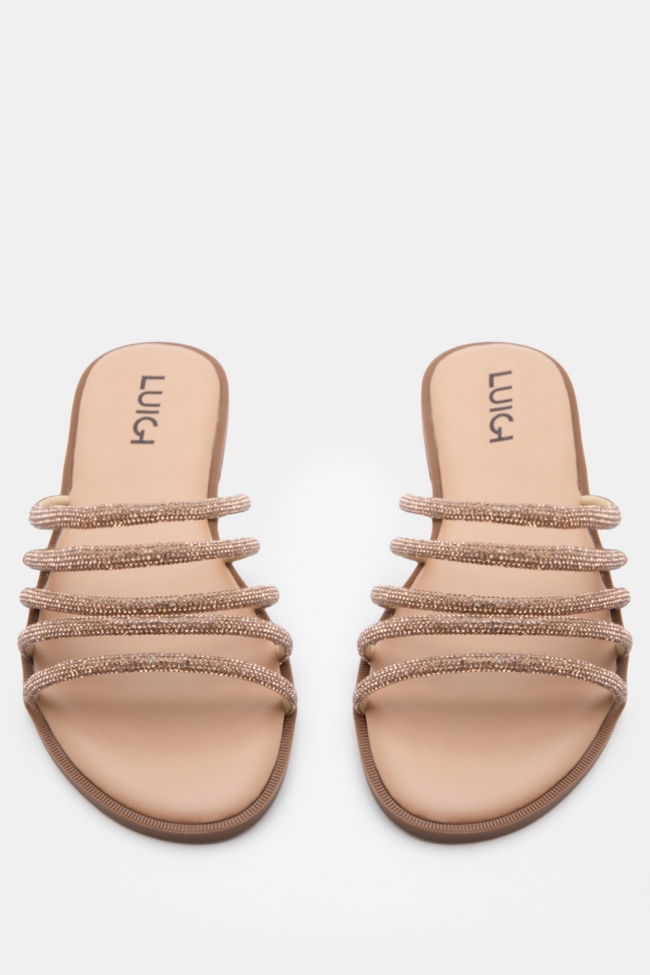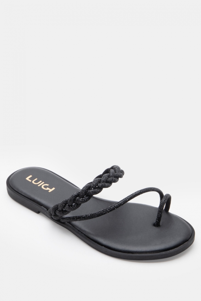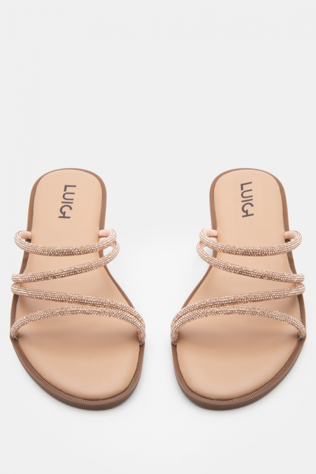 LUIGI DESIGN- Sandali Flat con Cinturino Obliquo e Strass