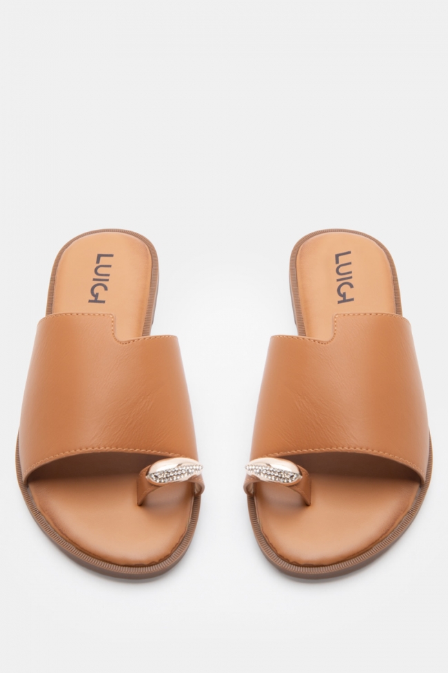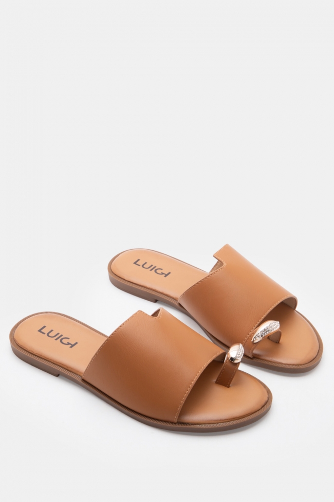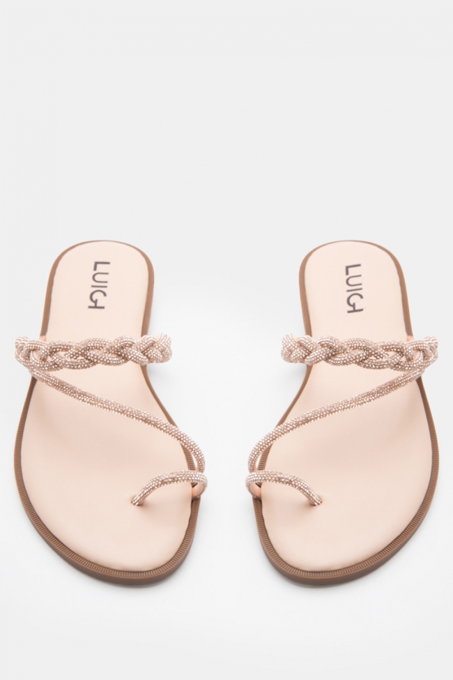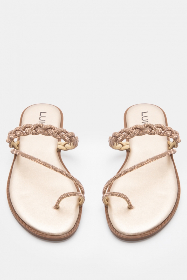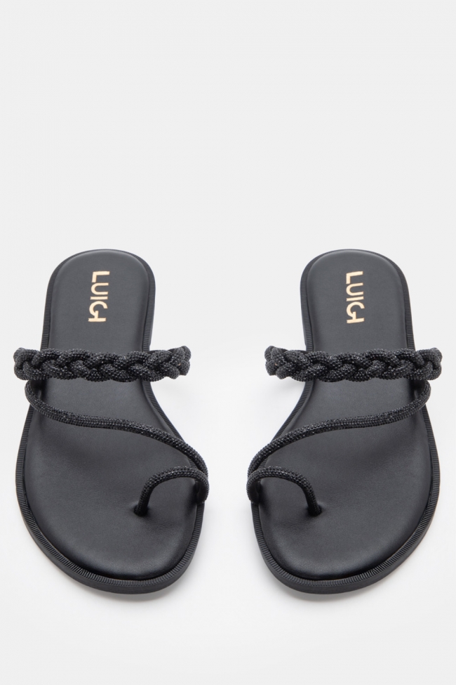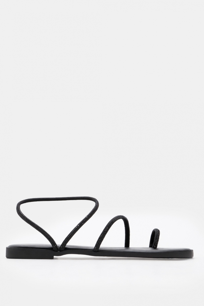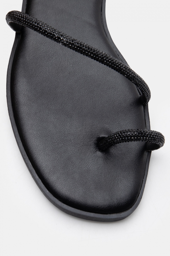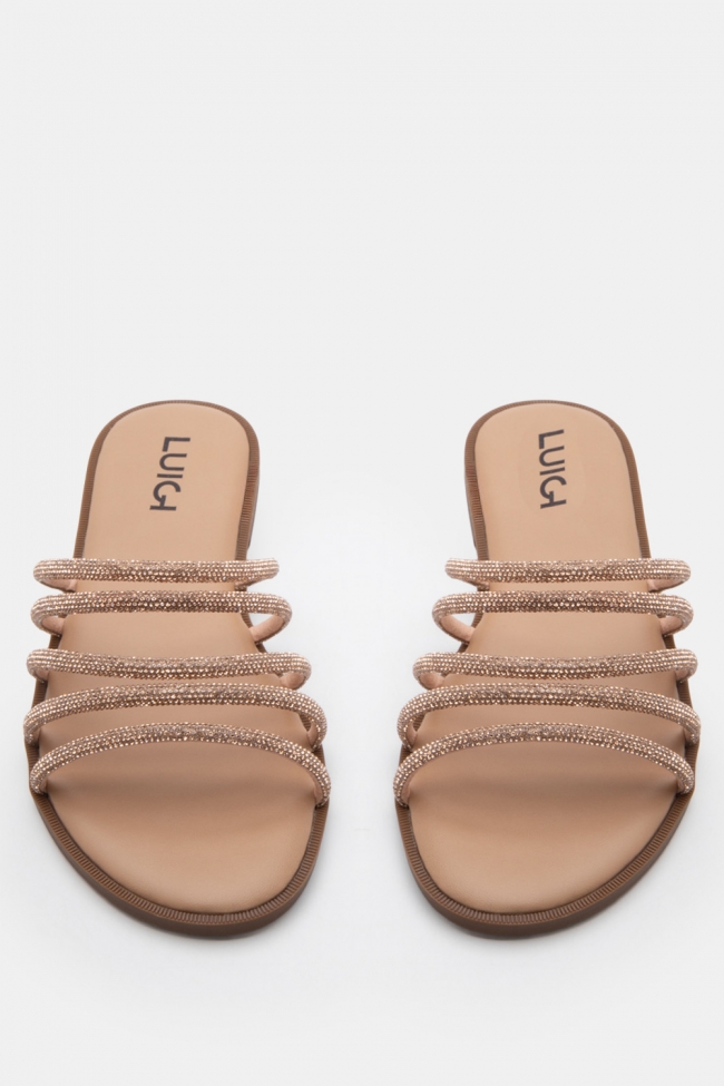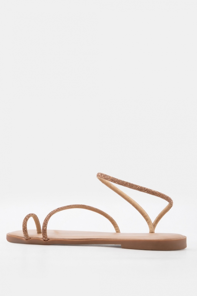 LUIGI DESIGN- Sandali Flat con Cinturino Obliquo e Strass