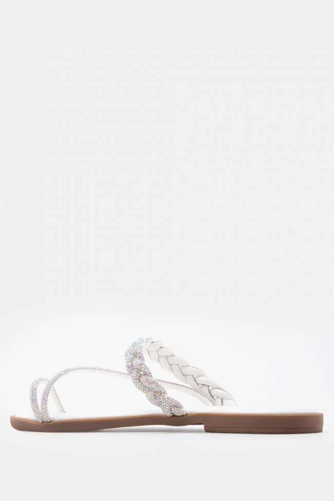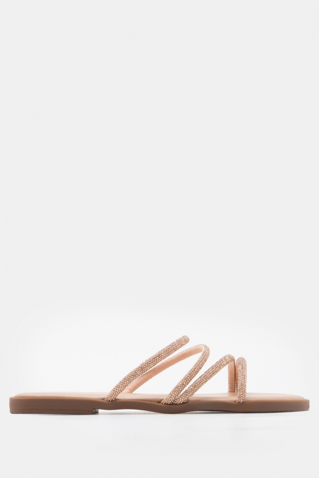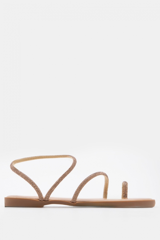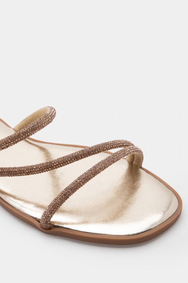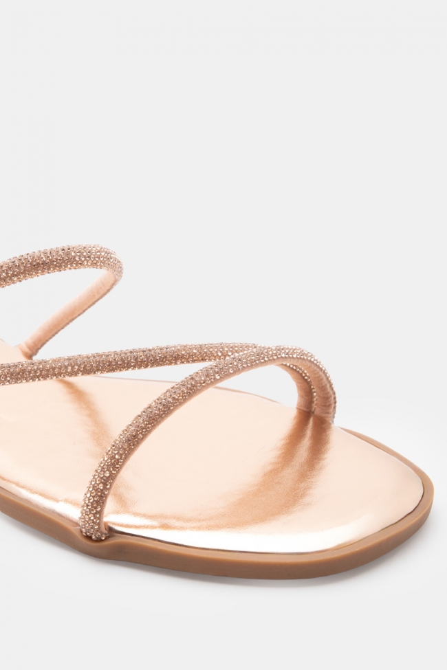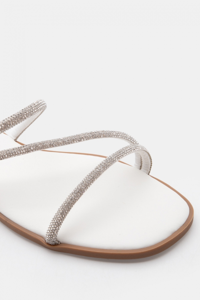 - Sandali piatti con strass: Ideali per ragazze che non indossano tacchi ma desiderano quel tocco extra glam! Indossali con abiti leggeri, bermuda, ma anche con pareo e costume per look da spiaggia super stilosi. Sì, il glam va ovunque!
