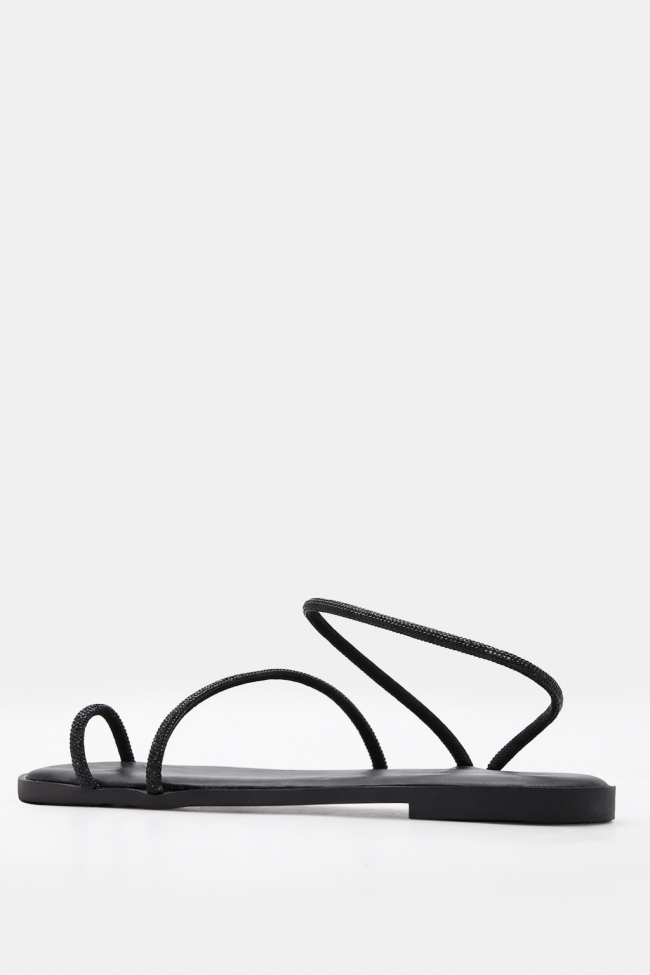 - Non hai bisogno di nient\'altro: Un outfit base + sandali con strass = total look con carattere.