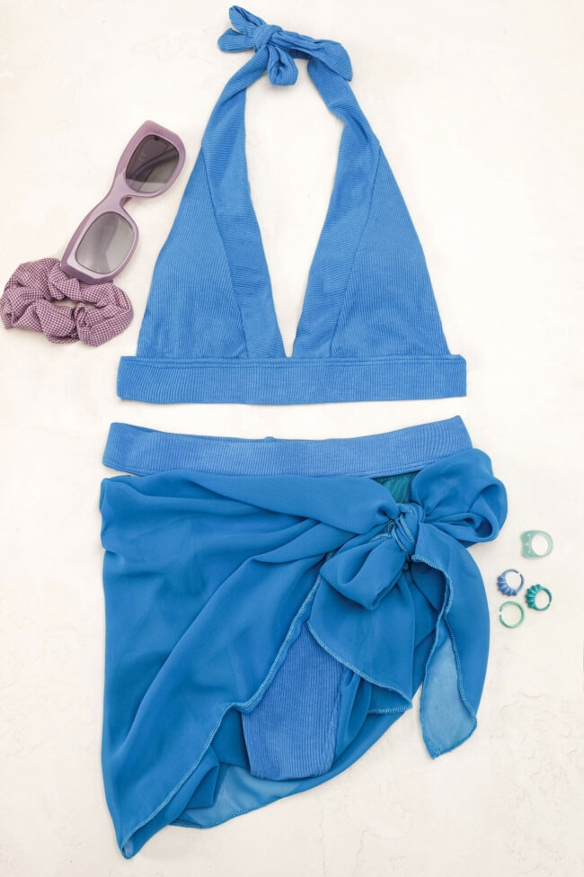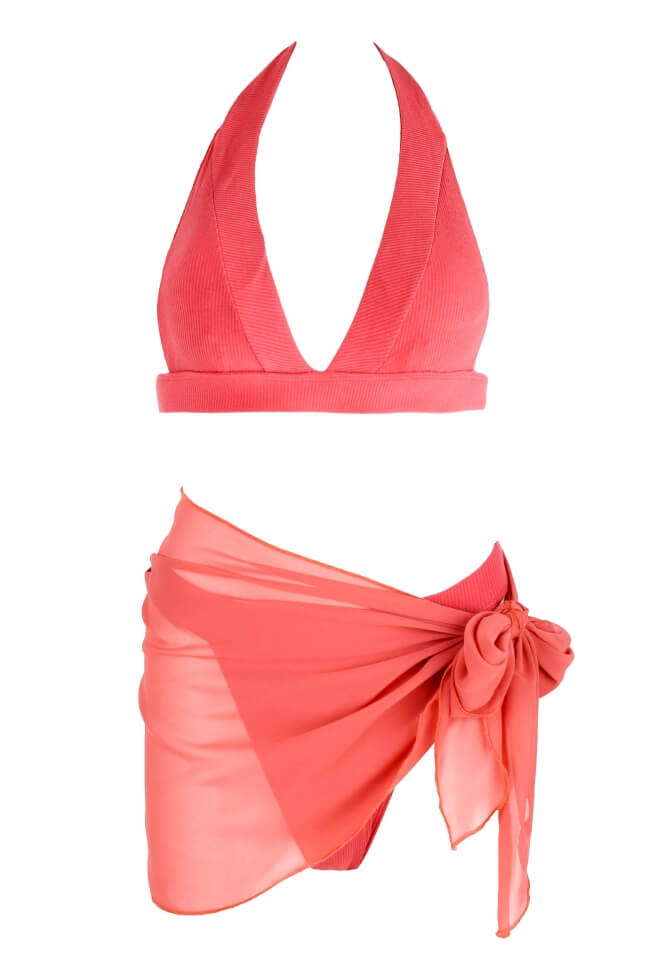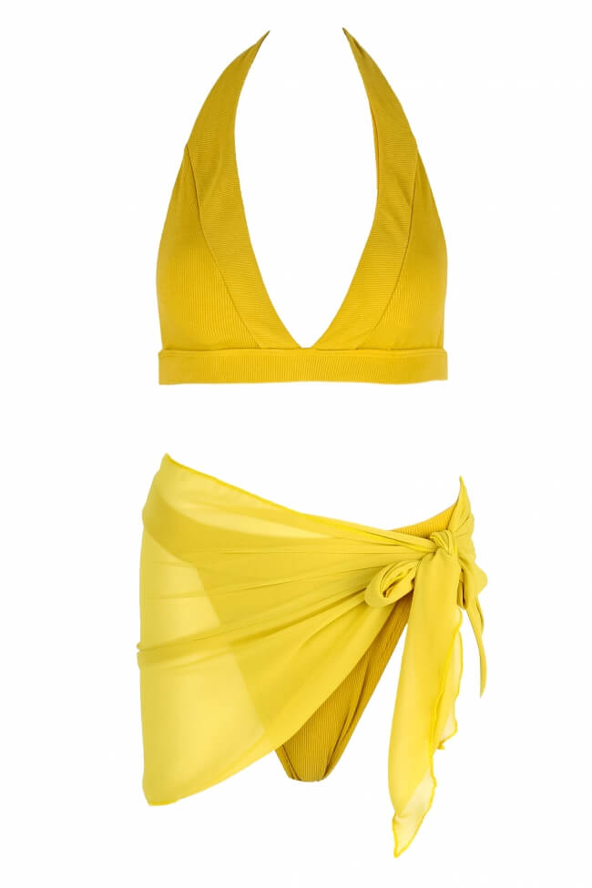 Set costum de baie bikini cu talie înaltă și pareo