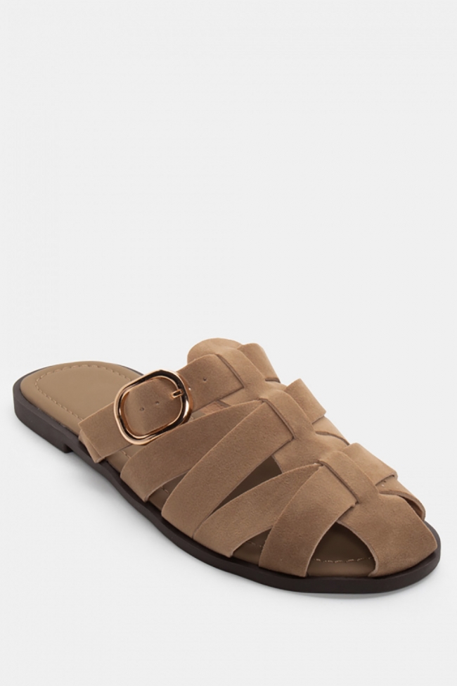 Плоски сандали с изящни каишки и тока