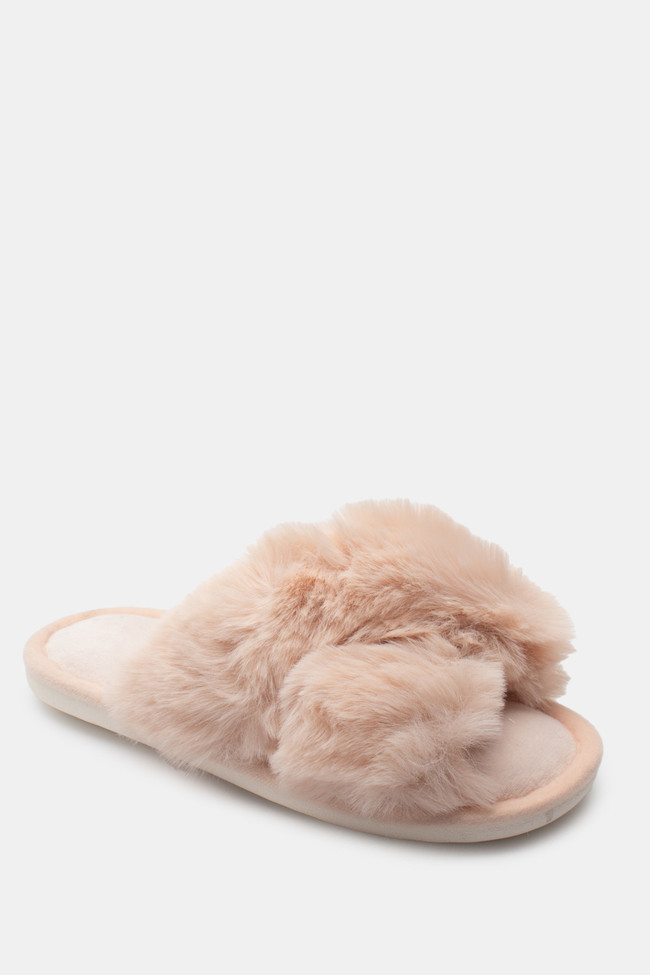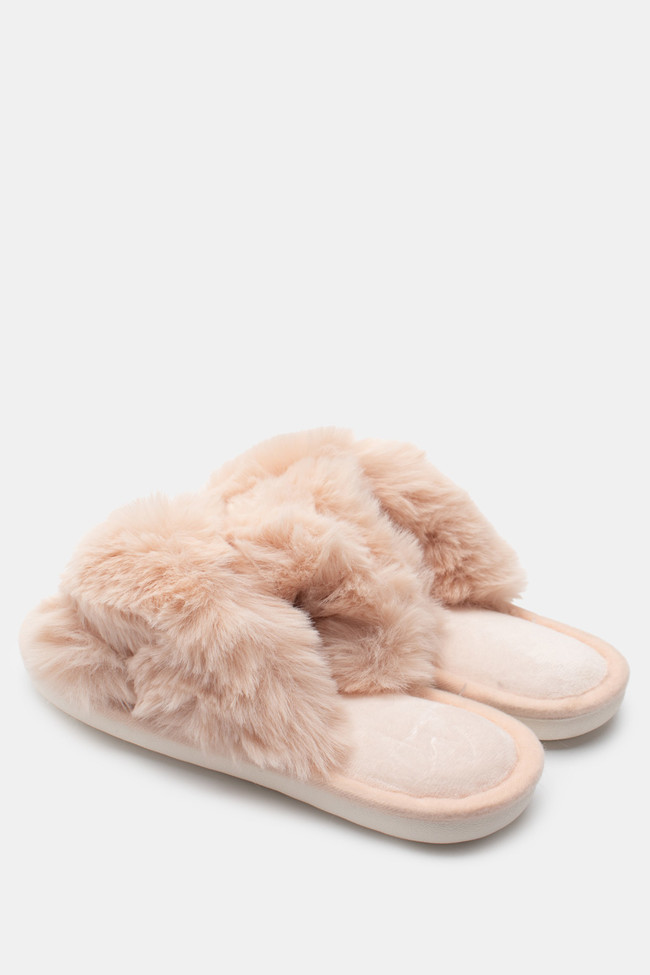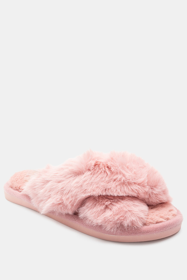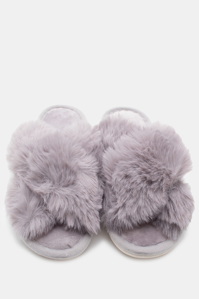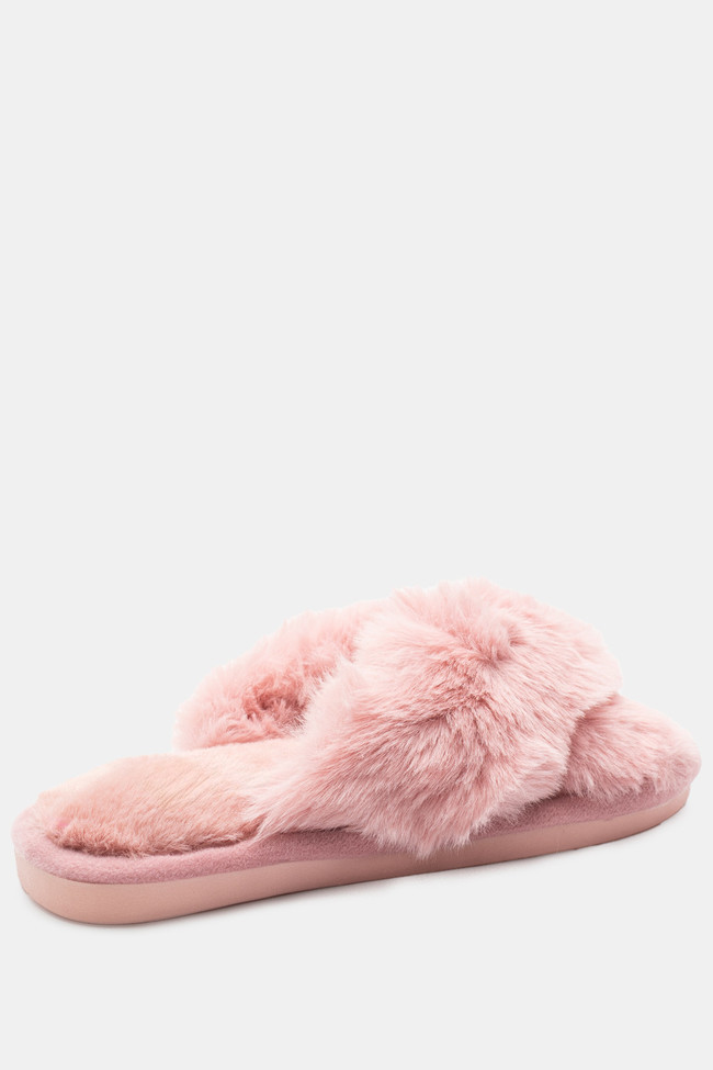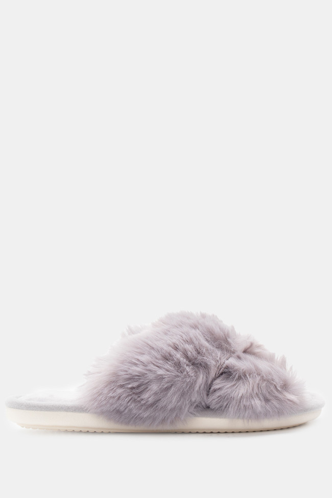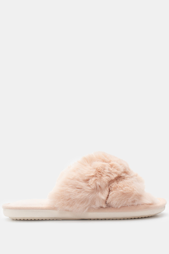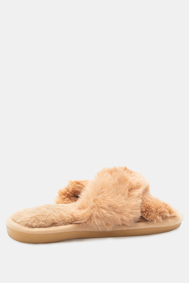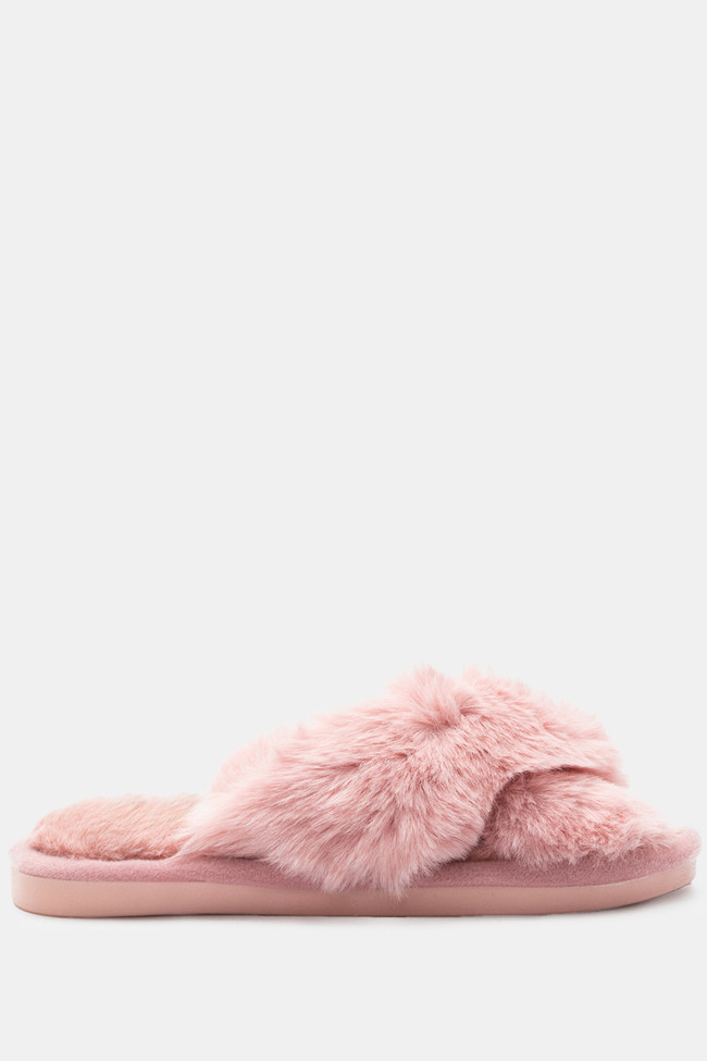 Παντόφλες Γούνινες με Χιαστί Λουράκια