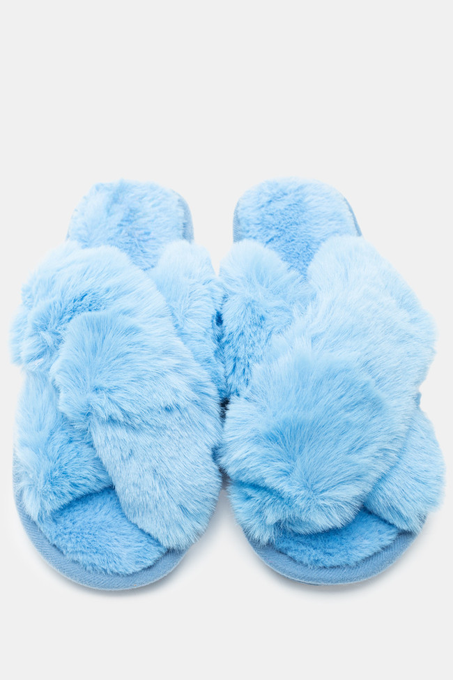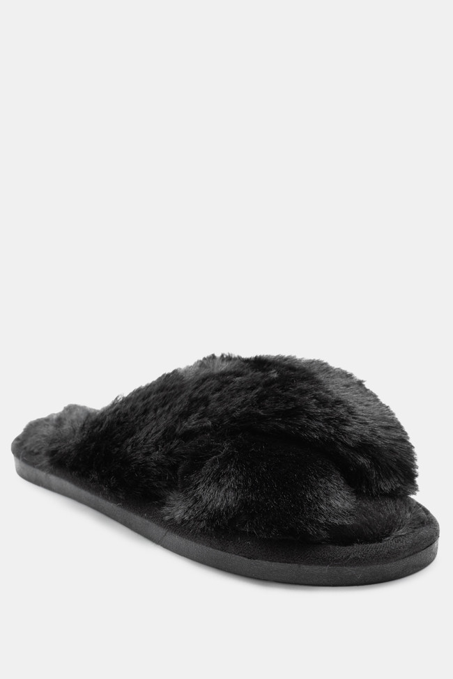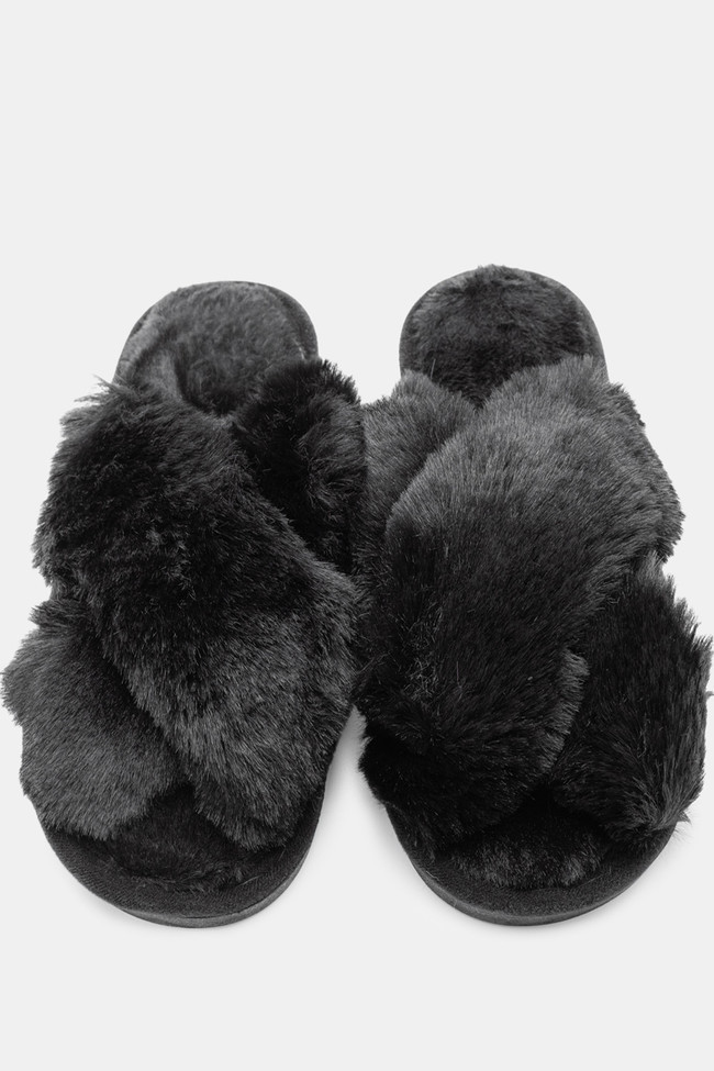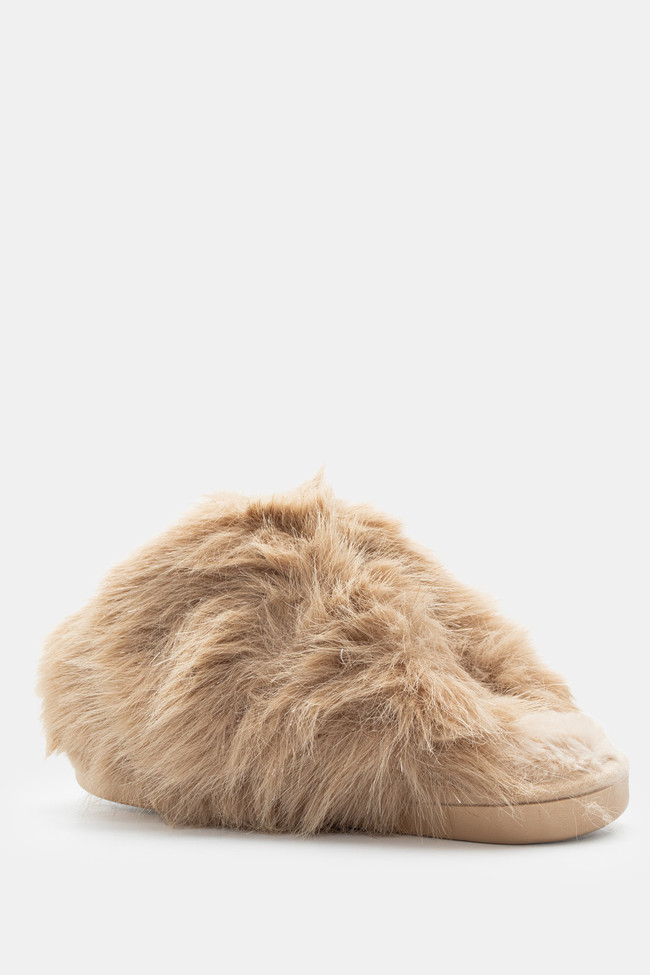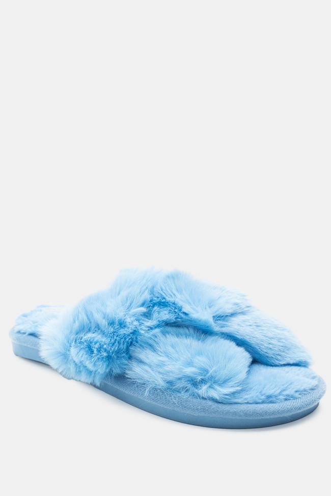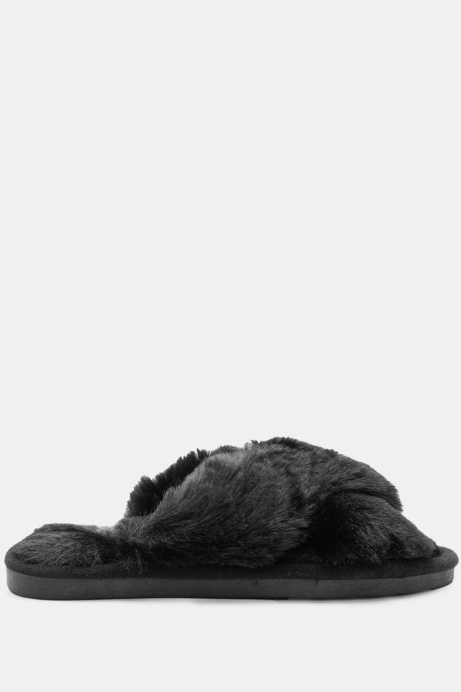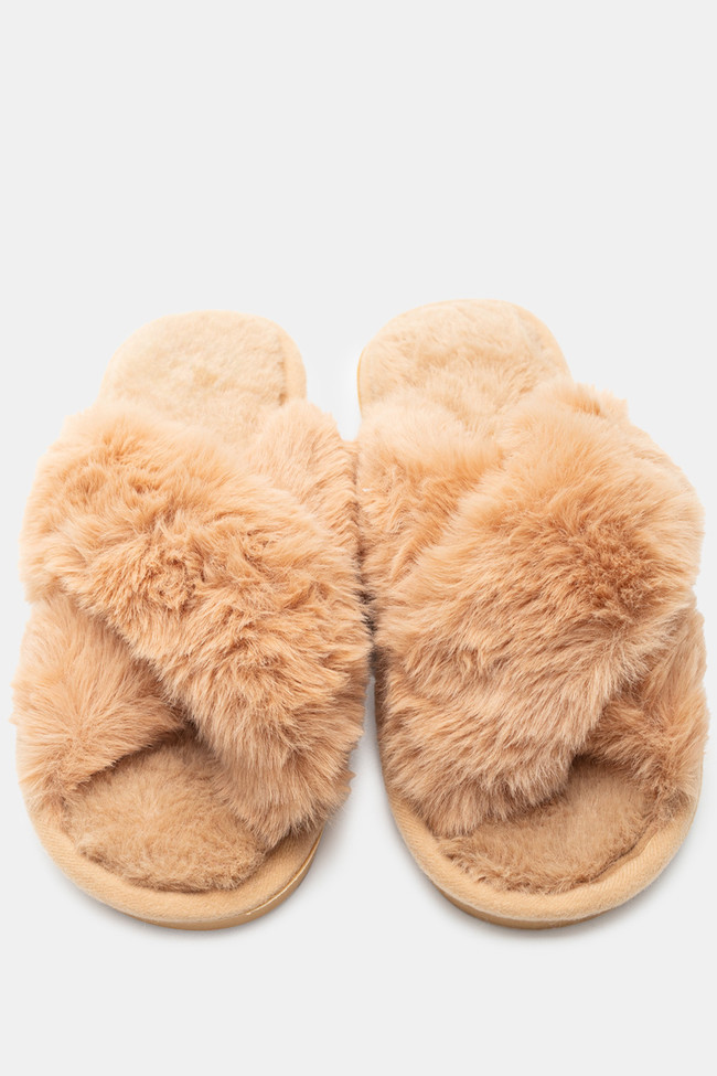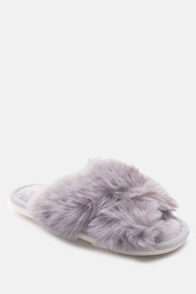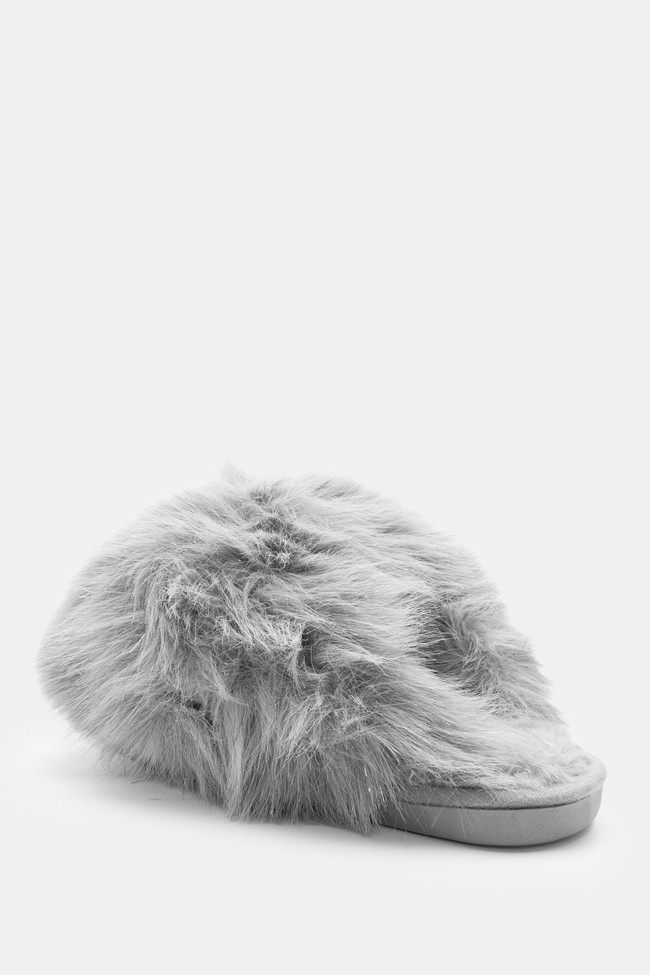 Παντόφλες Γούνινες με Χιαστί Λουράκια