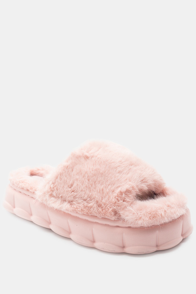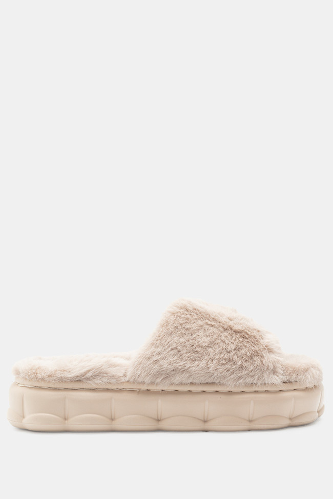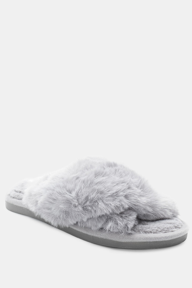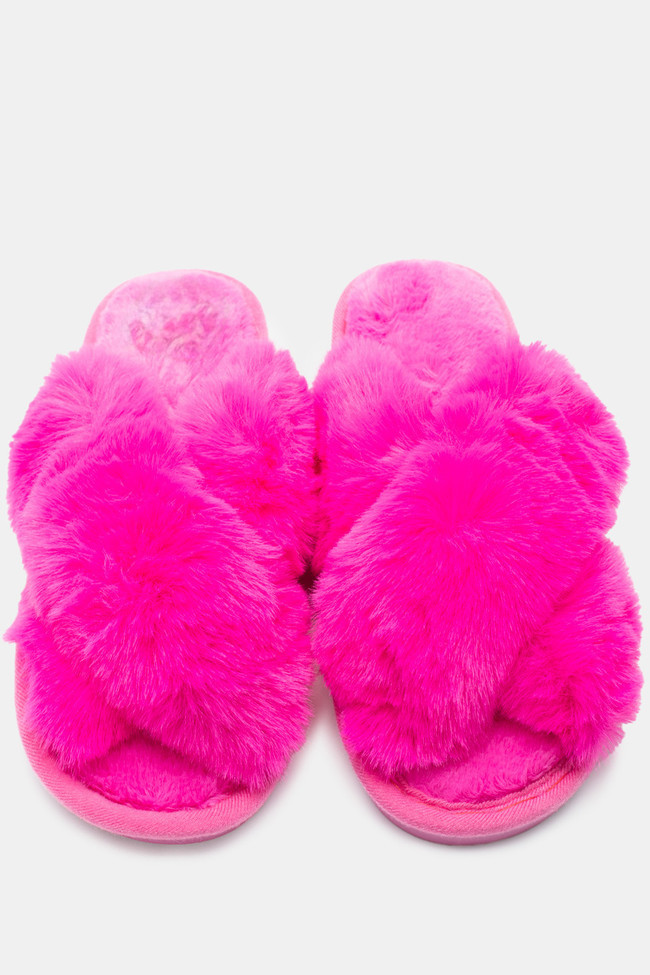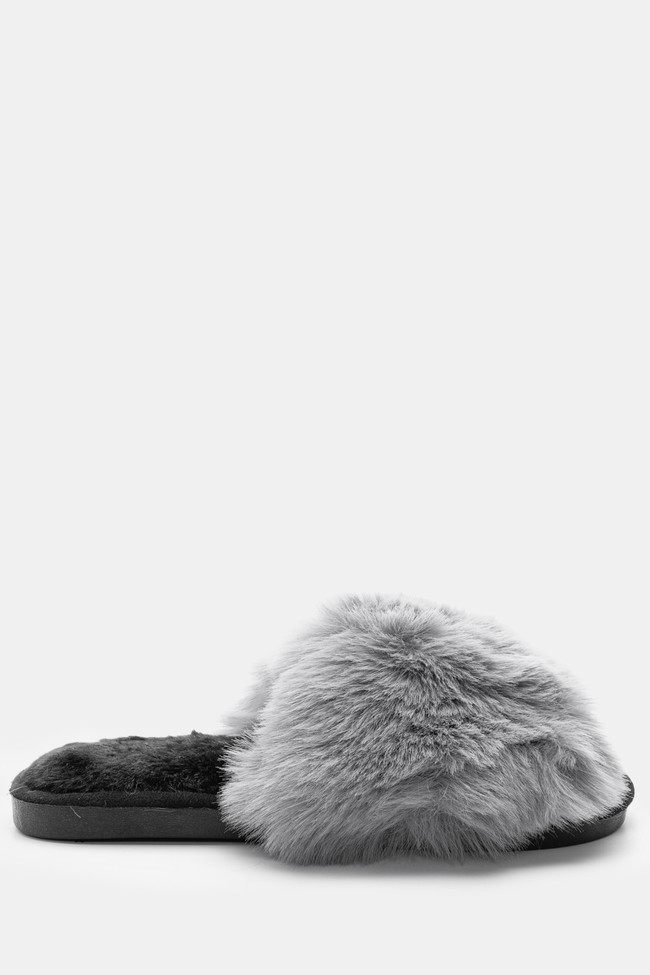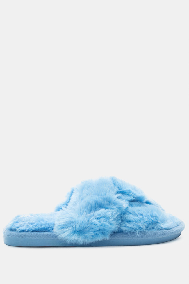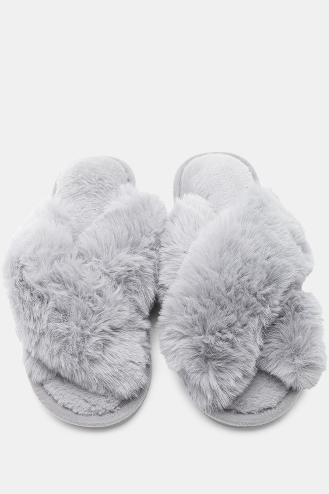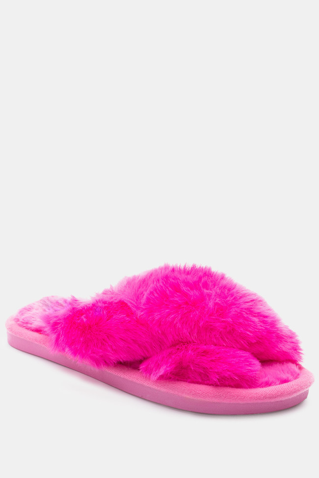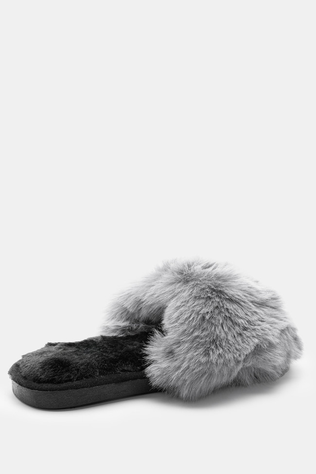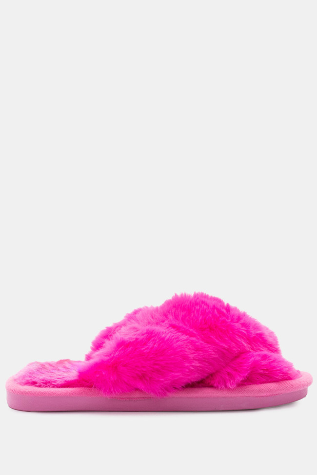 Παντόφλες Γούνινες με Χιαστί Λουράκια