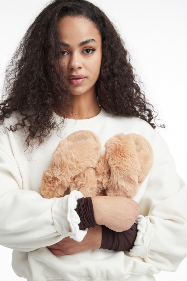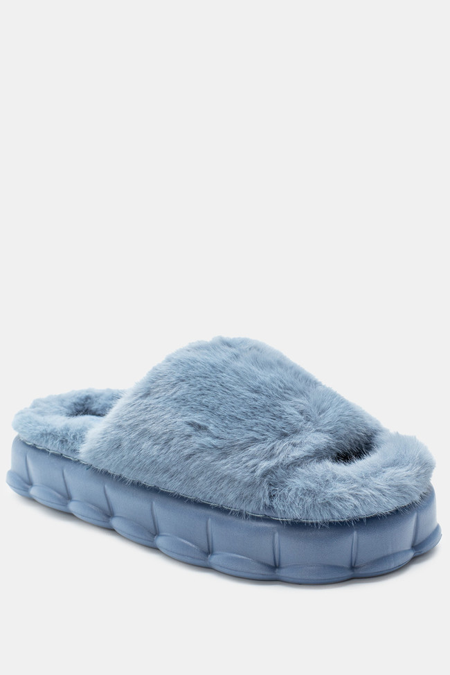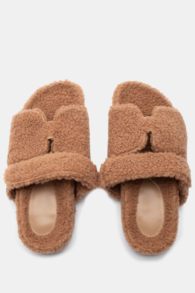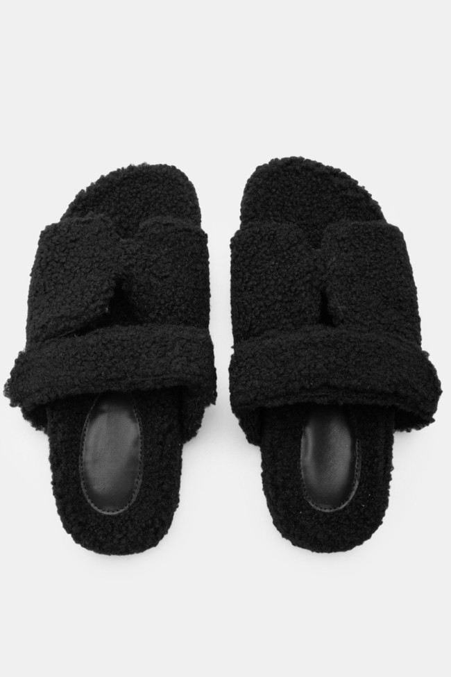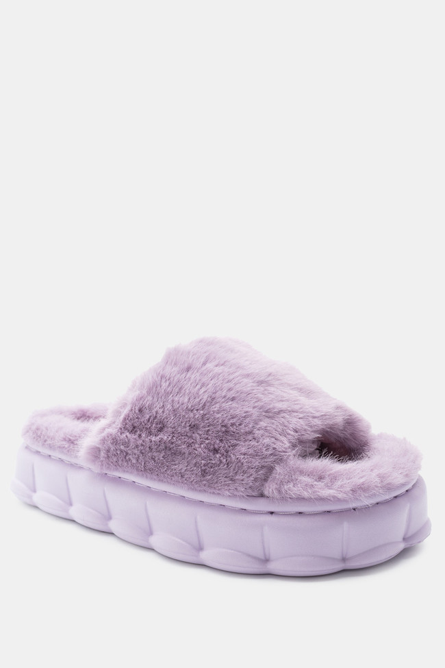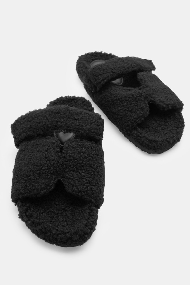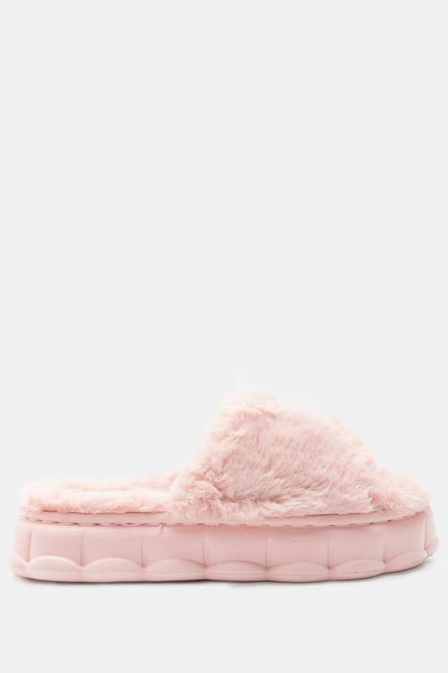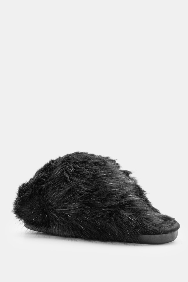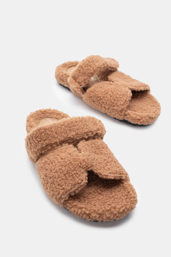 Παντόφλες Γούνινες με Χιαστί Λουράκια