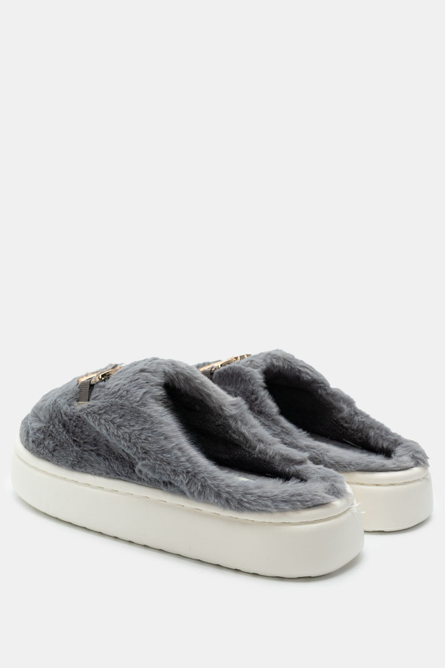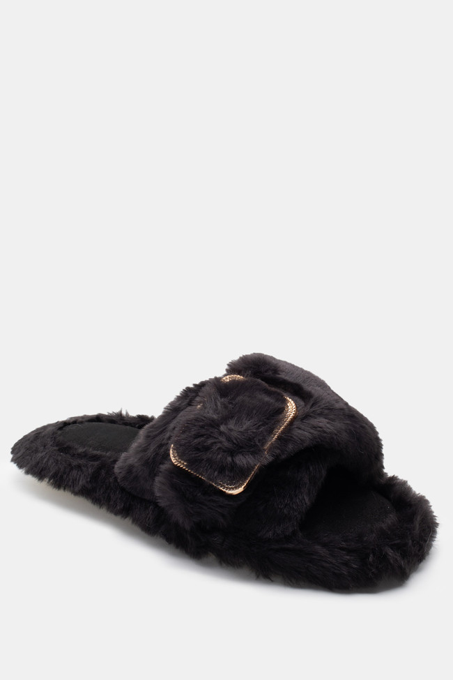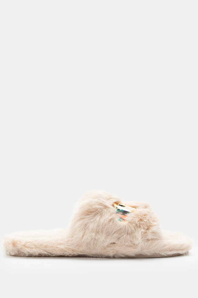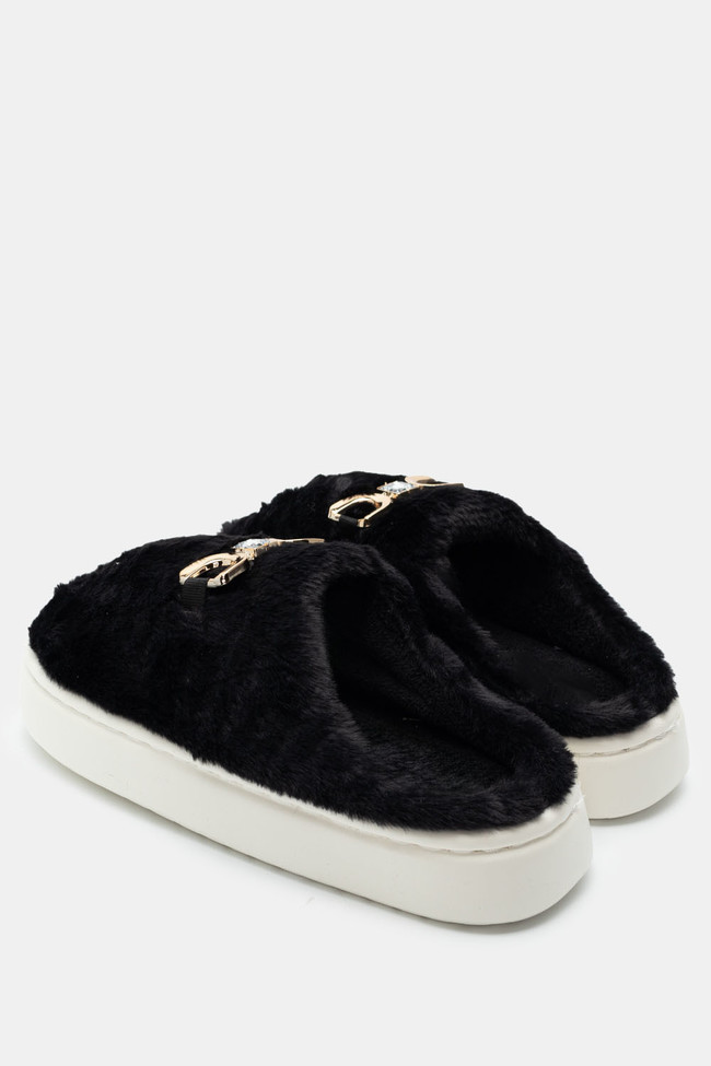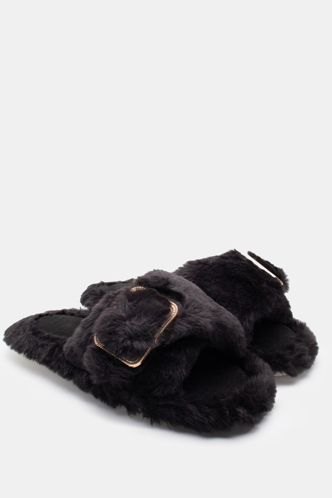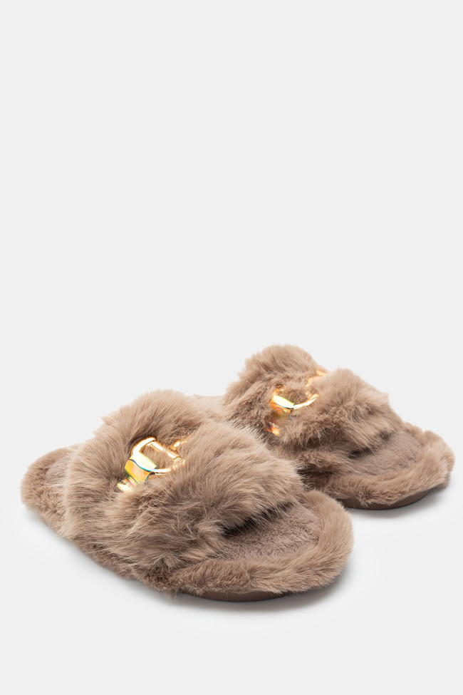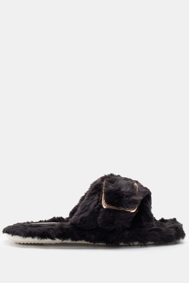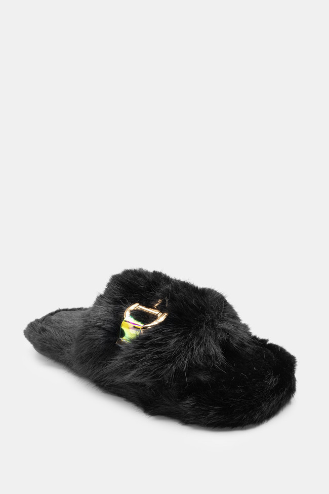 Παντόφλες Γούνινες με Διακοσμητική Αγκράφα