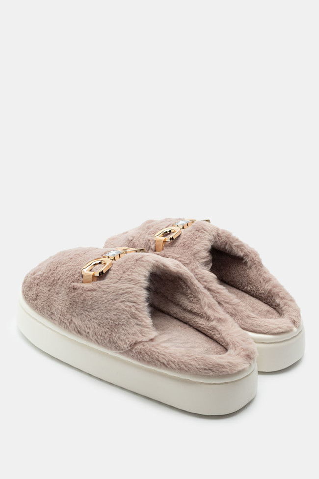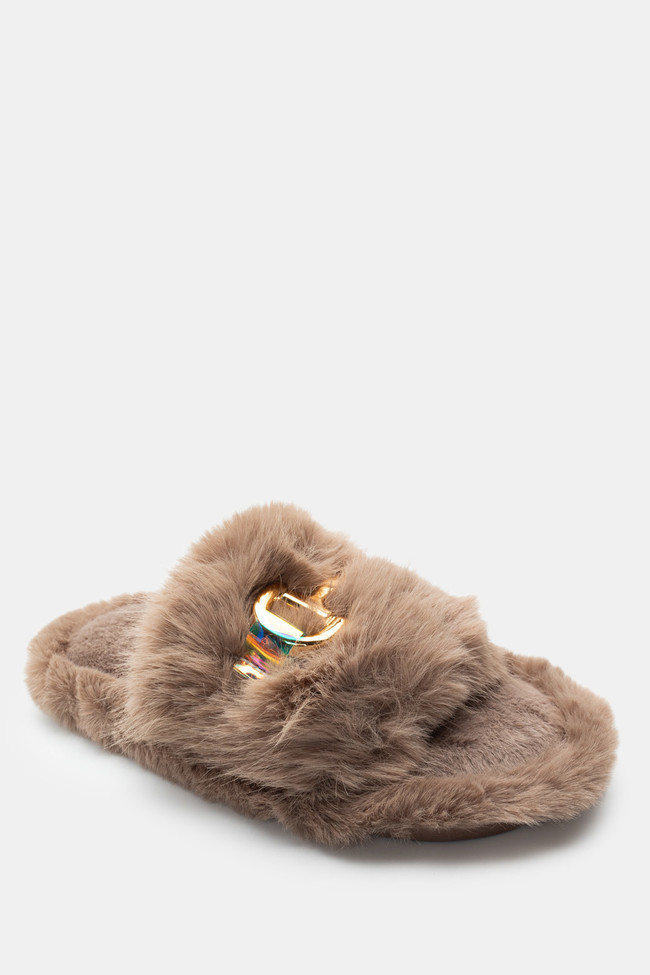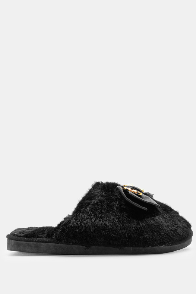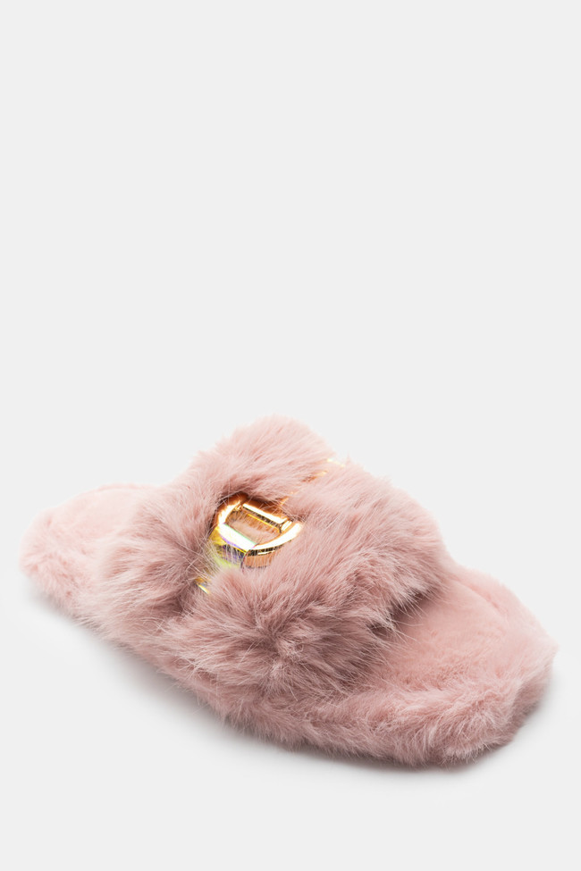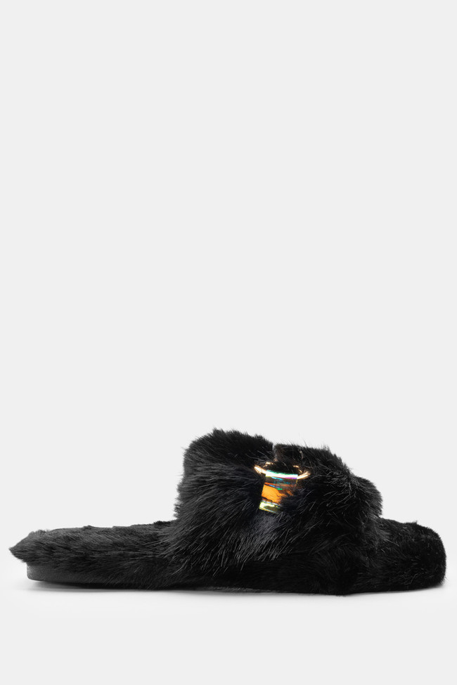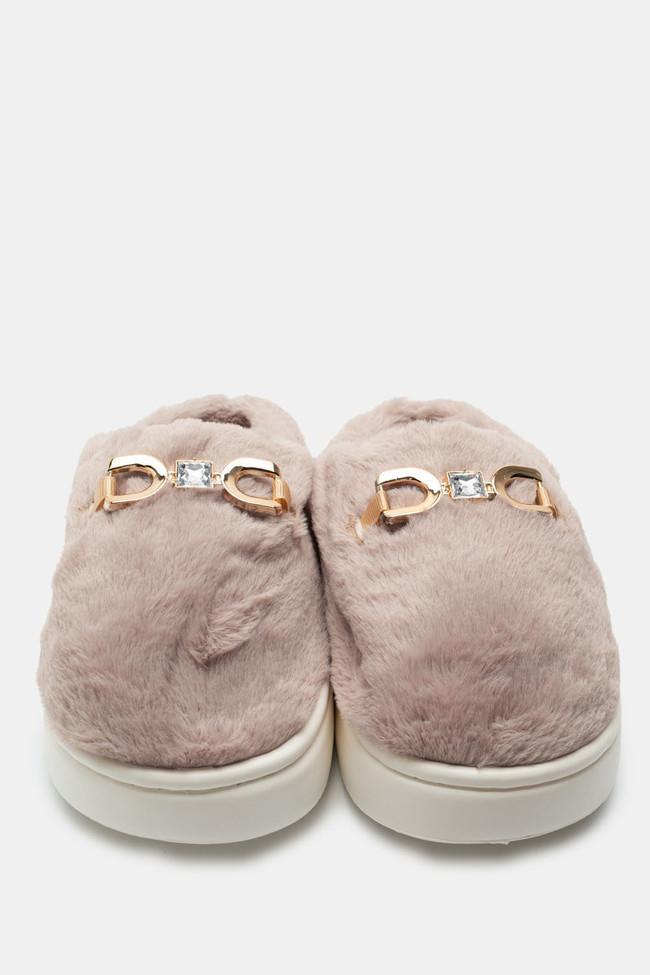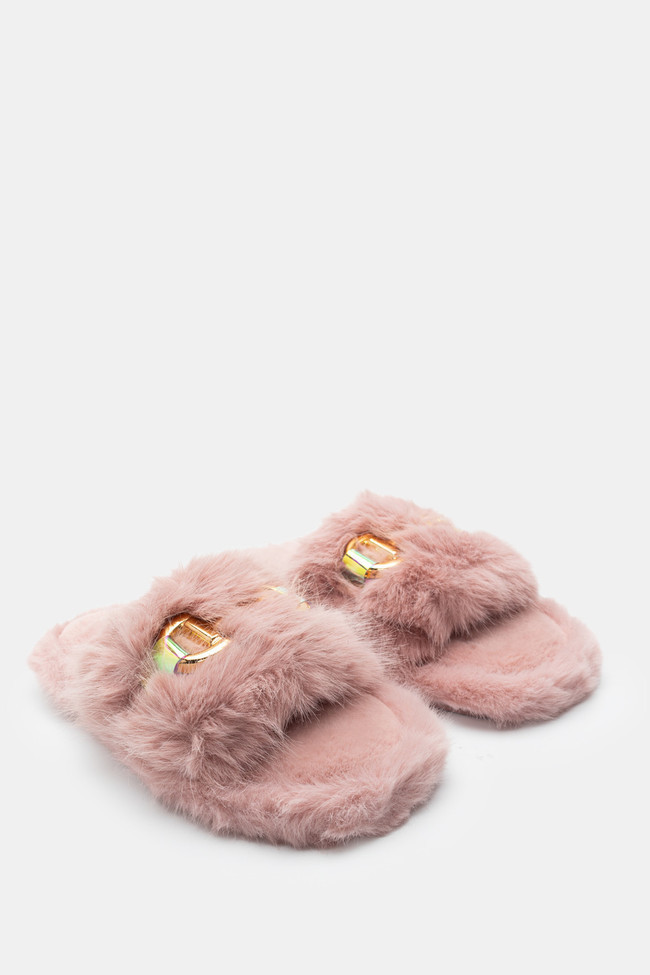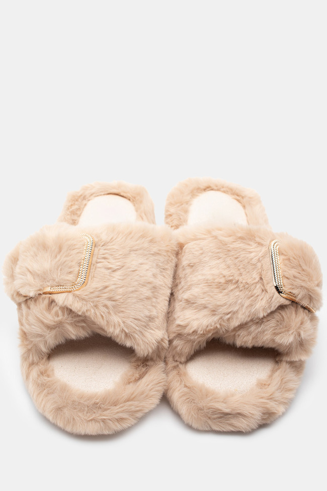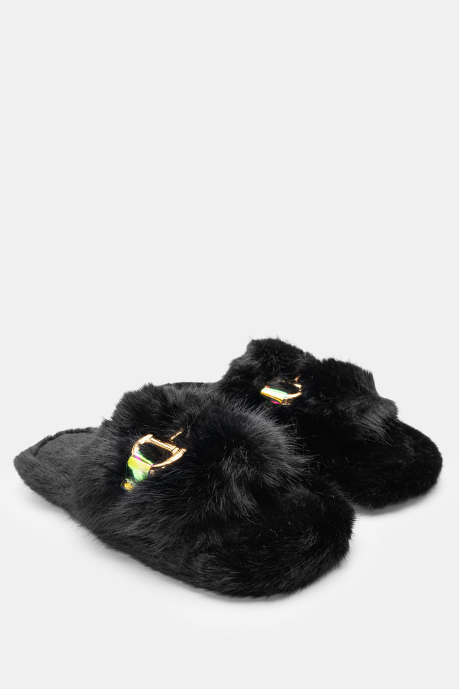 Παντόφλες Γούνινες με Διακοσμητική Αγκράφα