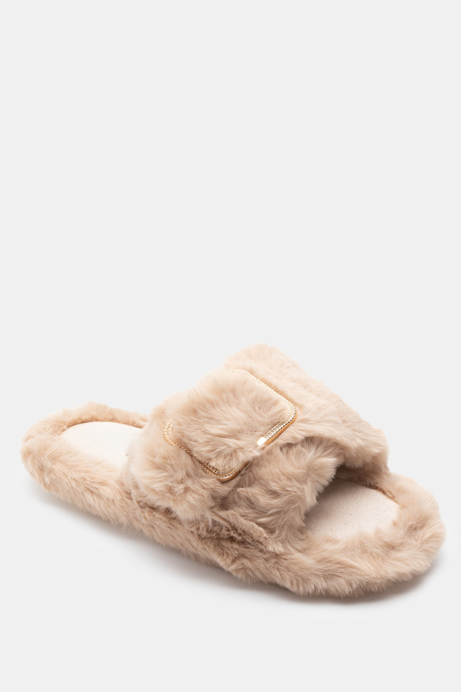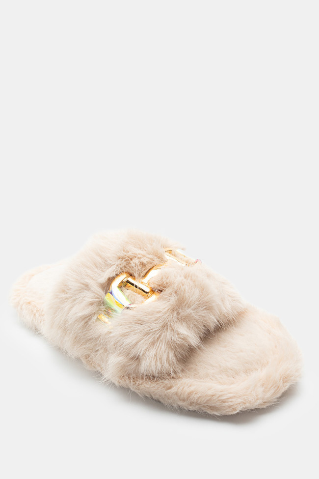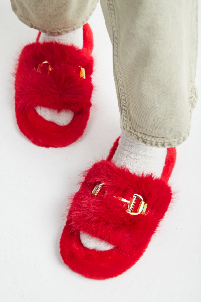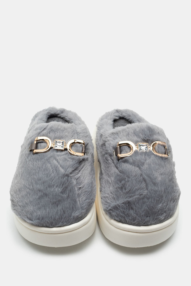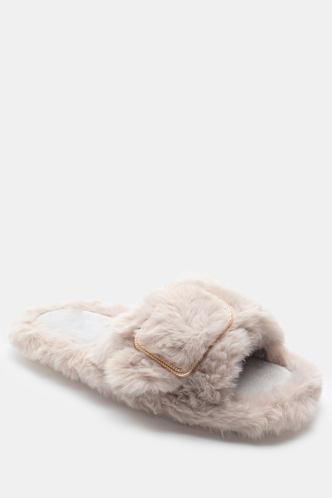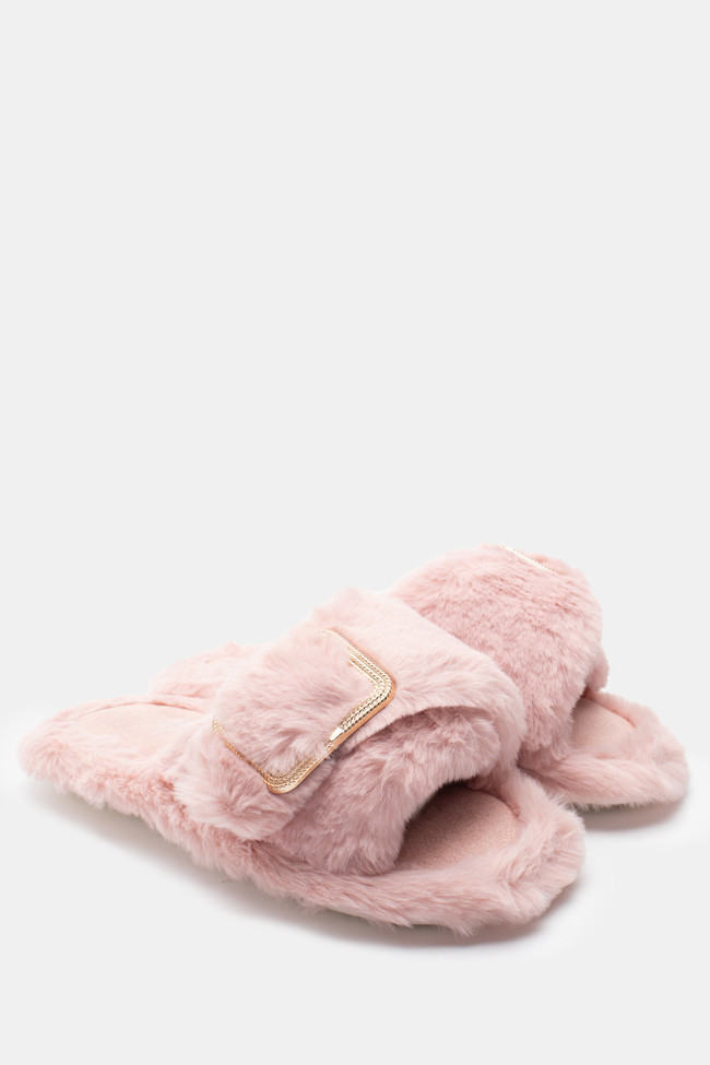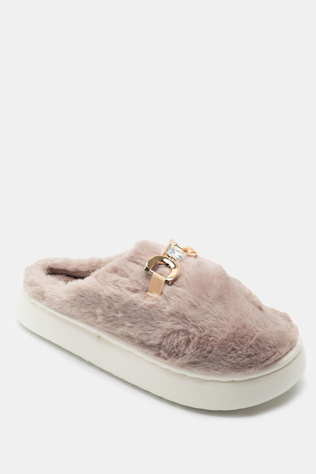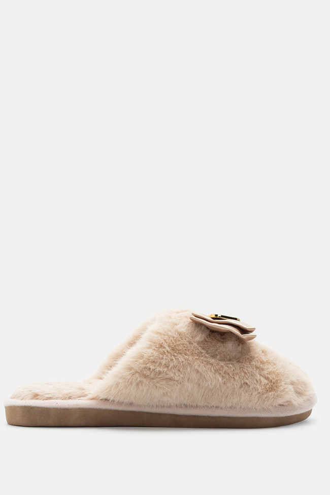 Παντόφλες Γούνινες με Διακοσμητική Αγκράφα