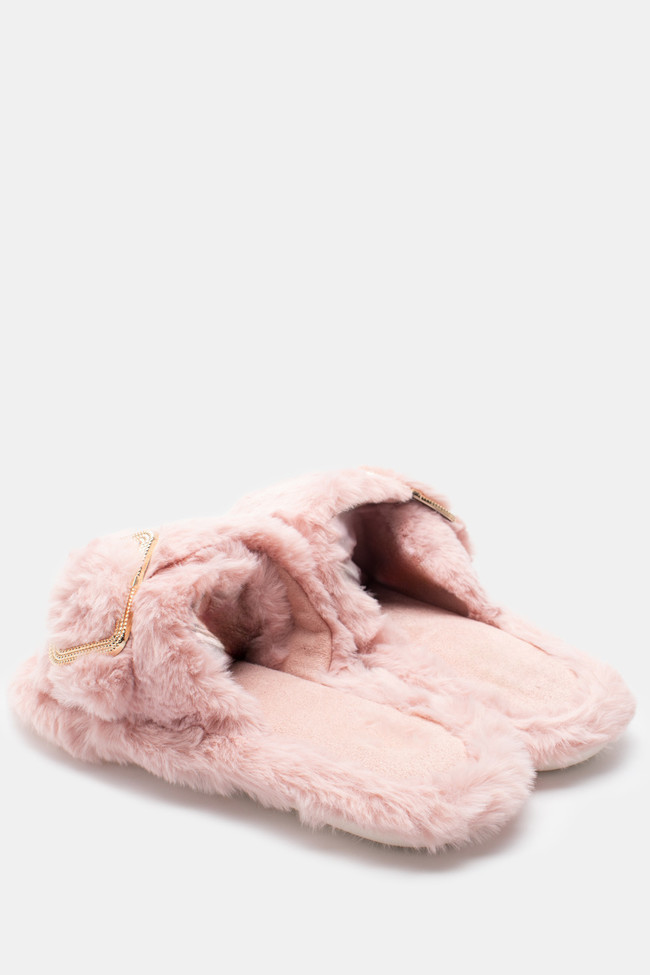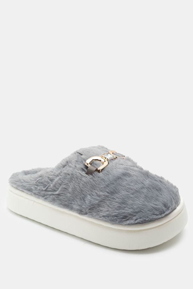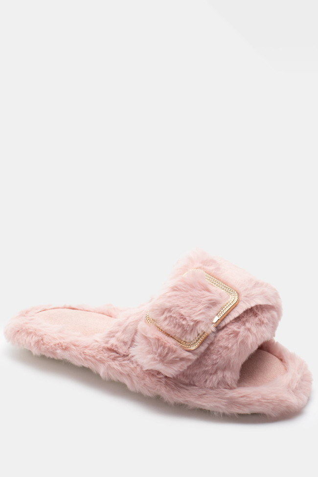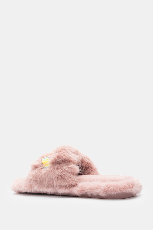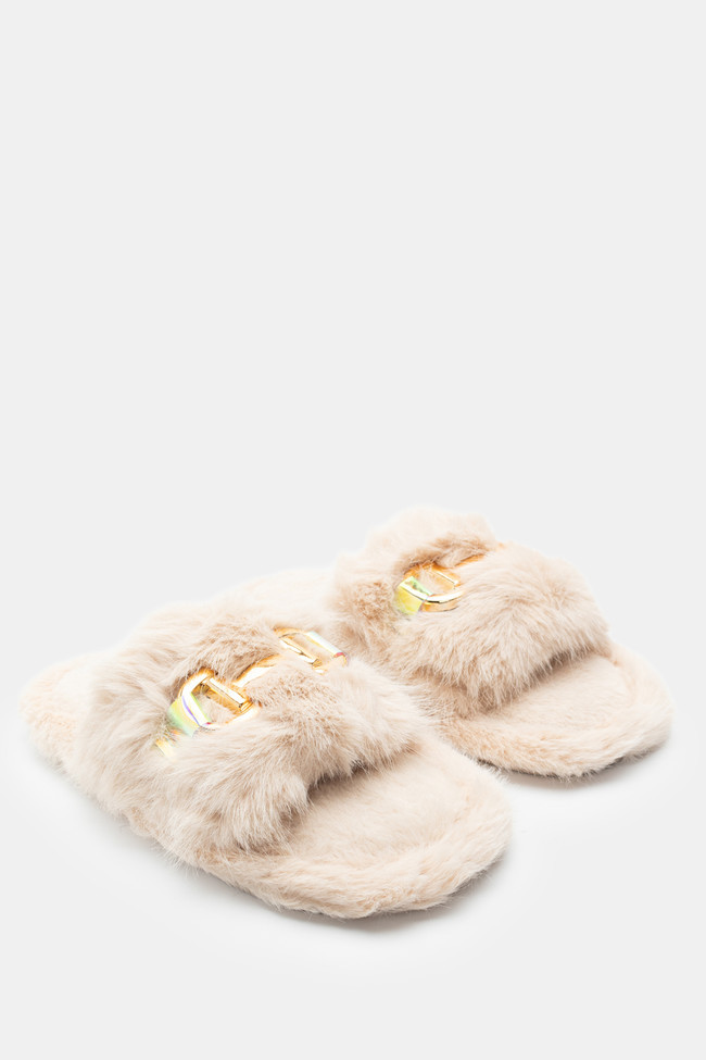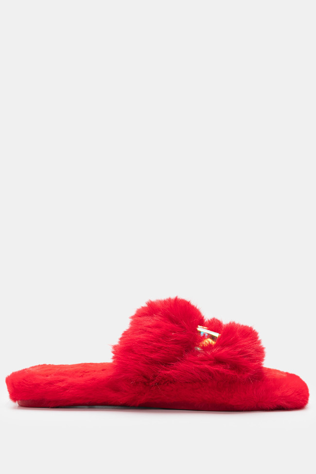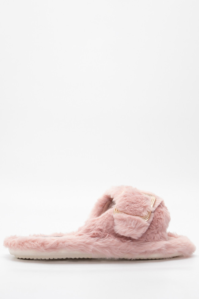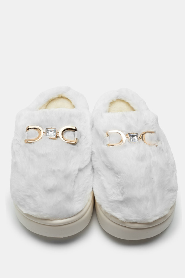 Παντόφλες Γούνινες με Διακοσμητική Αγκράφα