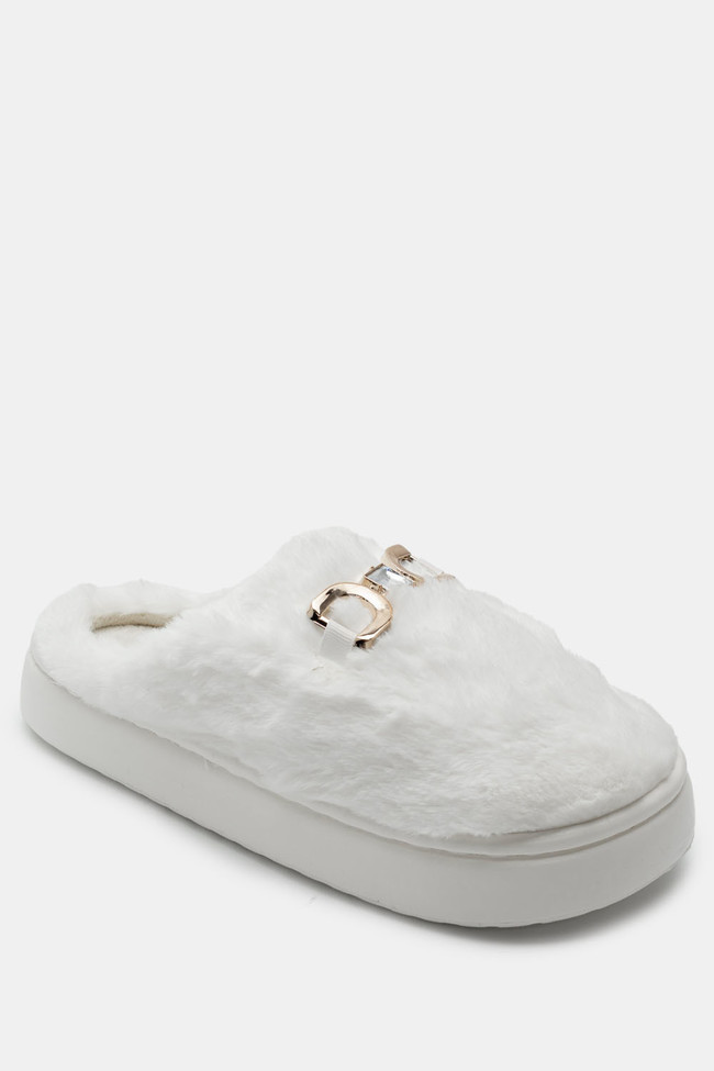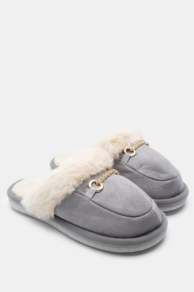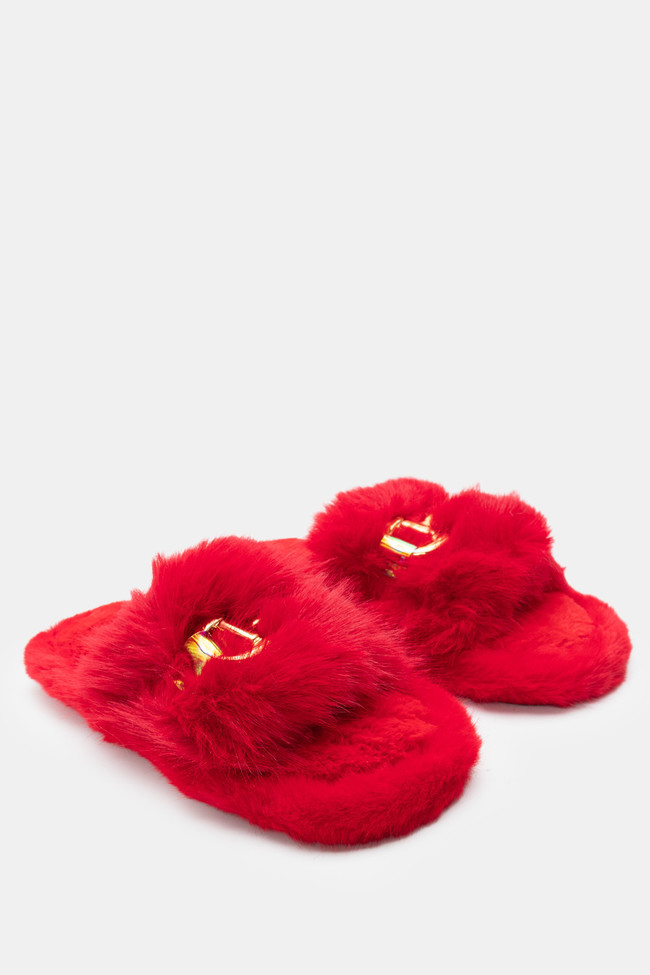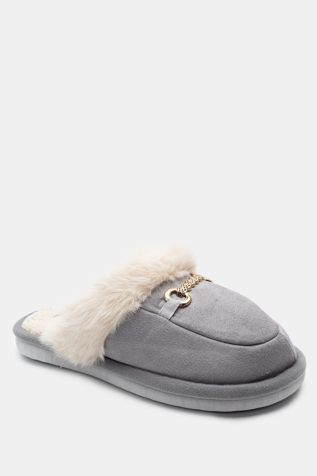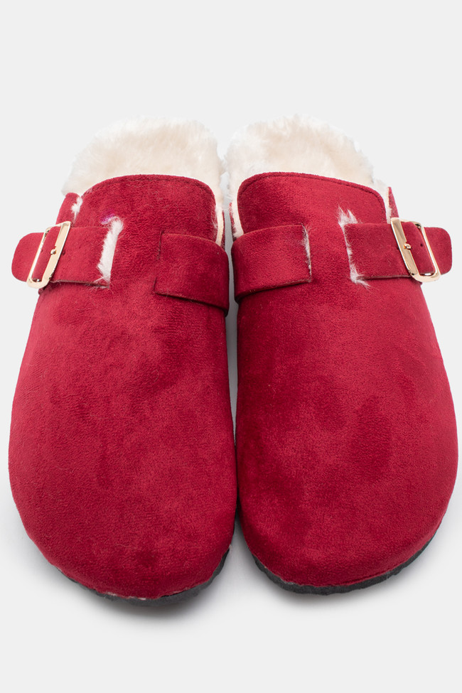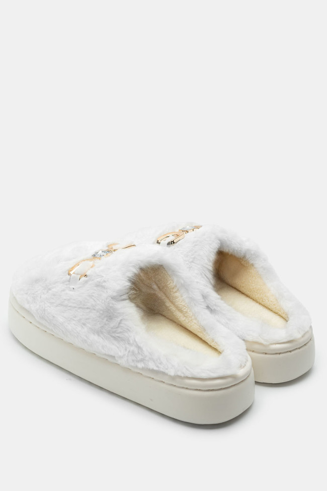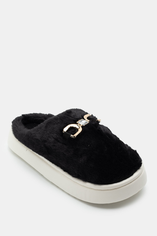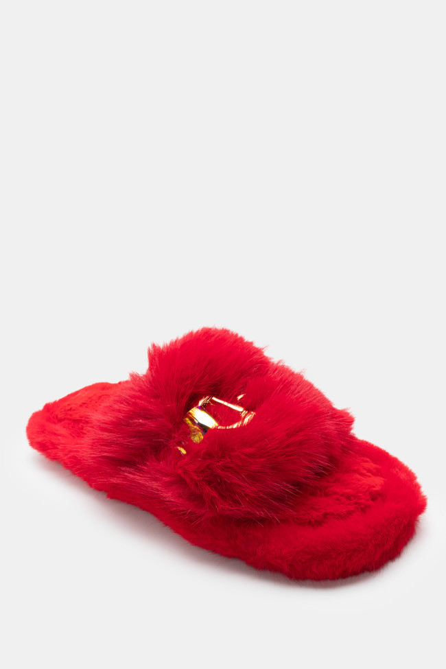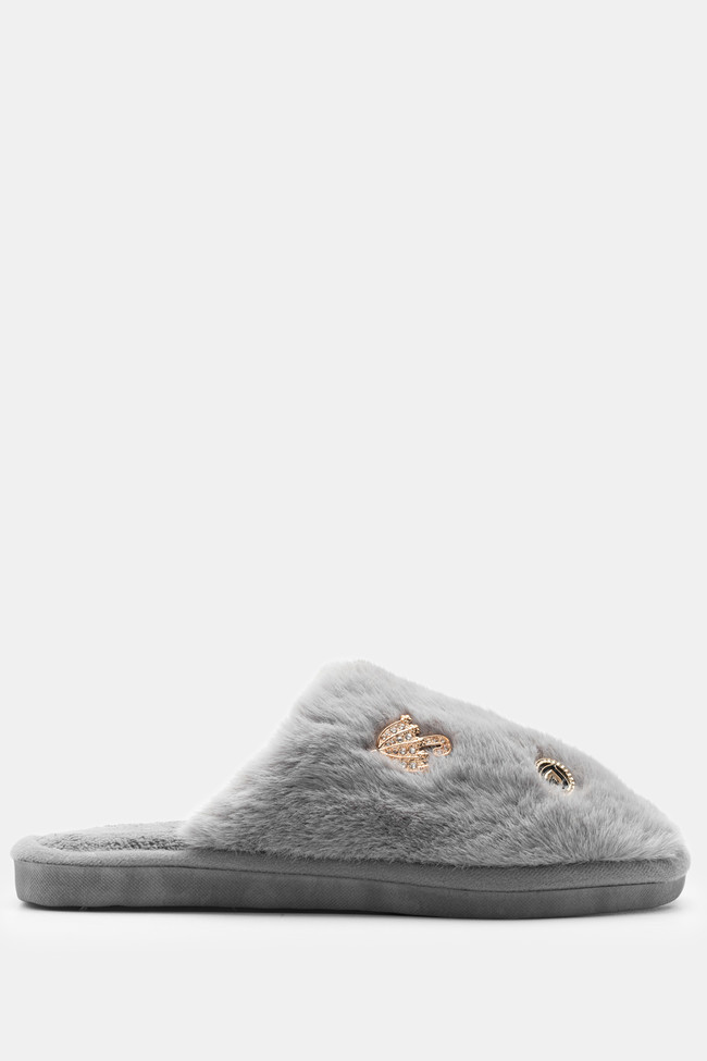 Παντόφλες Γούνινες με Διακοσμητική Αγκράφα