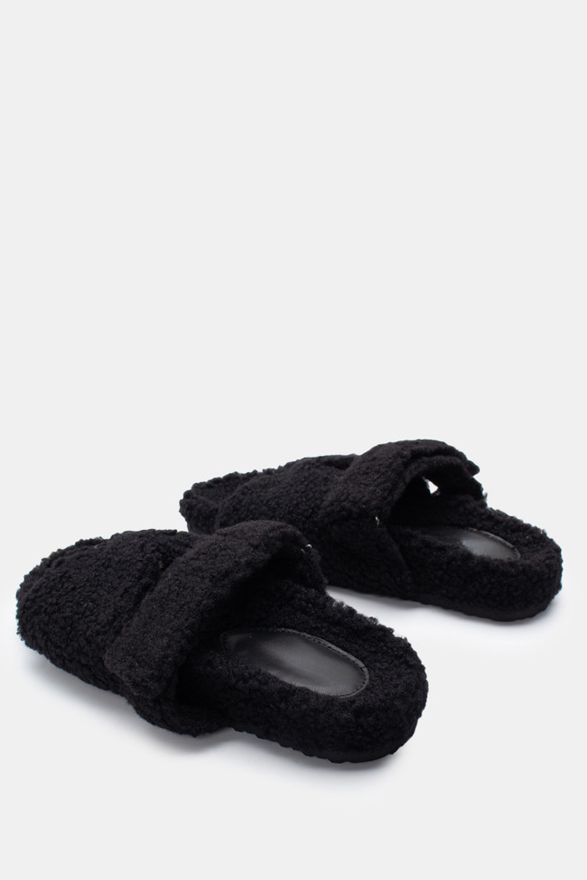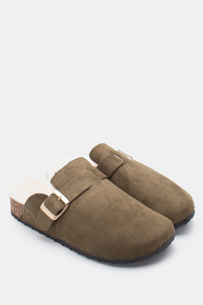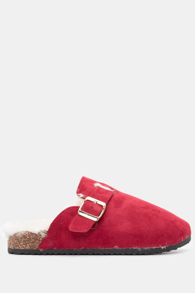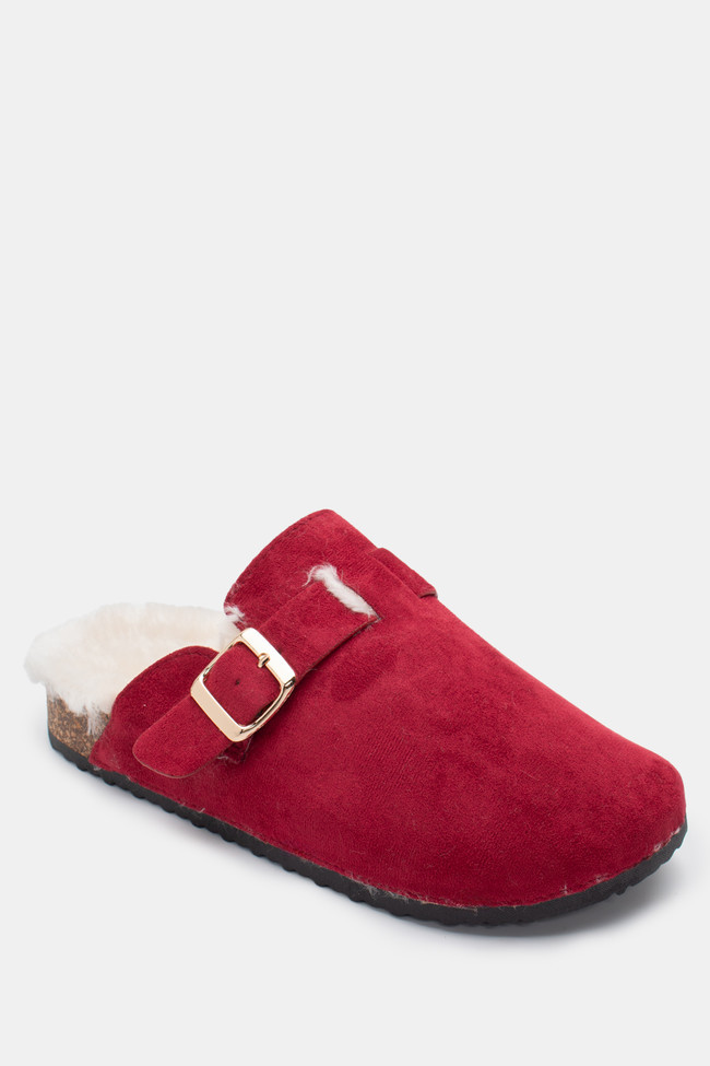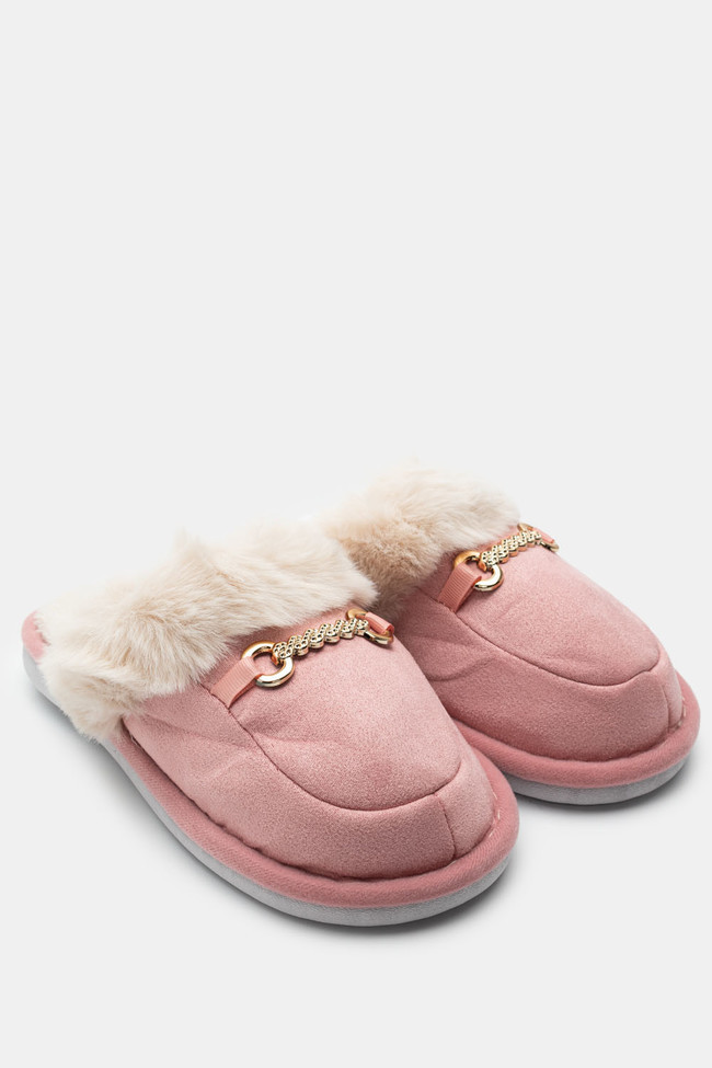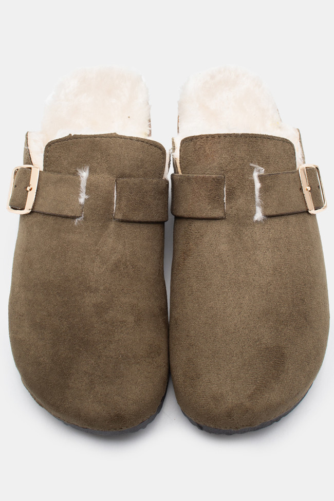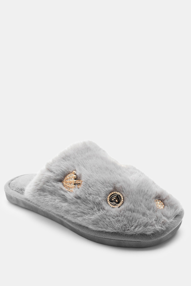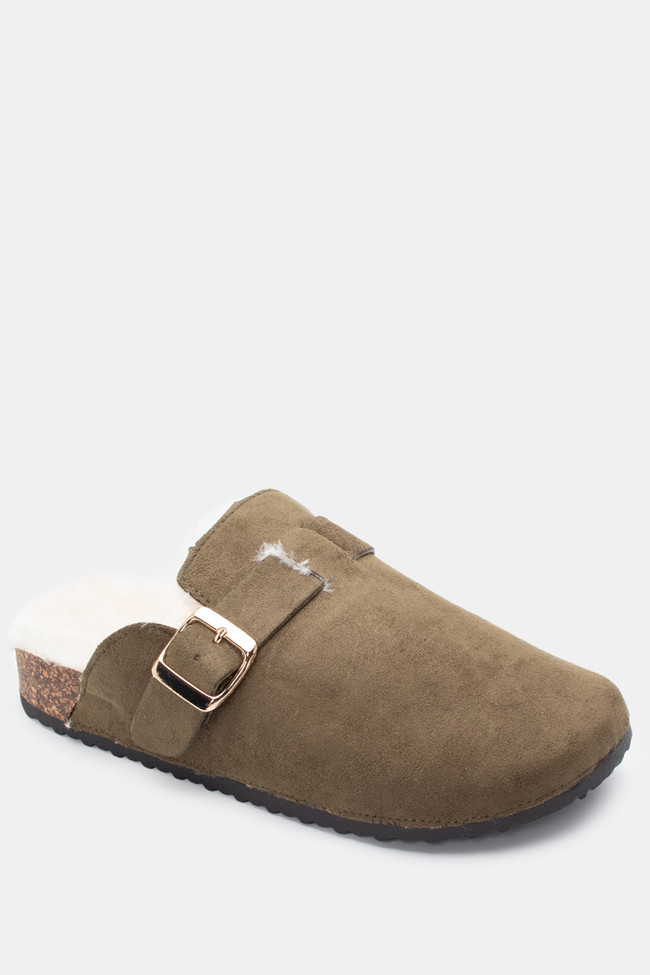 Παντόφλες Γούνινες με Διακοσμητική Αγκράφα