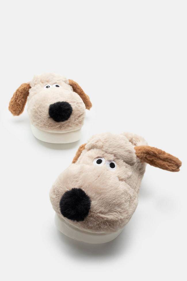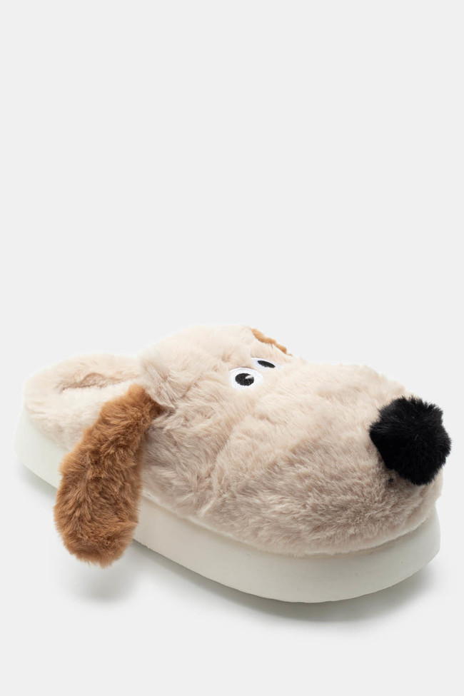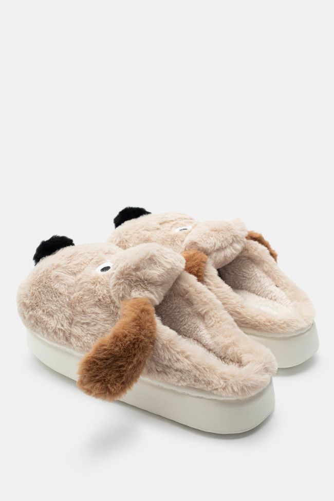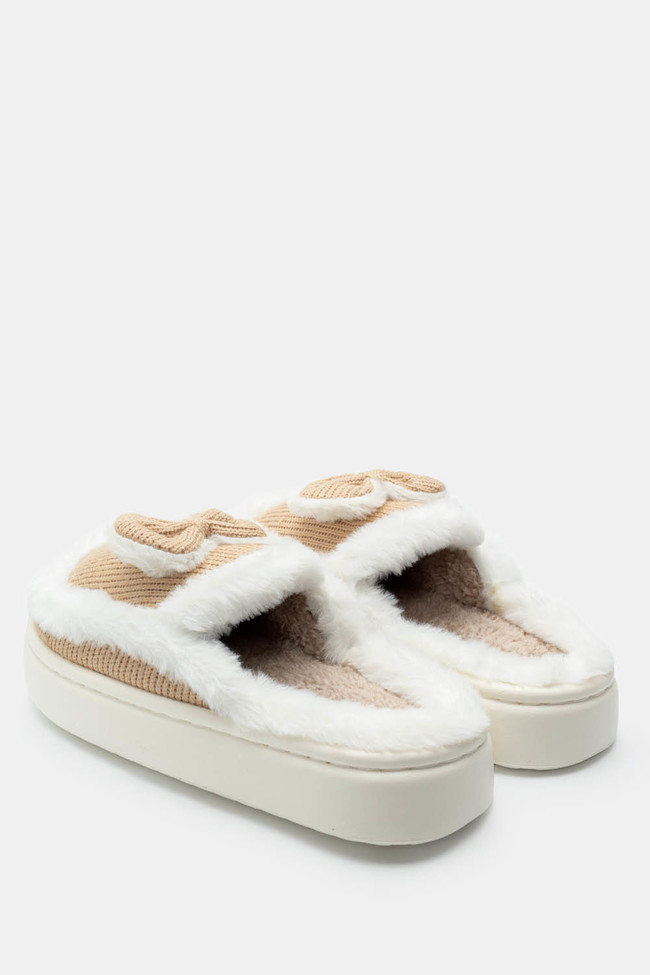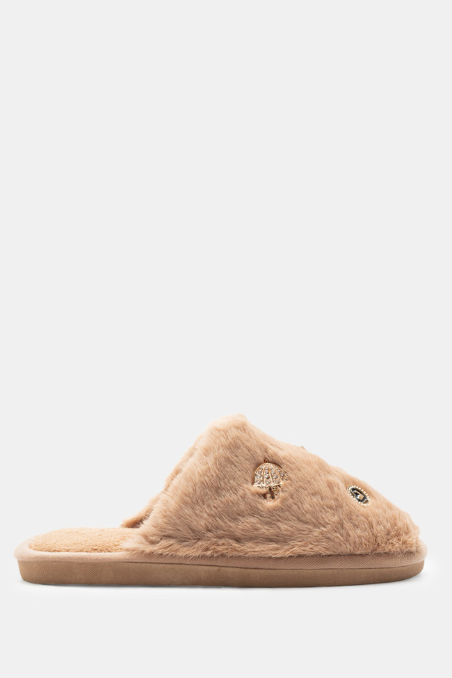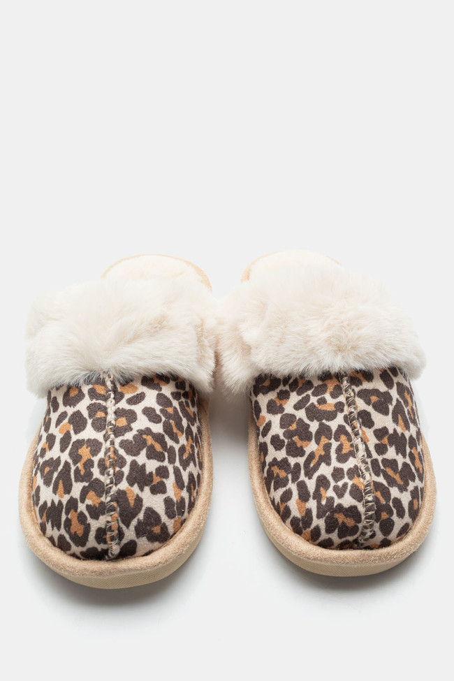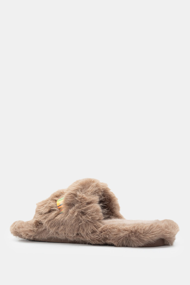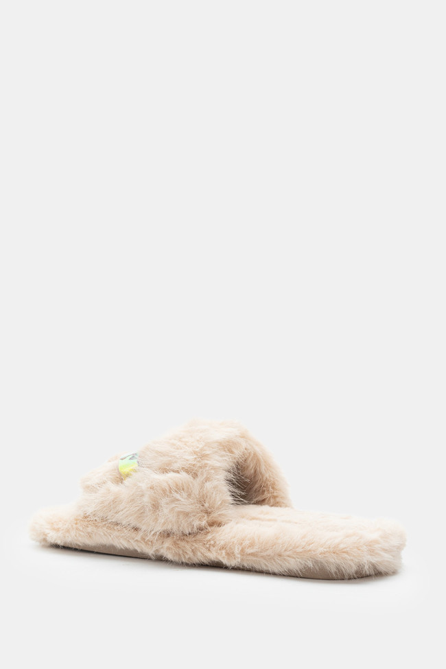Παντόφλες Γούνινες με Λεπτομέρεια Print