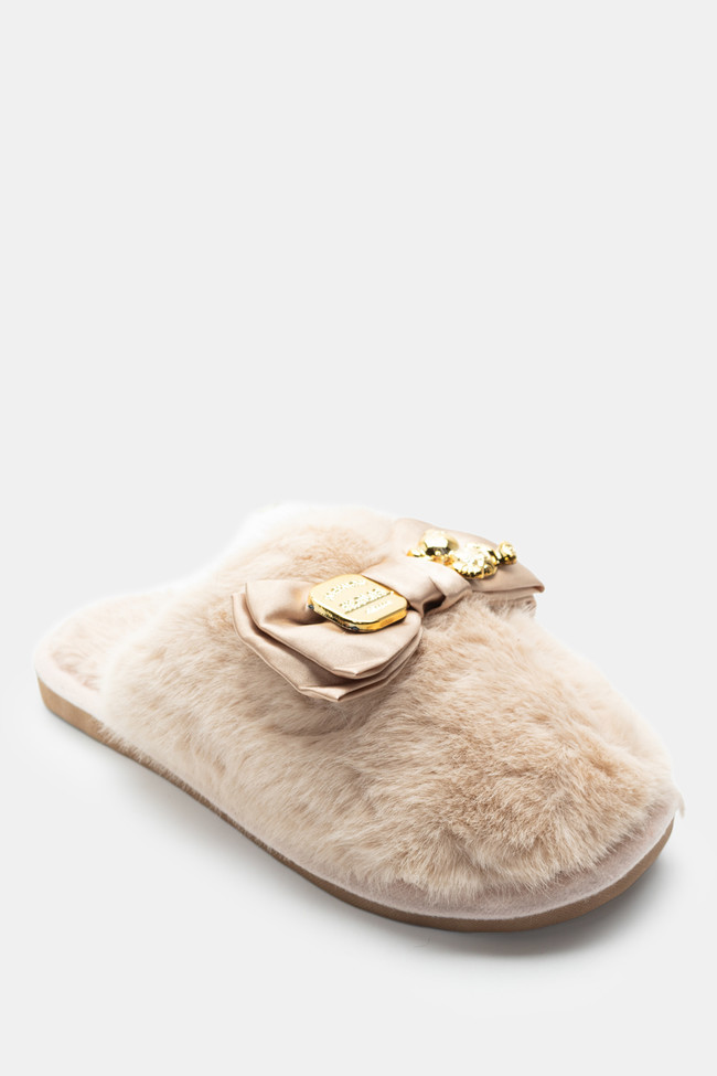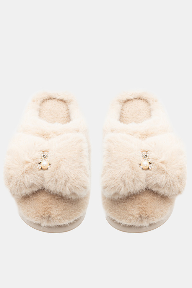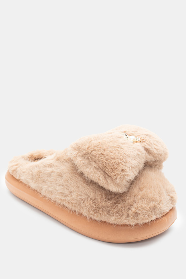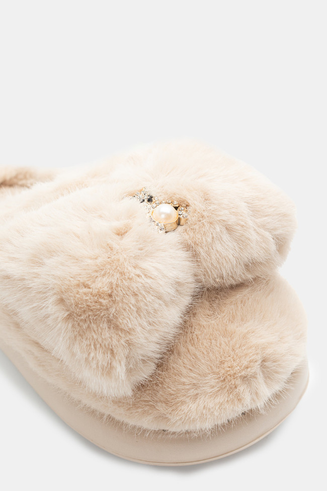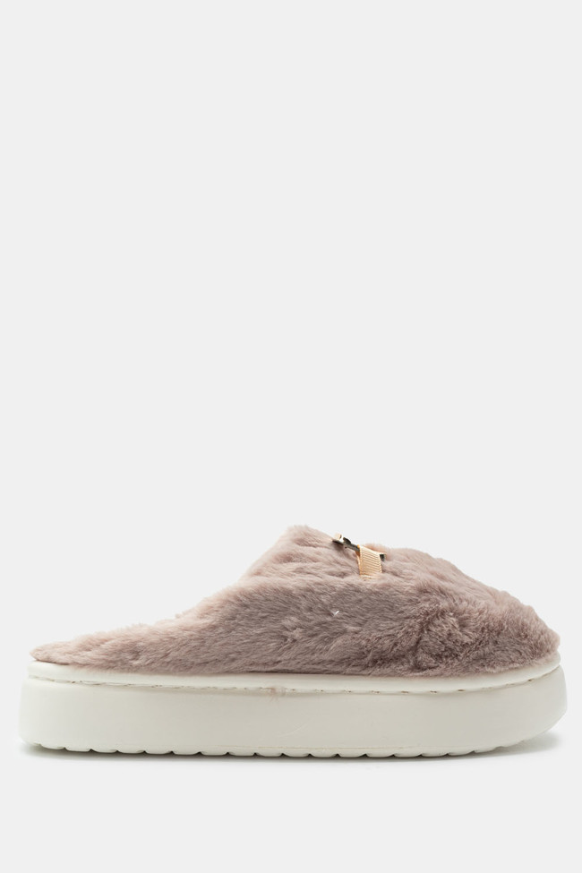 Παντόφλες Γούνινες με Διακοσμητική Τόκα