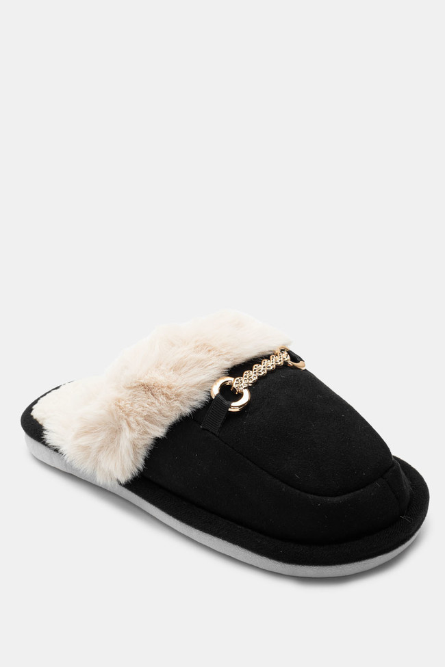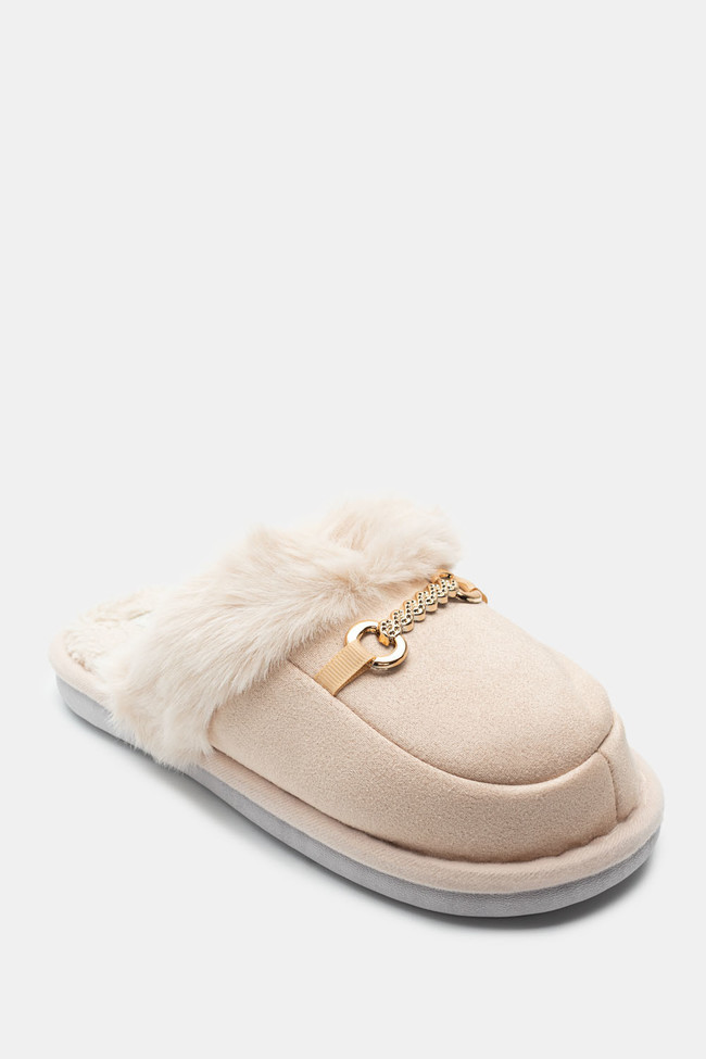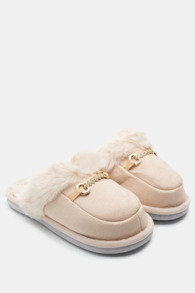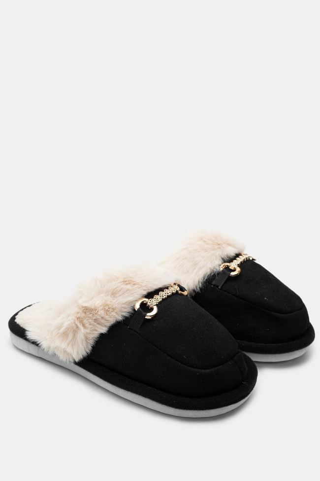 Παντόφλες Γούνινες με Διακοσμητική Αλυσίδα απο Strass