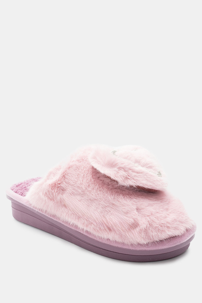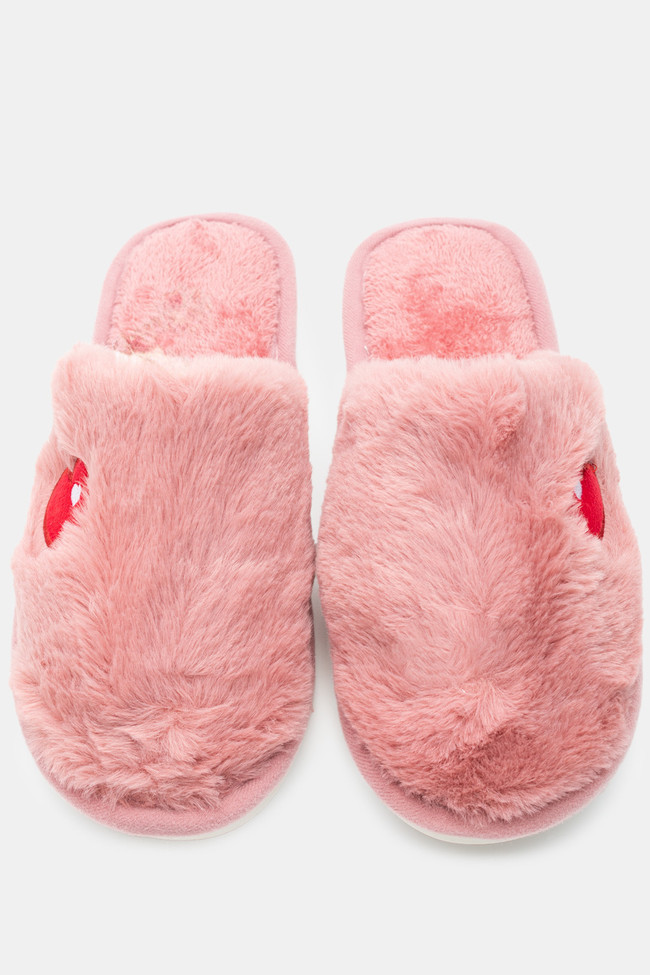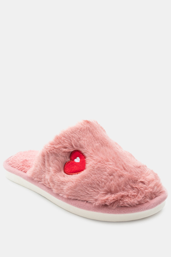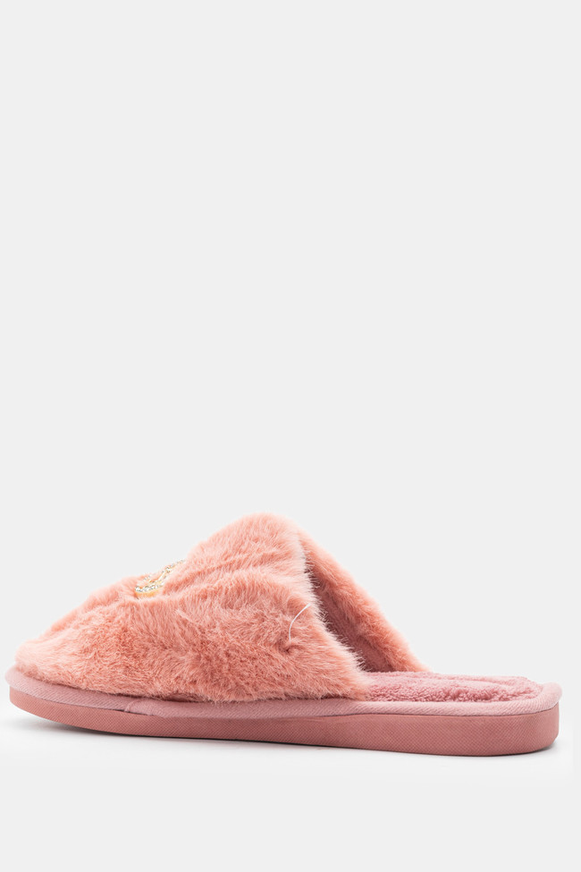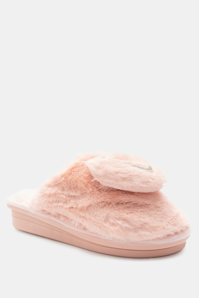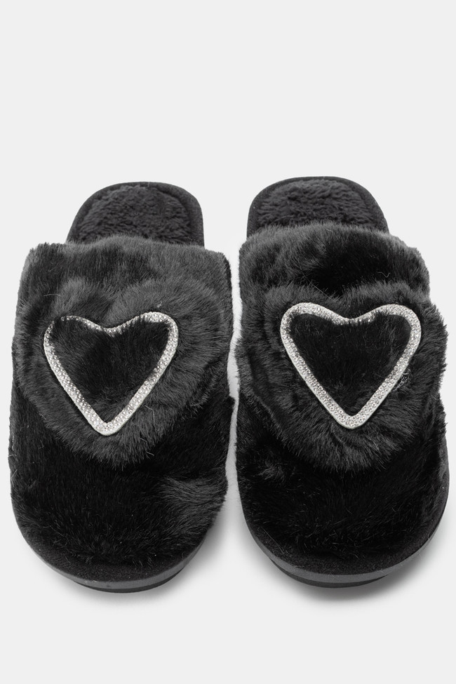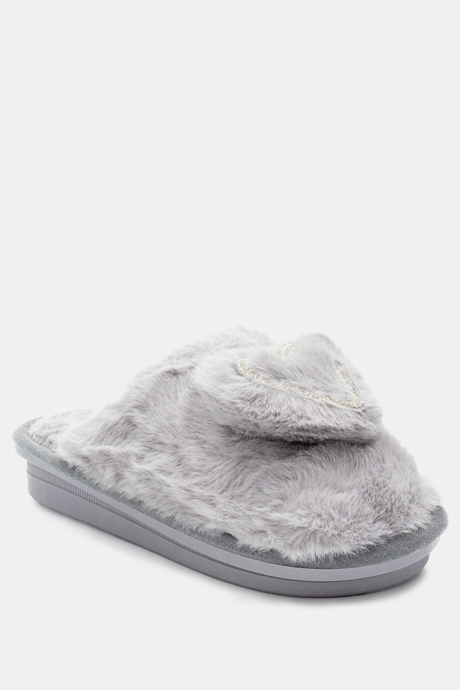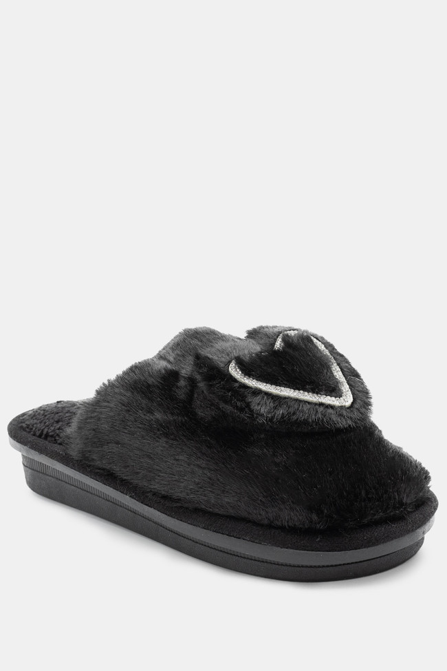 Παντόφλες Γούνινες με Διακοσμητική Καρδιά Από Strass