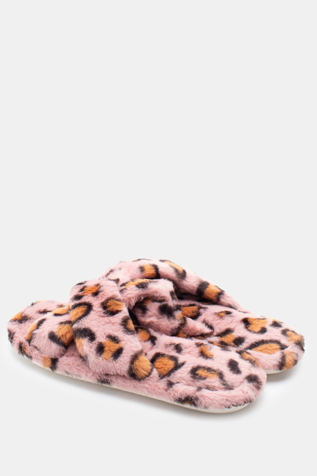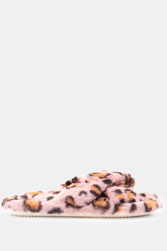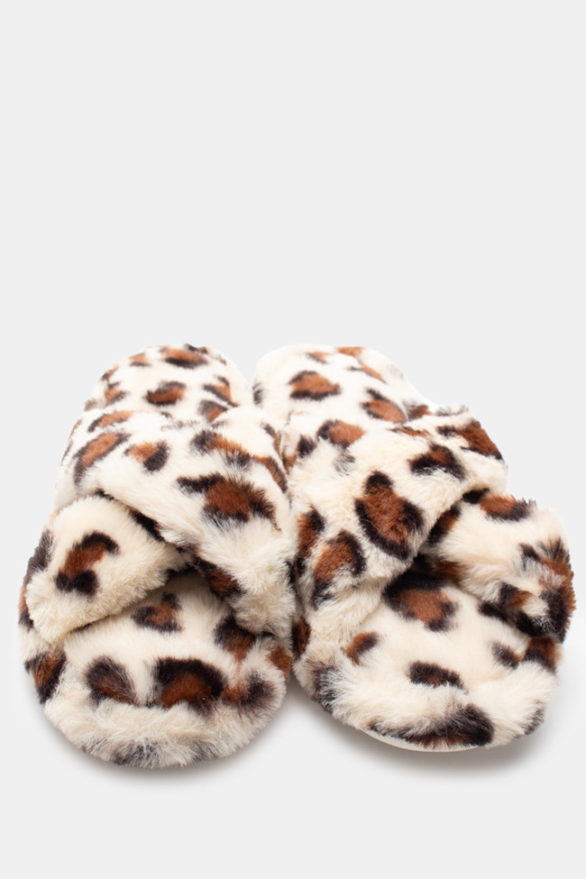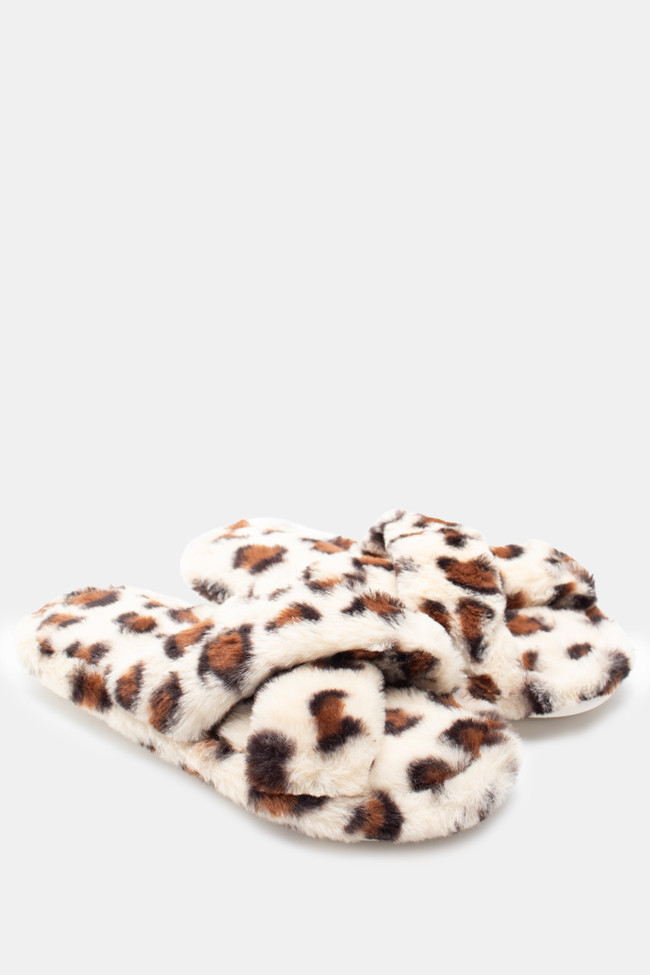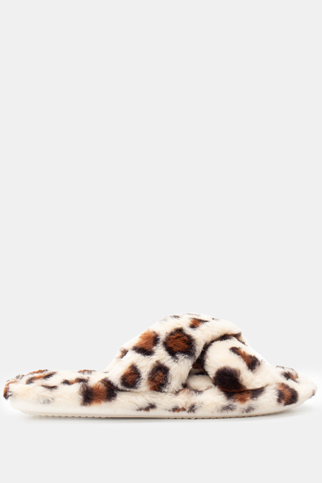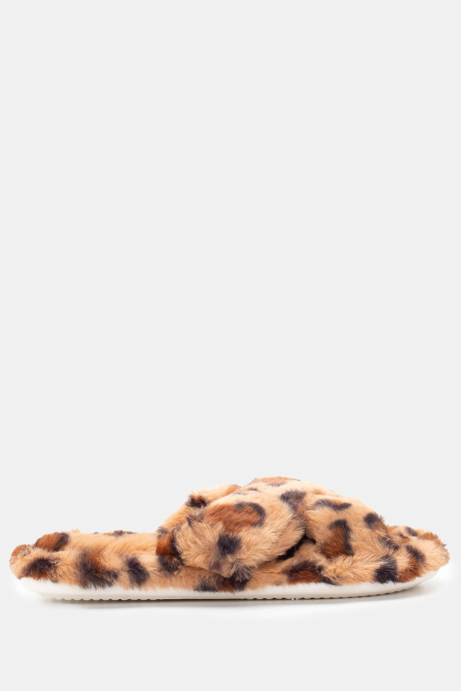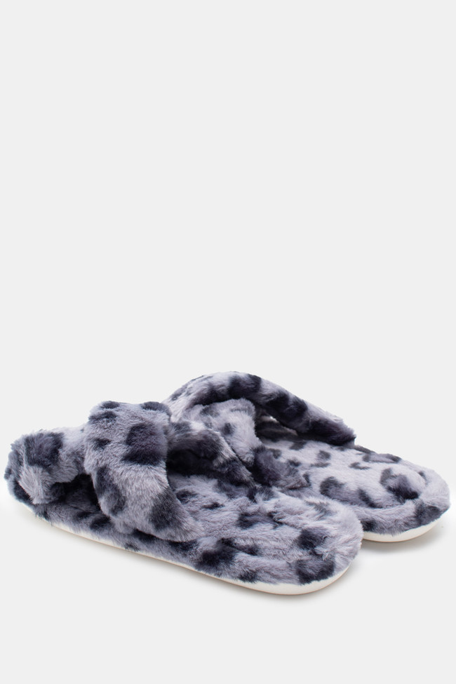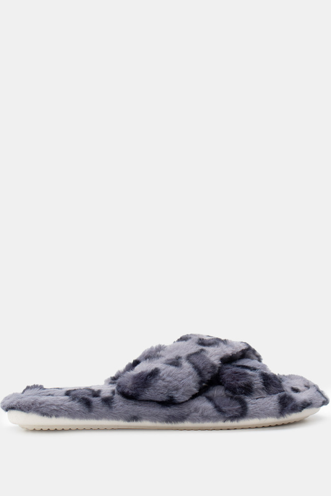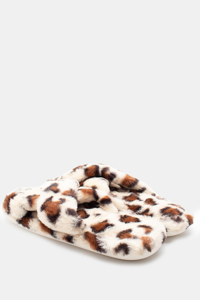 Παντόφλες Γούνινες με Λεπτομέρεια Print & Χιαστί Λουράκια