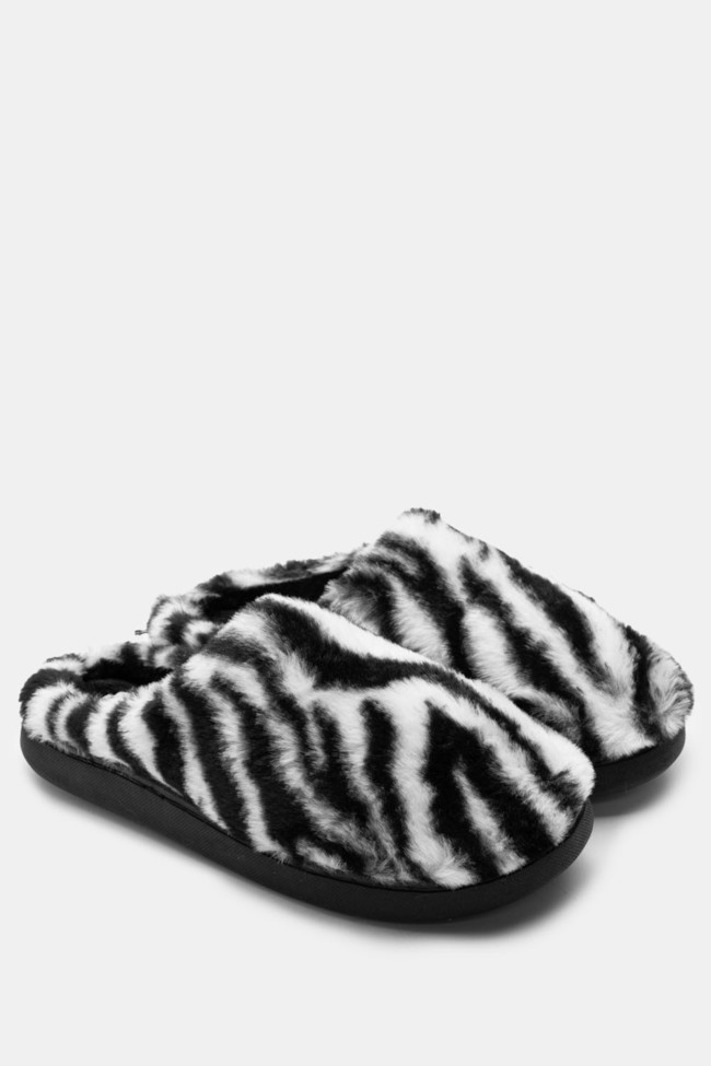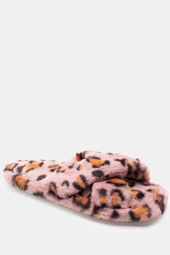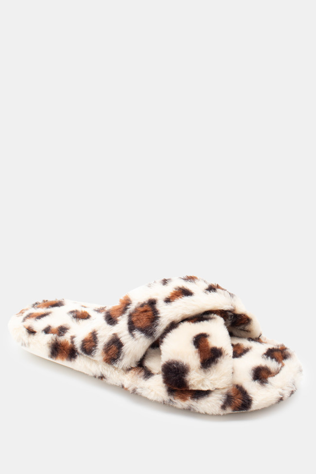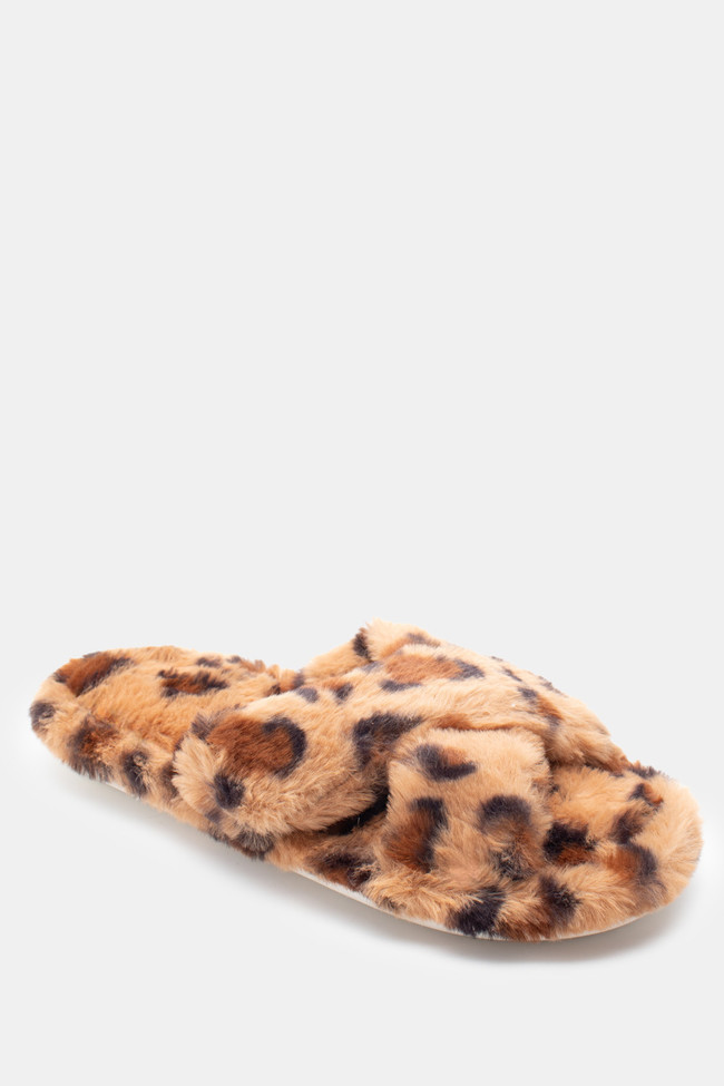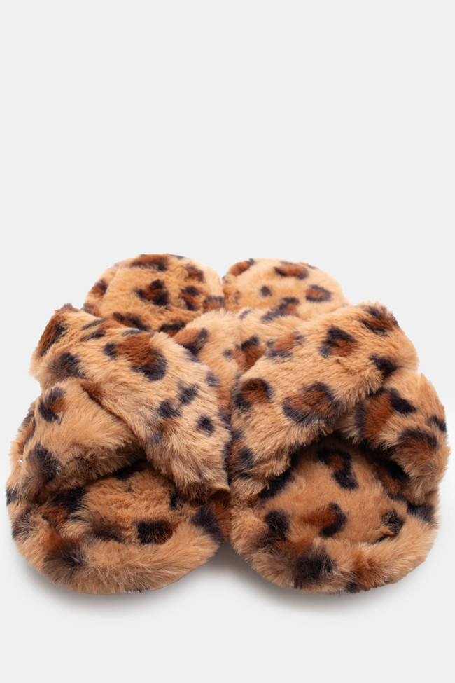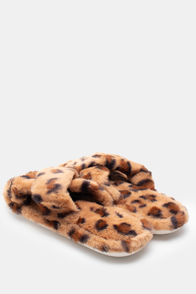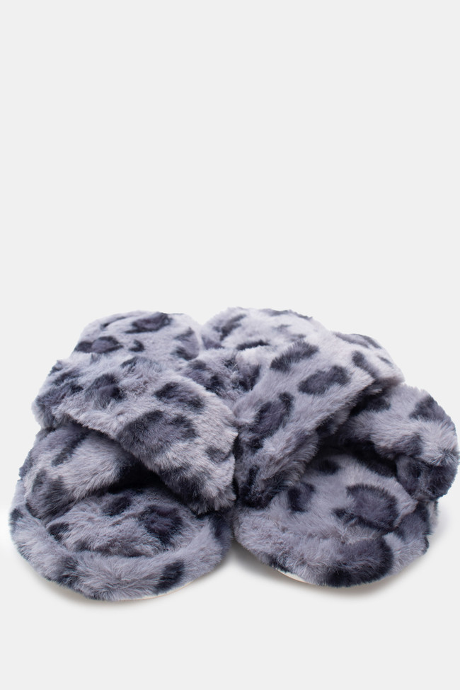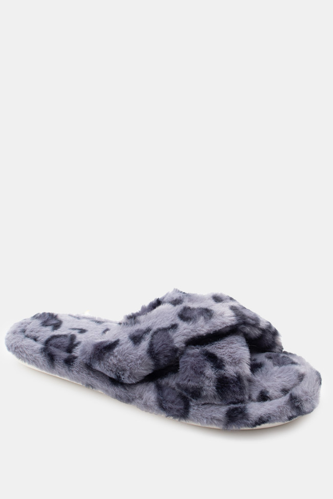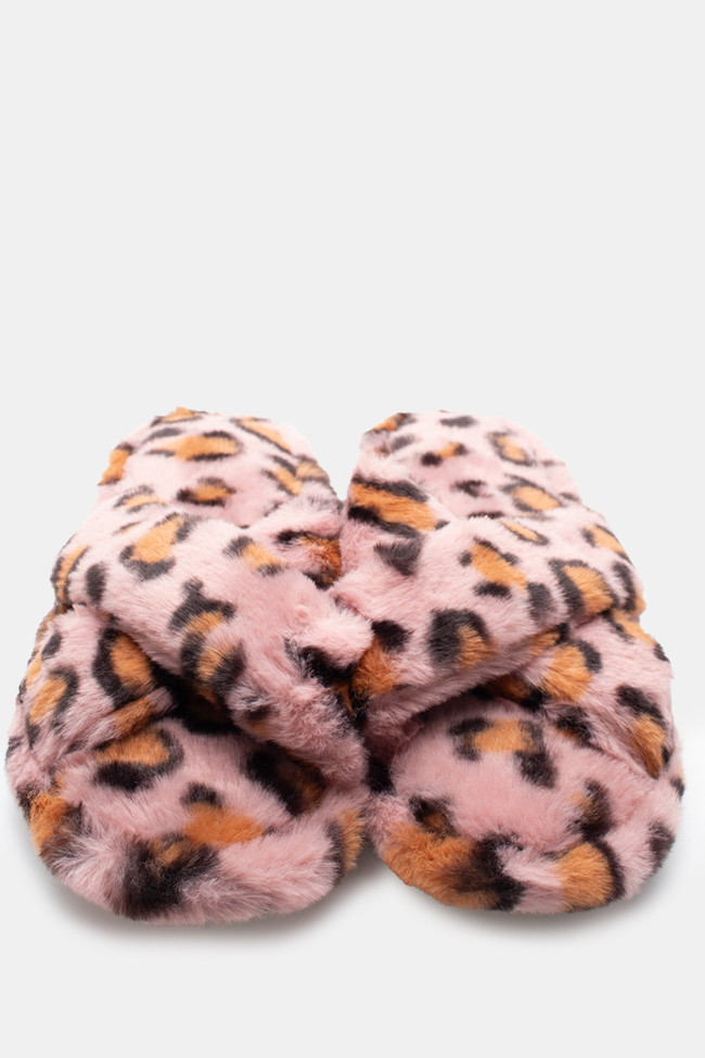 Παντόφλες Γούνινες με Λεπτομέρεια Print & Χιαστί Λουράκια