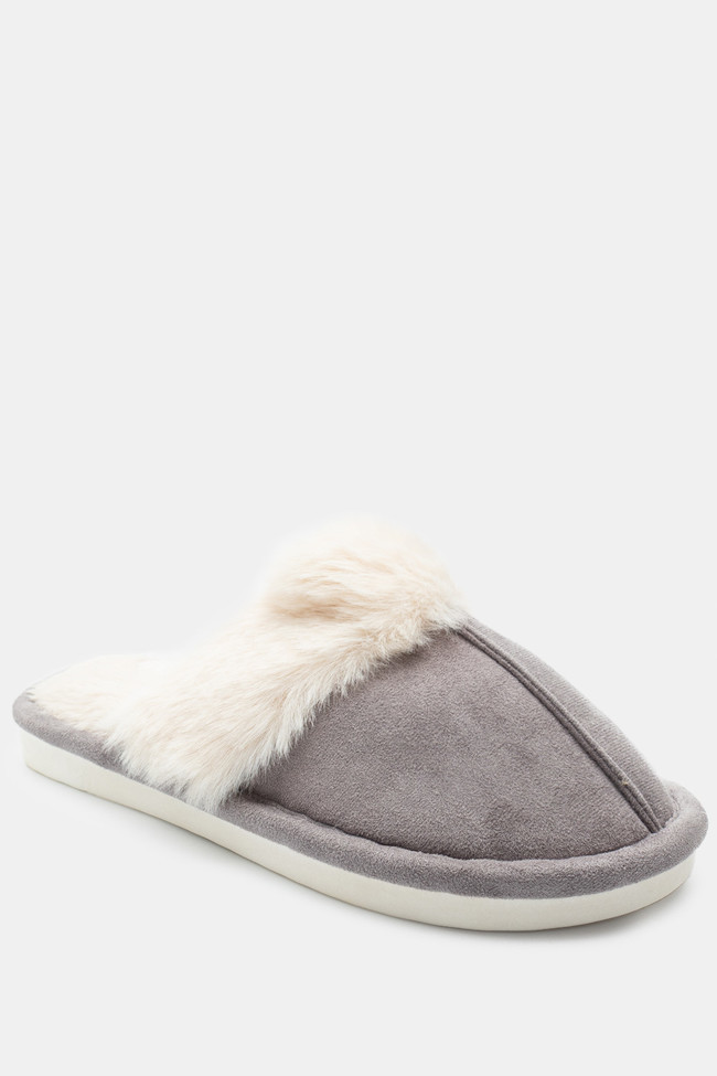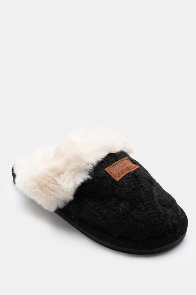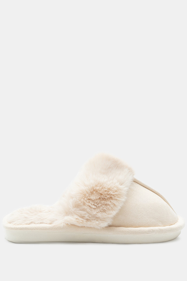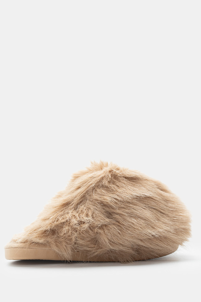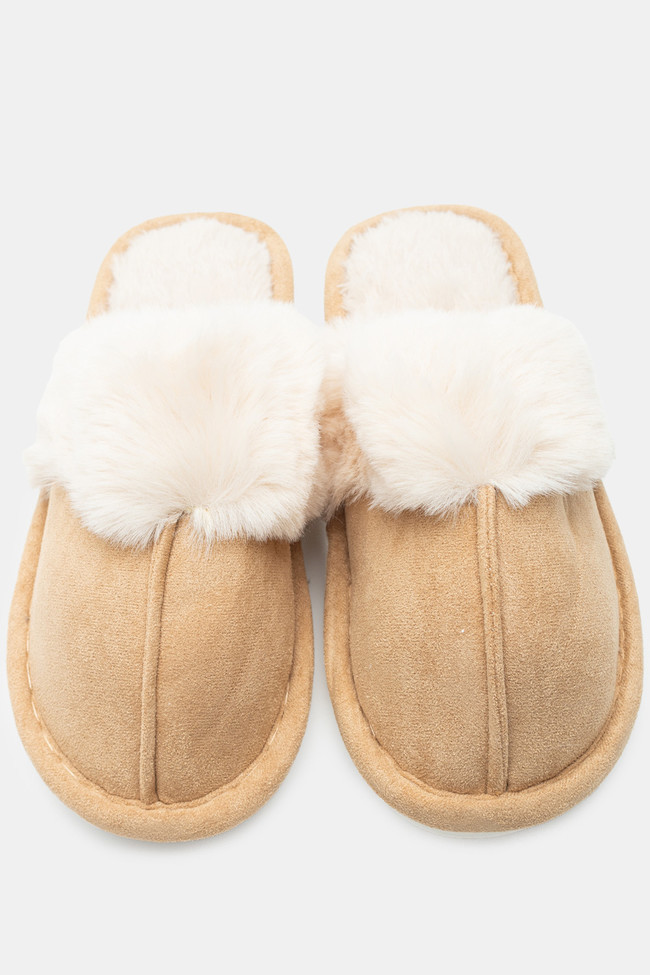 Παντόφλες Γούνινες με Ραφή Μποροστά