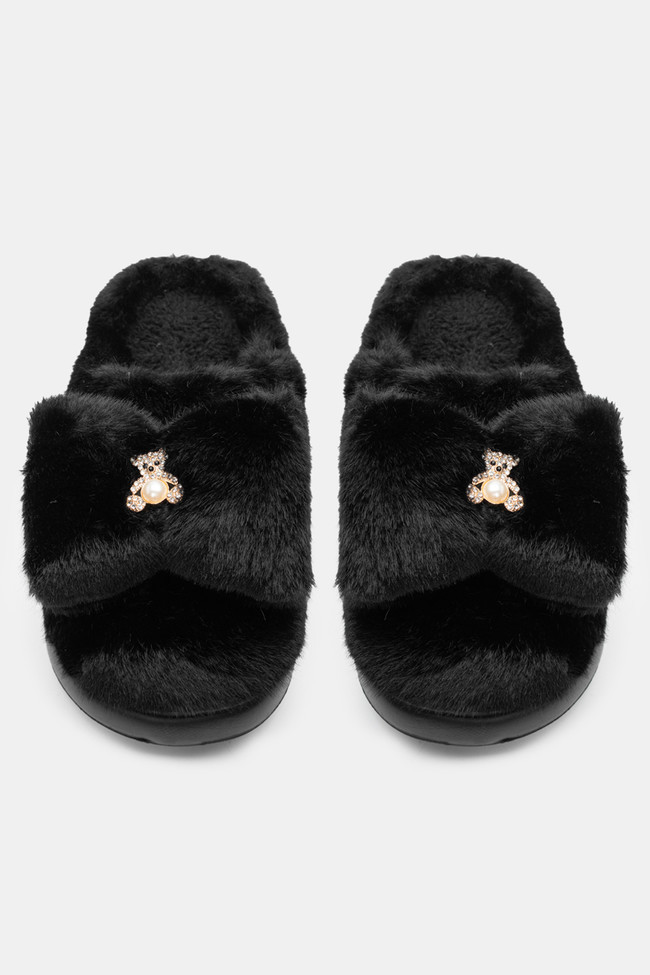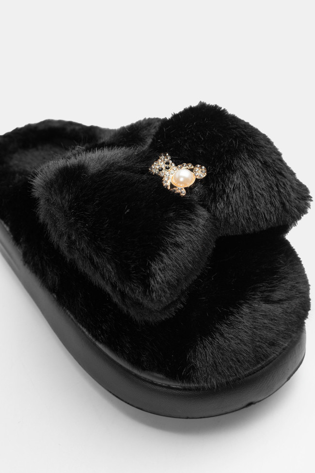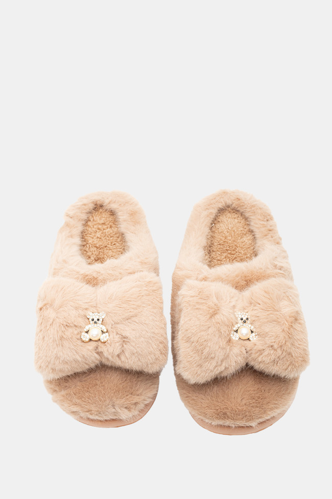 Παντόφλες με Γούνα & Διακοσμητικό Αρκουδάκι